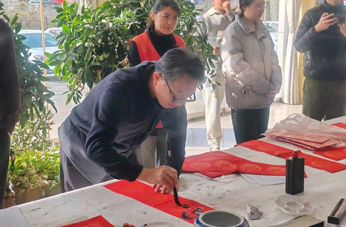 新春将至,年味渐浓。为传承中华优秀传统文化,营造祥和喜庆的节日氛围,进一步深化社区廉政文化建设,2月12日上午,山东省泰山中学书法志愿者走进财源街道三联社区,联合三联社区新时代文明实践站、社区社会工作办开展“逛山东大集,写吉祥春联,过祥和春节”主题活动,将满载祝福的春联与福字送到居民手中。