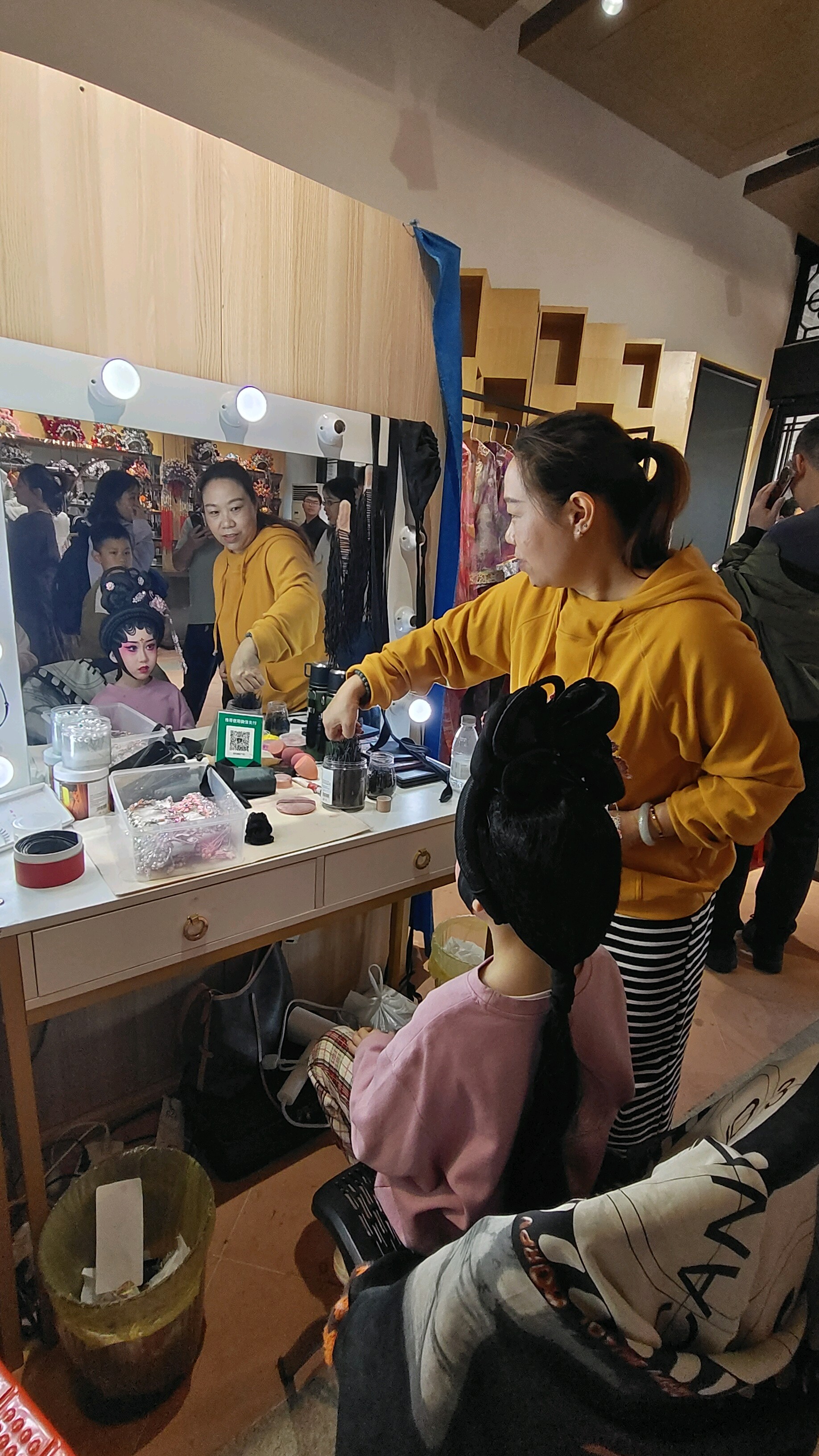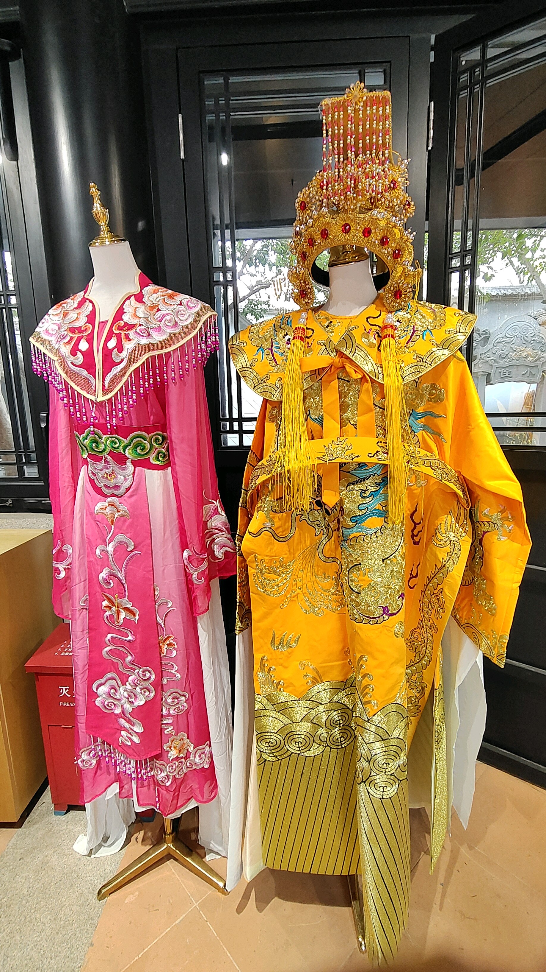 除了戏台前的实景演出,博物馆内的展厅同样人气爆棚。在粤剧道具服装展区,绣工繁复的蟒袍、凤冠霞帔、精致的髯口、惟妙惟肖的脸谱模具一一陈列,灯光下尽显匠心。游客们驻足细看,有的伸手触摸复刻道具的纹理,有的在讲解员的介绍下,了解粤剧行当分类、妆容技法与道具制作的门道。从厚重的木质戏箱到小巧的粤剧头饰,每一件展品都承载着粤剧百年的发展历程,诉说着岭南文化的深厚底蕴。