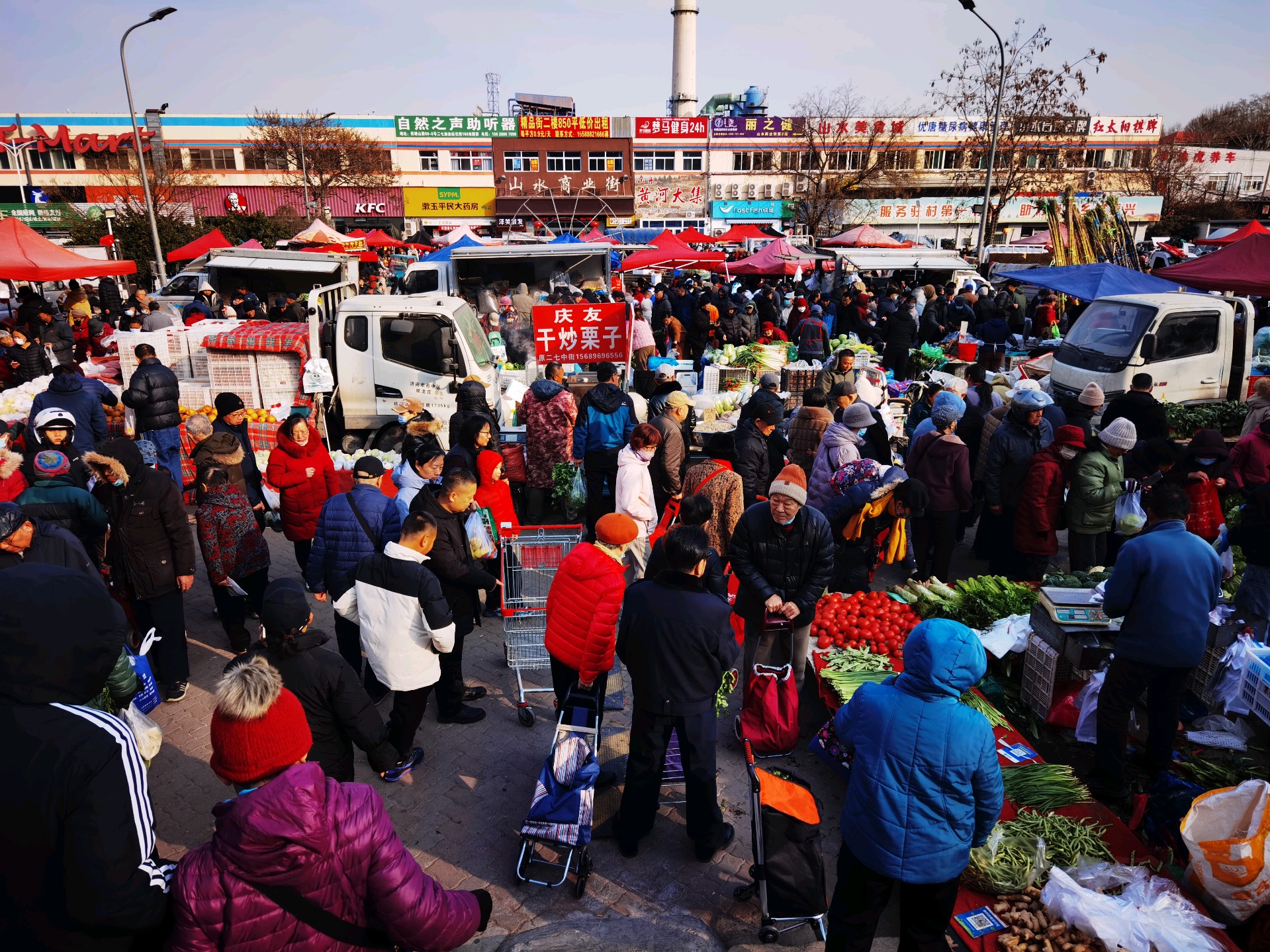 济南山水黄河大集,人来人往,热闹非凡,年味直接拉满春节放假第一天,恰逢济南山水黄河大集,集市上人来人往,熙熙攘攘,热闹非凡,年味直接拉满,摊位多年货全,鸡鸭鱼肉,新鲜蔬菜,过年饰品,应有尽有,热热闹闹的年集,人们争相购买自己喜爱的年货饰品!