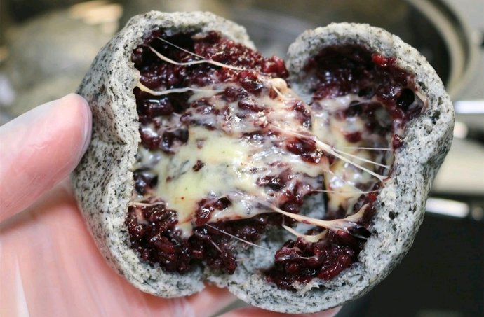 面粉、酵母、紫米、糯米、黑芝麻、奶酪芝士碎、白糖、黄油