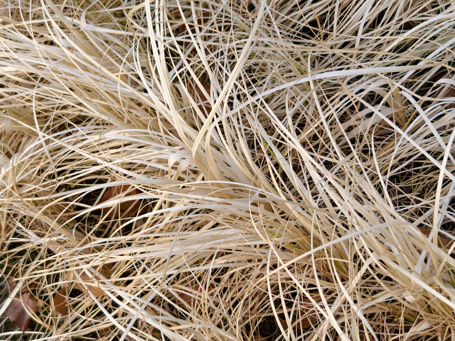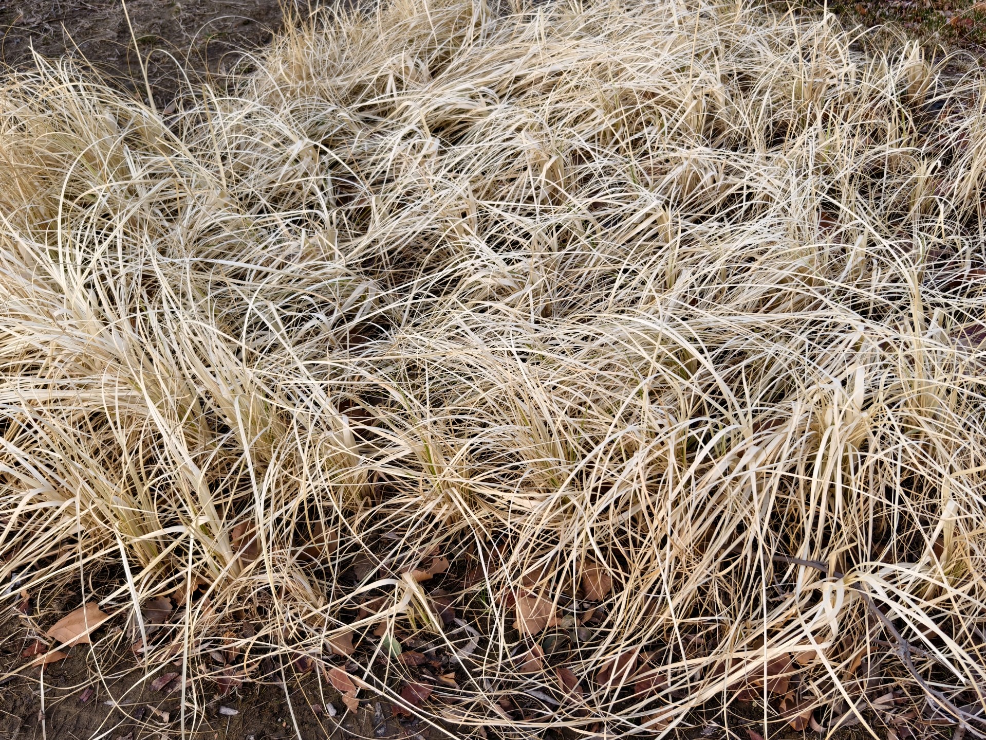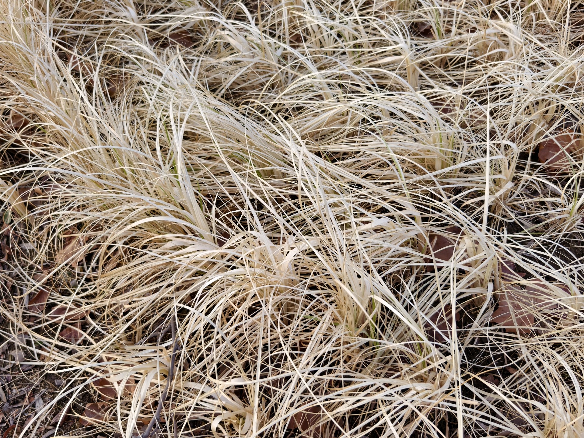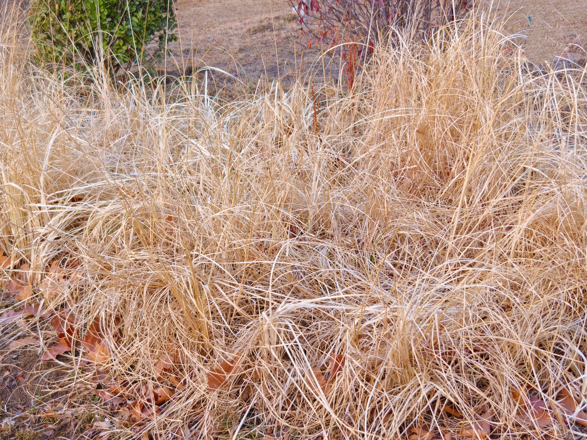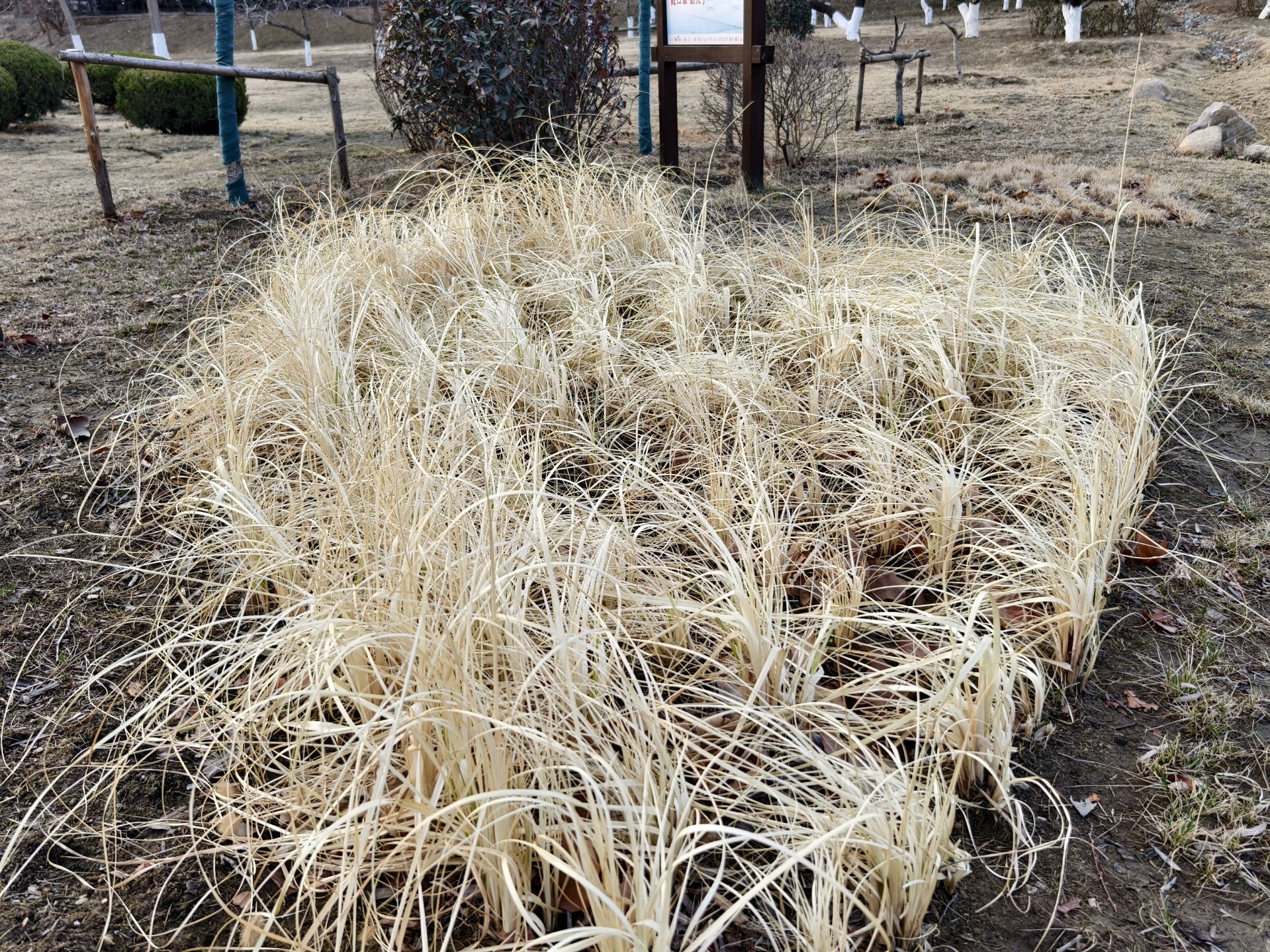 今天上午去公园,发现一簇簇的丝状枯叶,犹如白发一般。于是拍下来。经查它叫金叶苔草(也叫金丝苔草)。在冬天里也是一种独特景色啊。