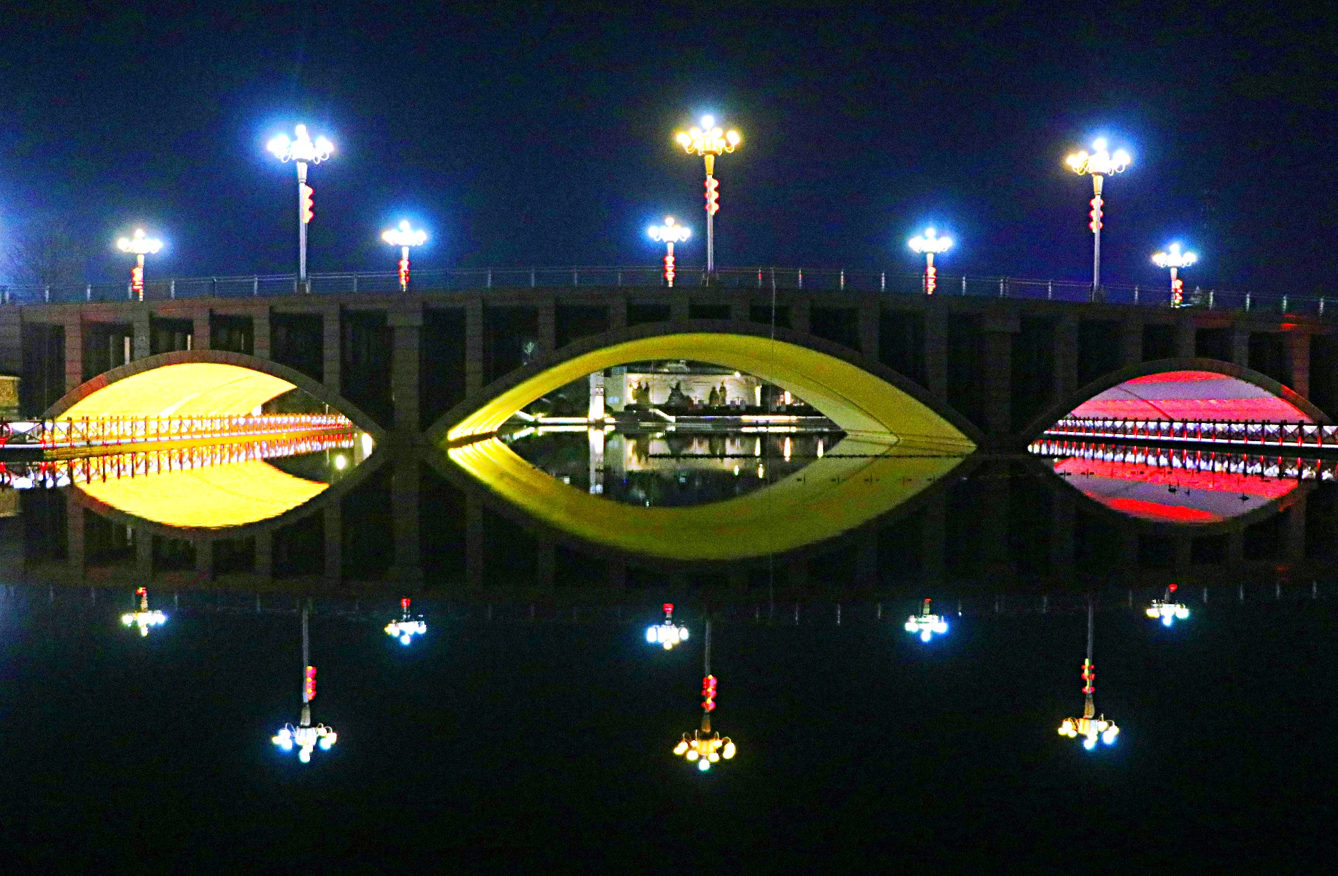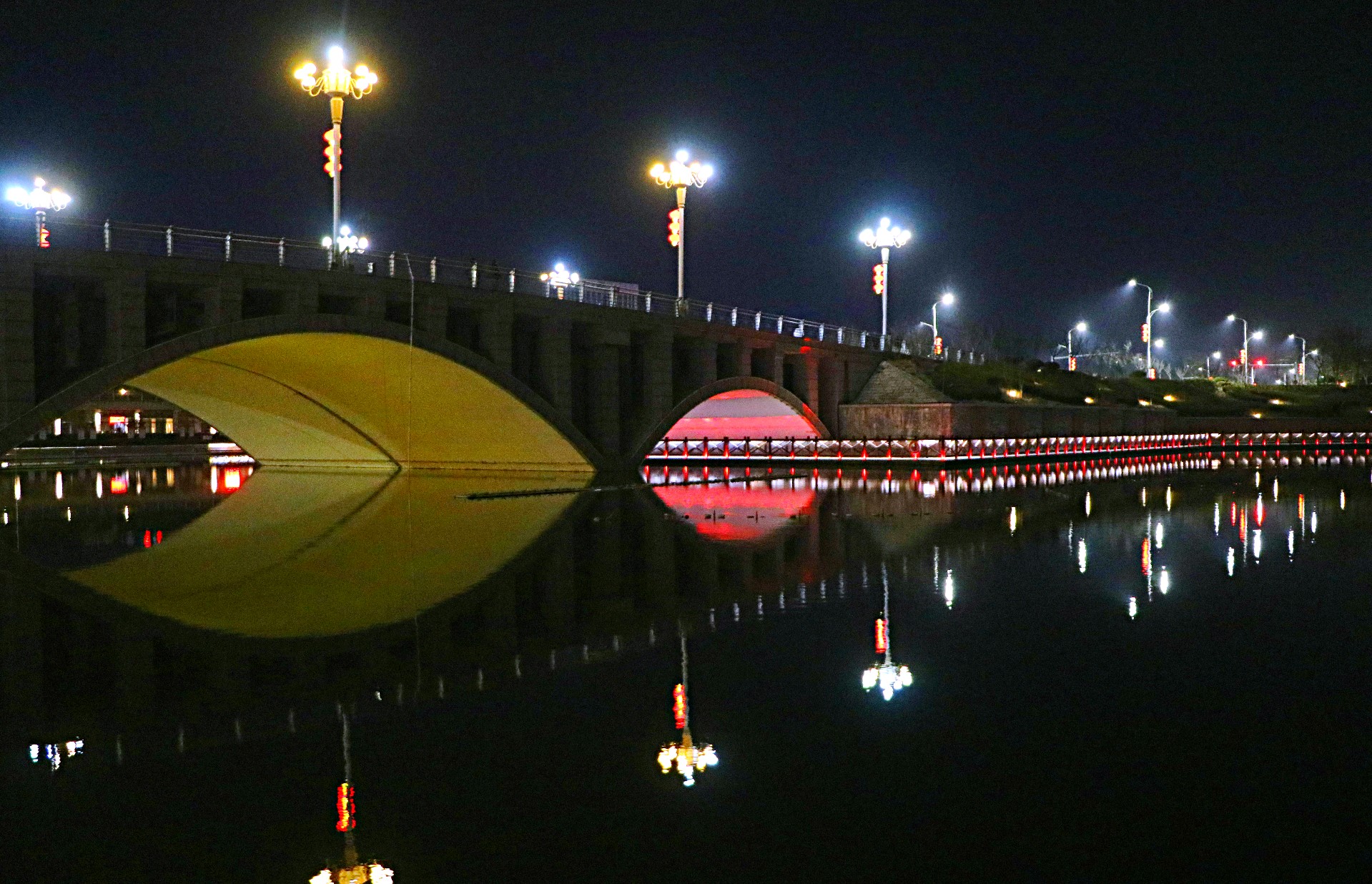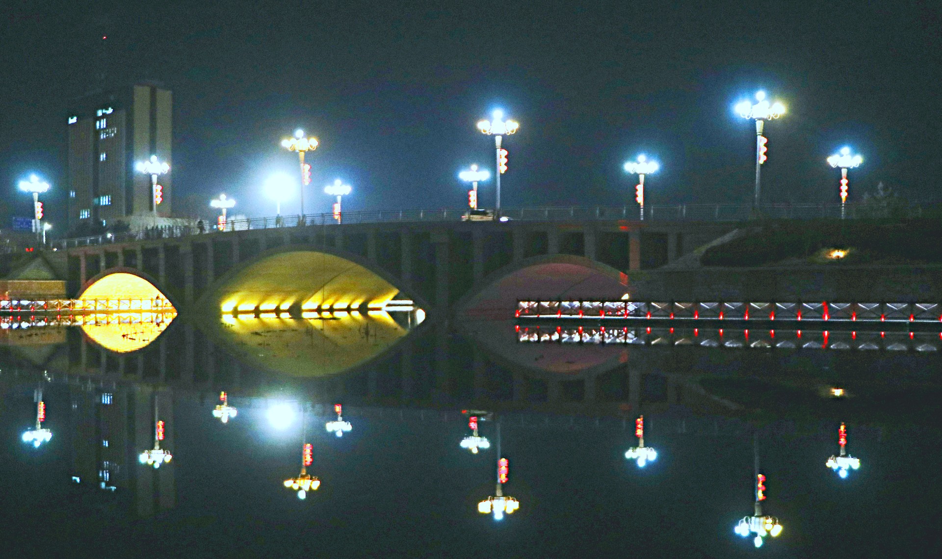 【五莲人工湖夜景美如画】五莲人工湖的夜晚,灯光璀璨,倒影如梦,宛如一幅幅美丽的画卷。