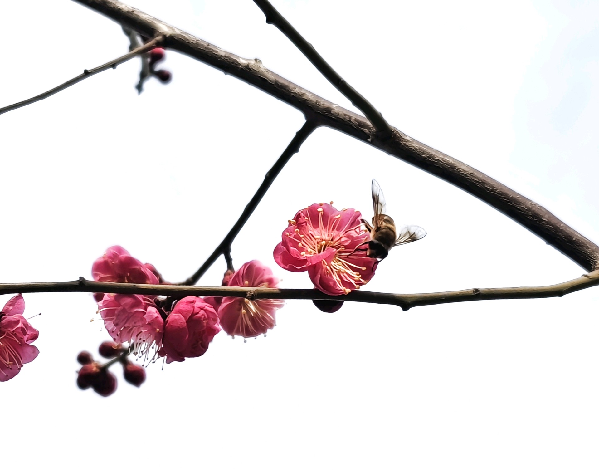东夷文化园红梅花香引蜂至