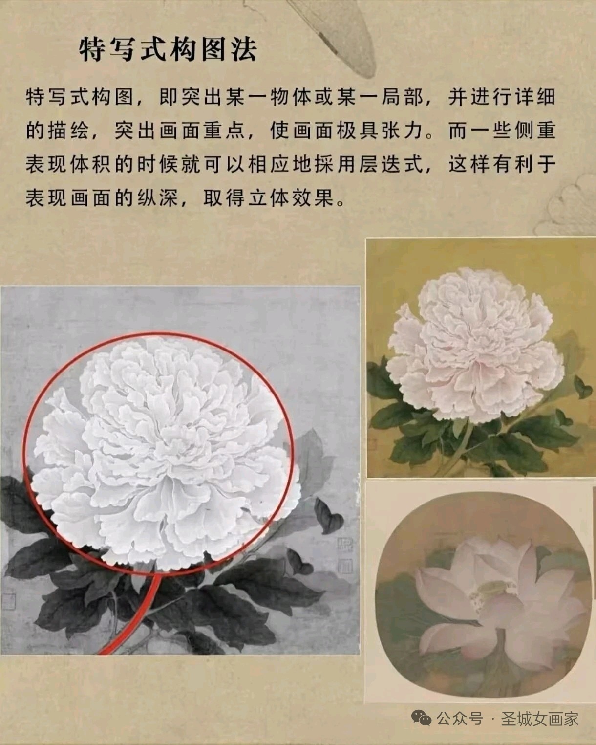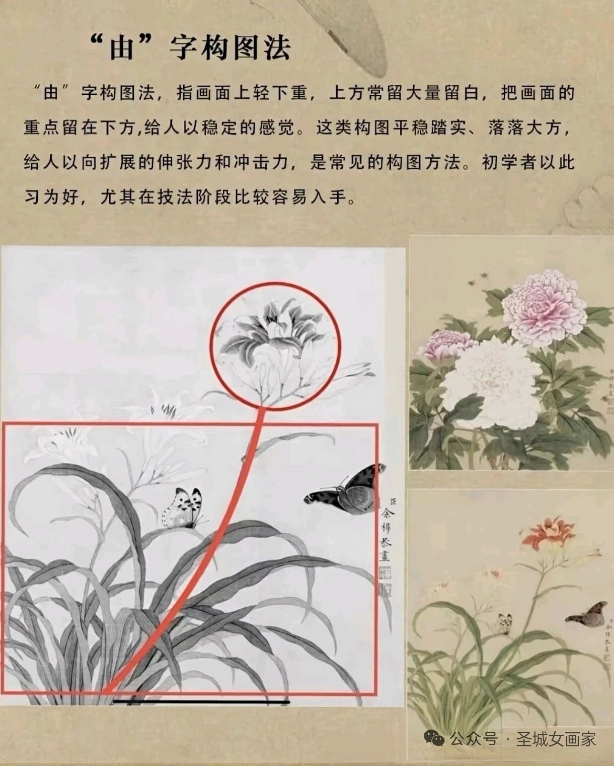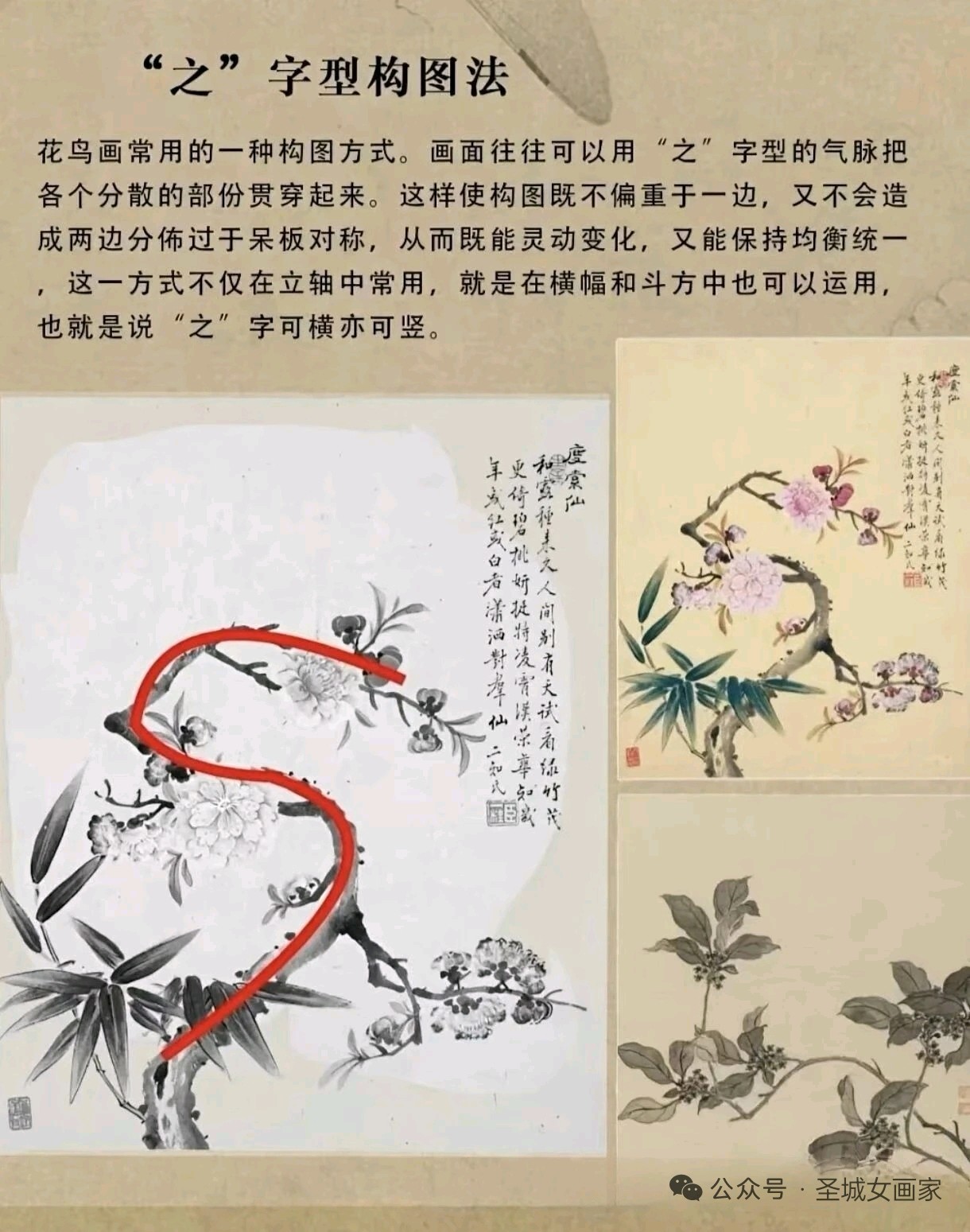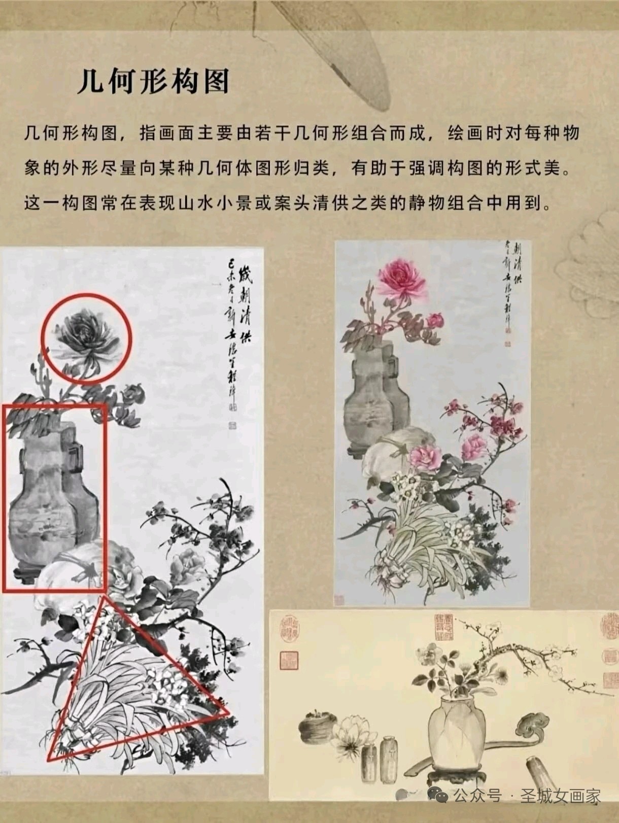 圣城曲阜画家郭美华近日推出国画构图法系列教学图集,深度解析传统技法精髓。该系列涵盖“由”字、折枝、几何形、对角线等经典构图法,通过红笔标注骨架与实例对比,直观展现画面气韵与形式美。作品兼具教学性与艺术性,为初学者提供了系统化的视觉指导。(通讯员:山东公用热电集团,渠成)