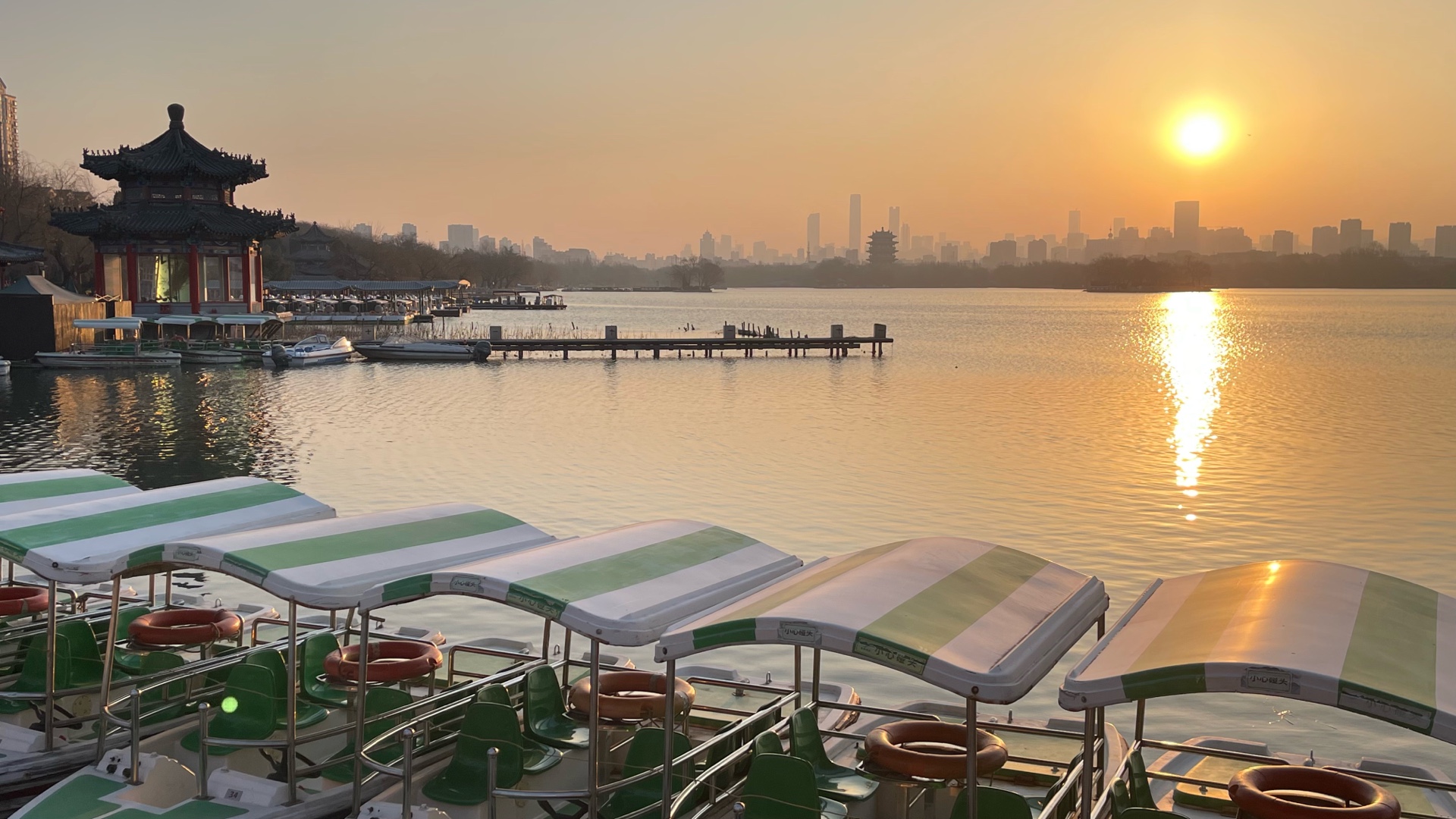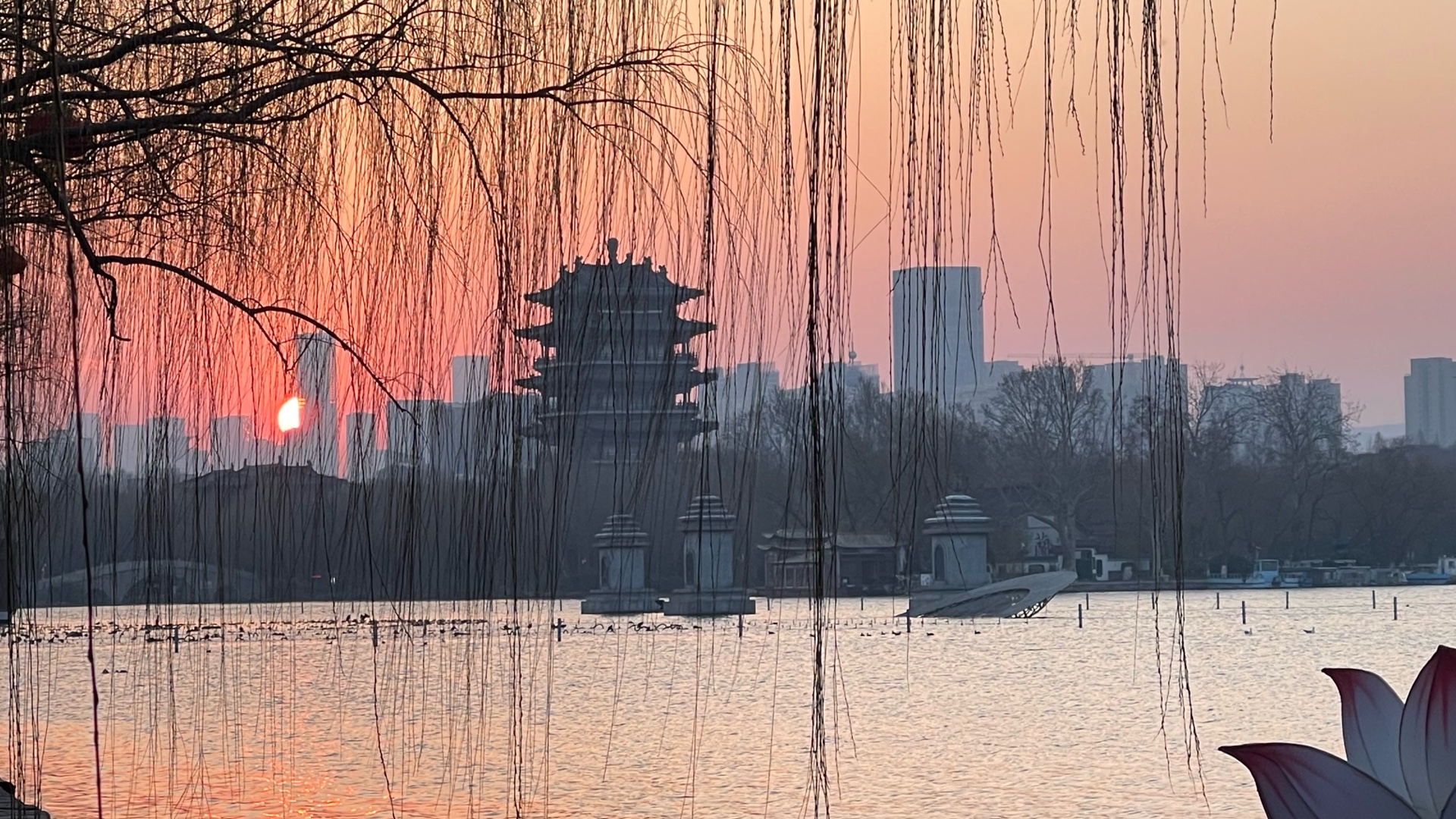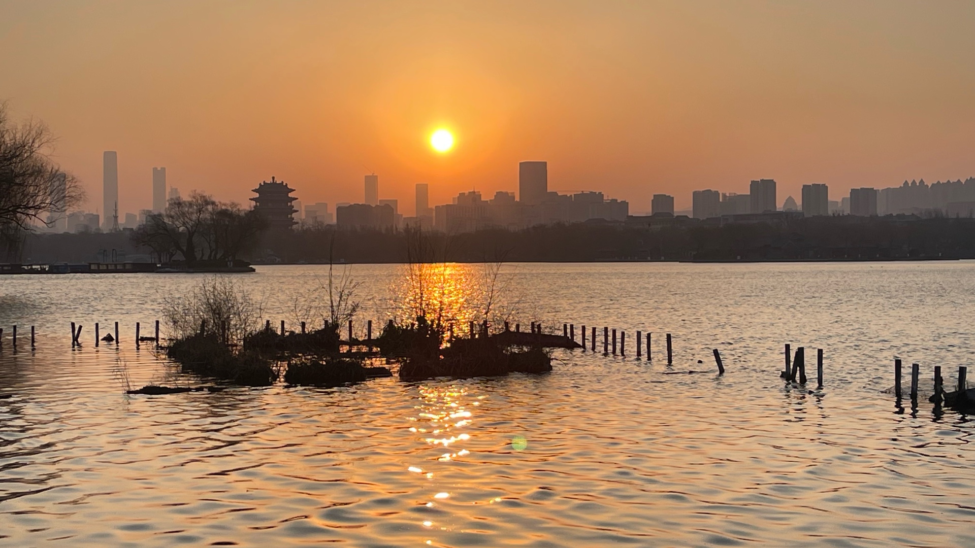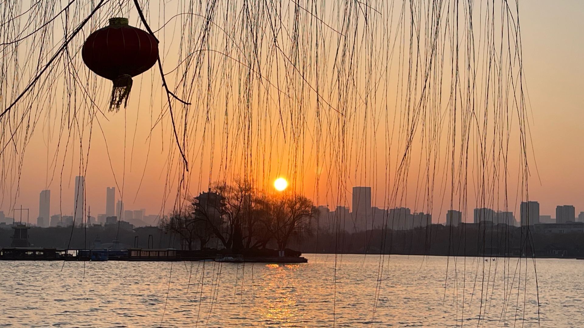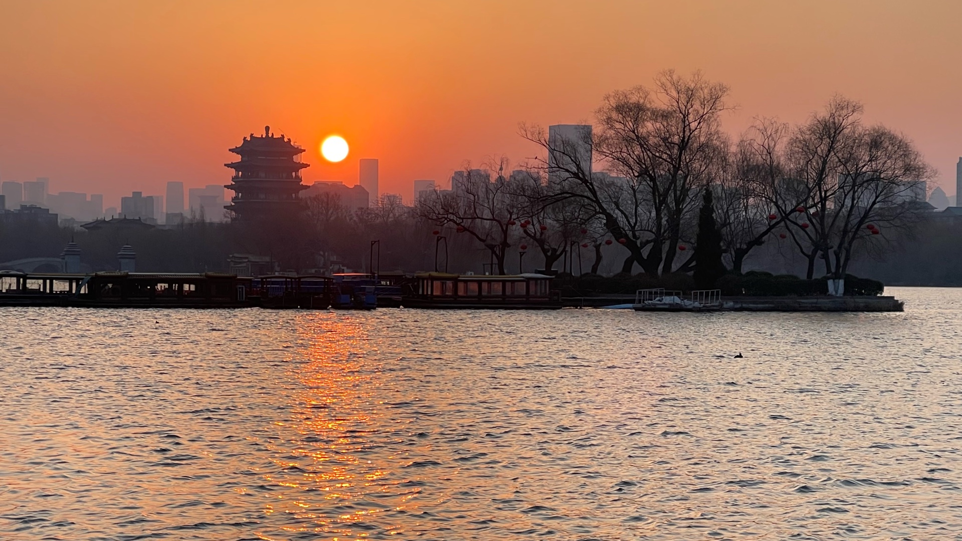 初四清晨打卡明湖,旭日冉冉升起,碧波荡漾,春意盎然!