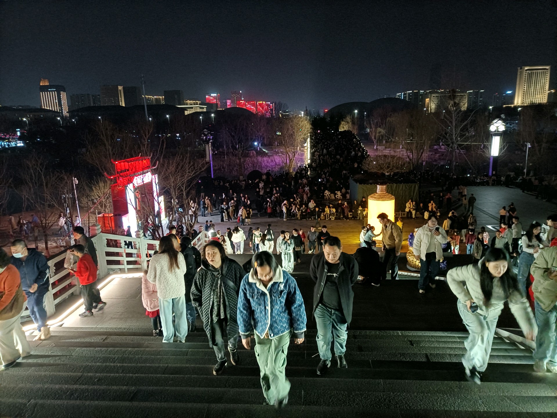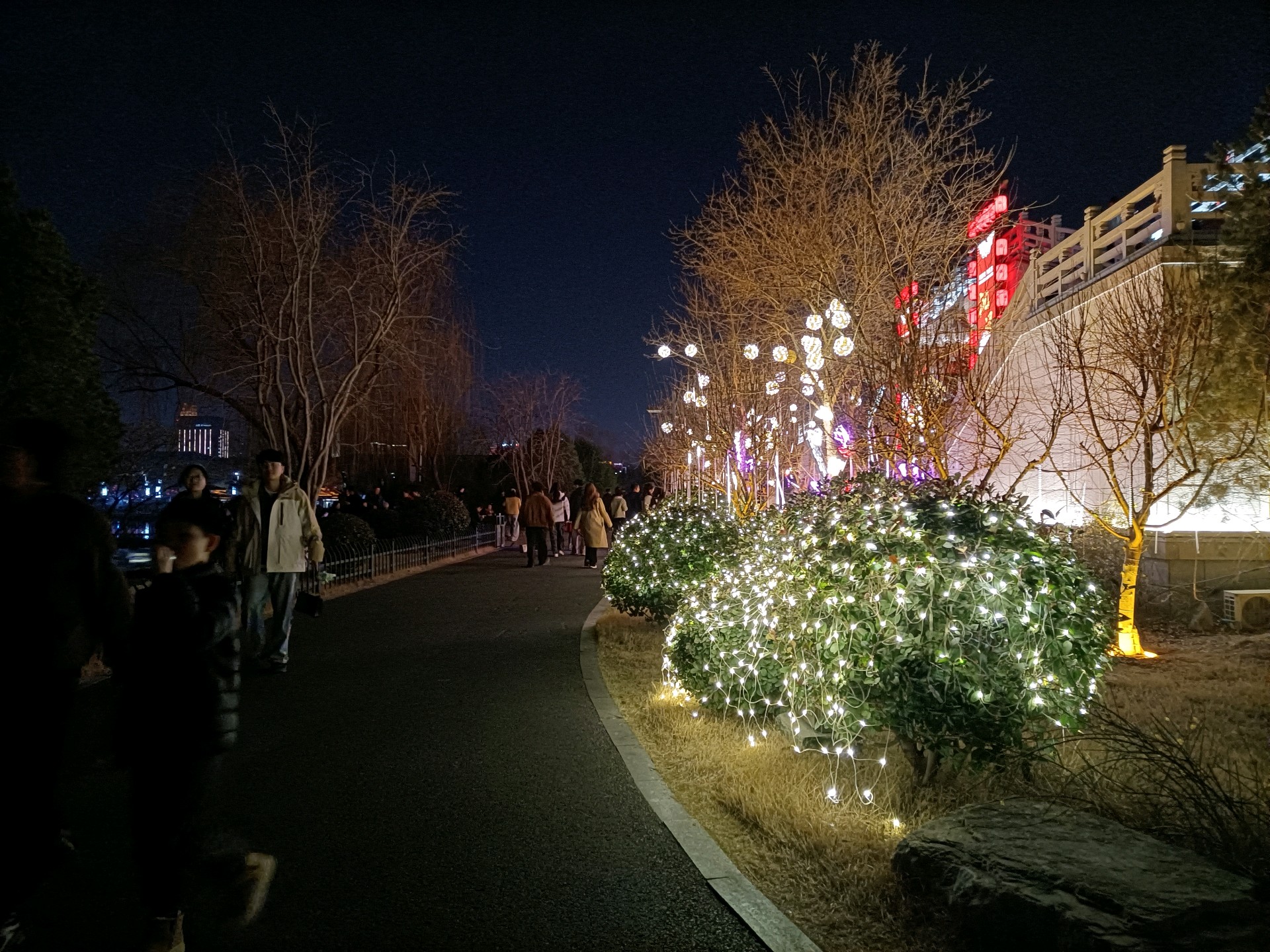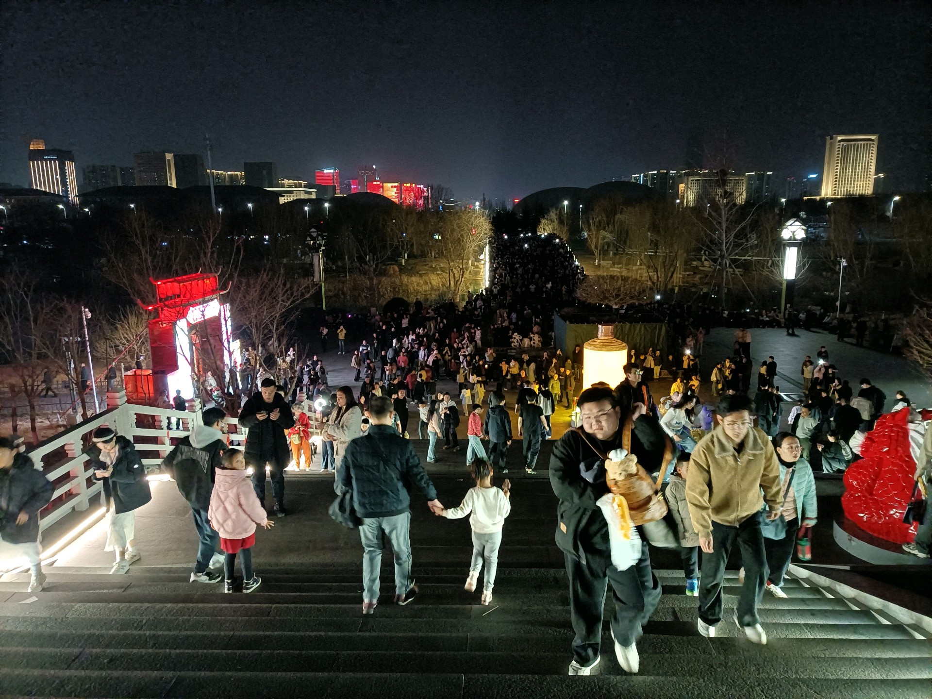 淄博市齐盛湖公园夜景状若仙境。马年初五晚上,人山人海,颇为壮观。