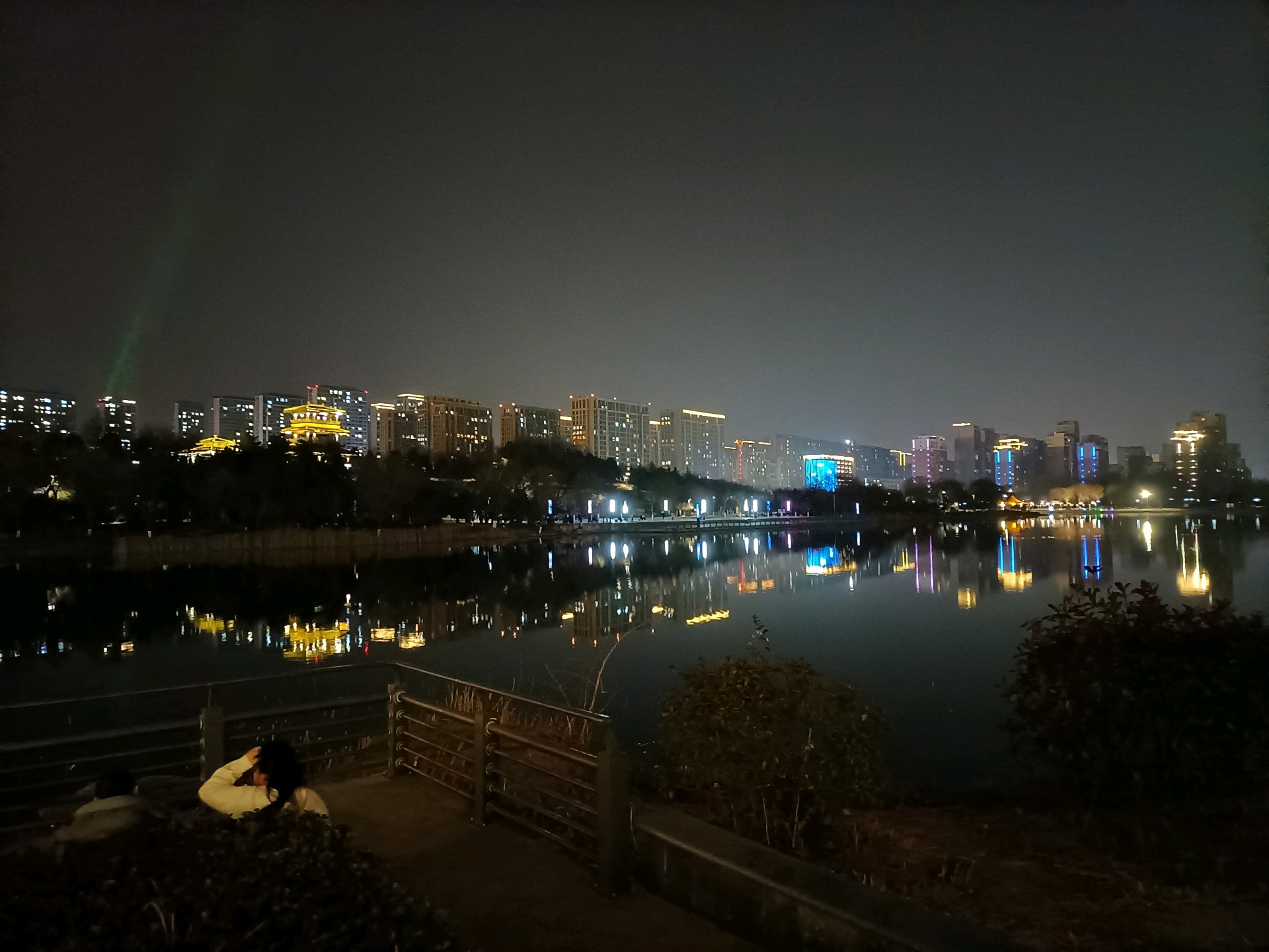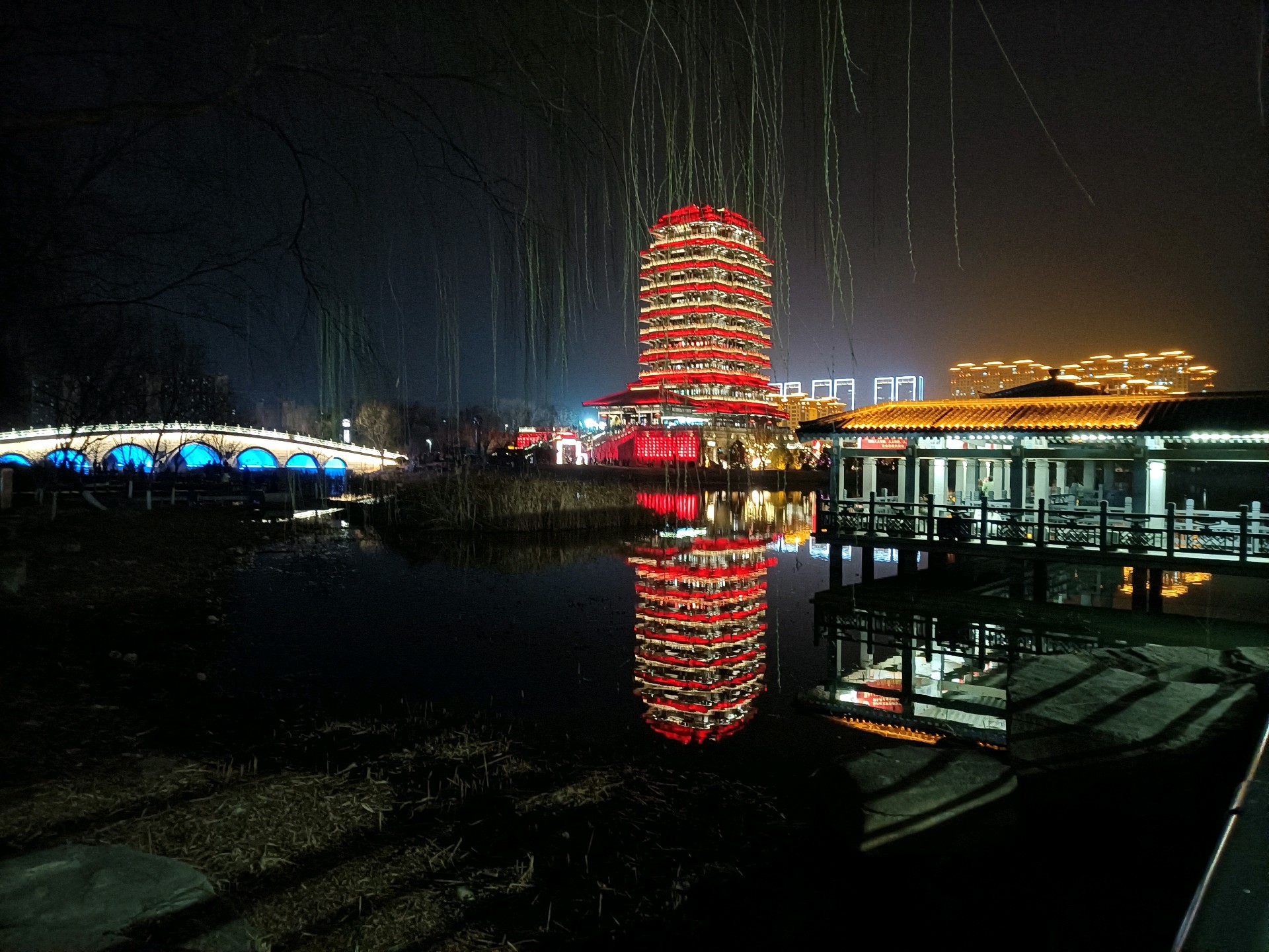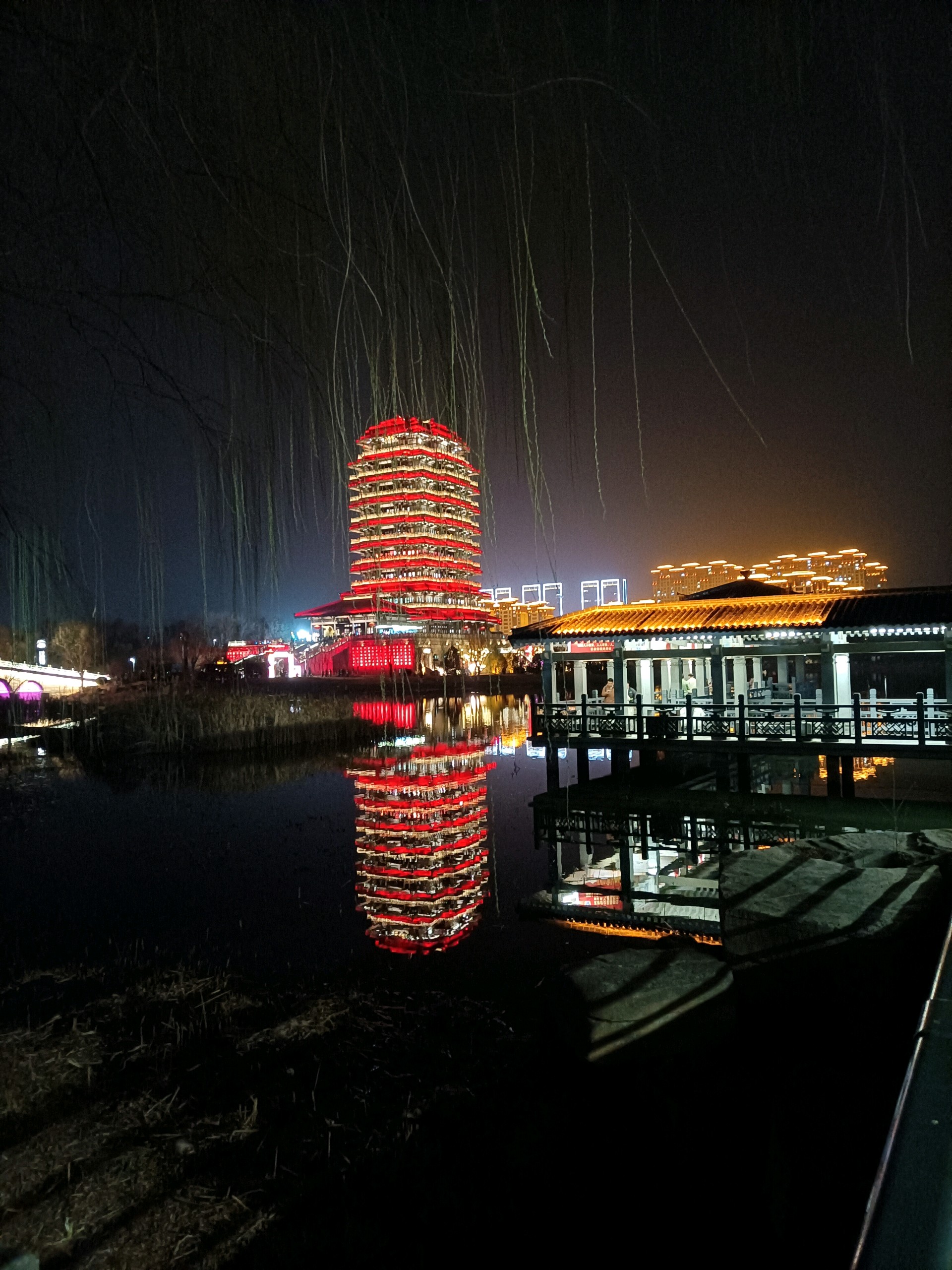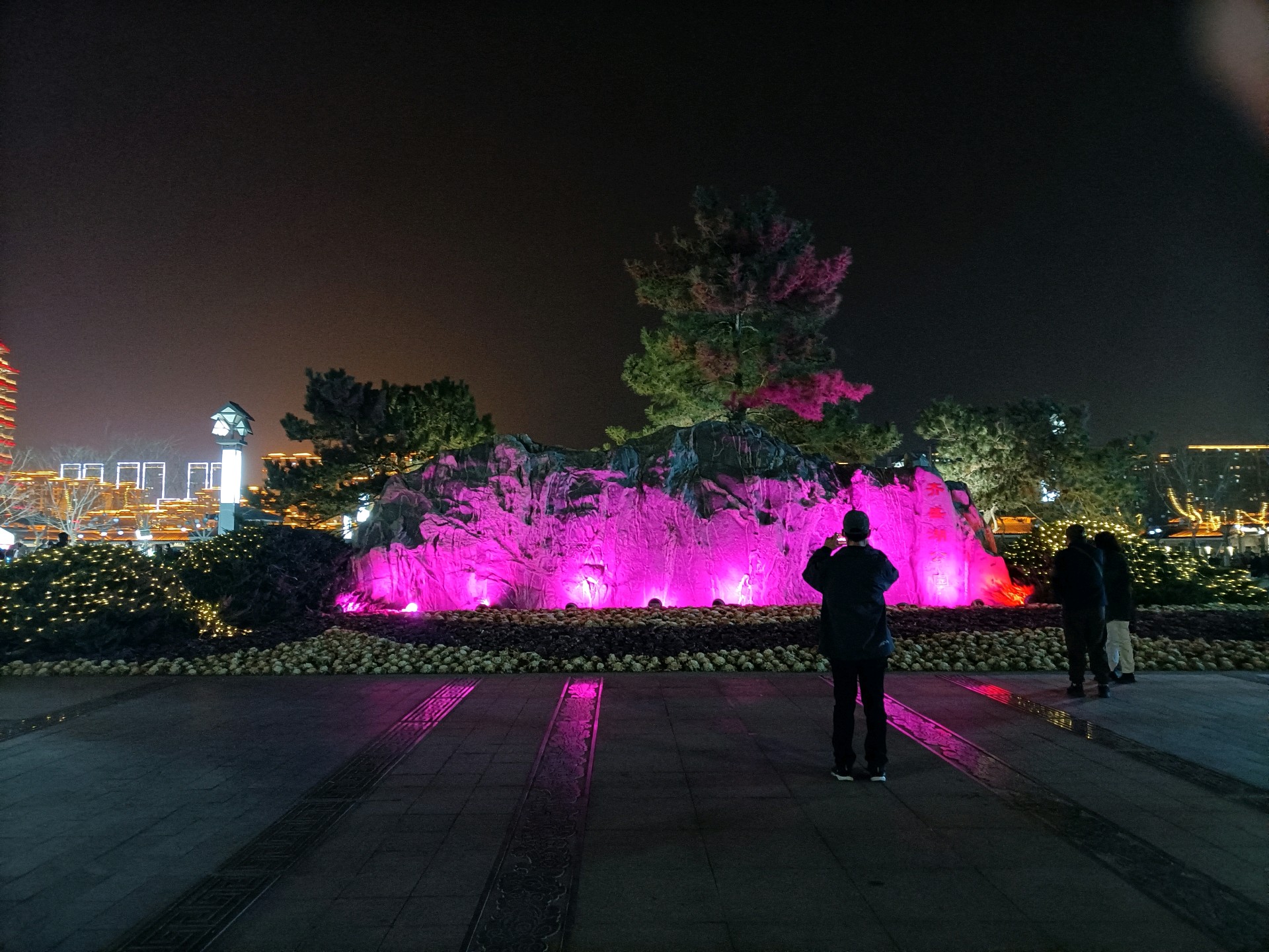 淄博市齐盛湖公园夜景状若仙境。马年初五晚上,人山人海,颇为壮观。