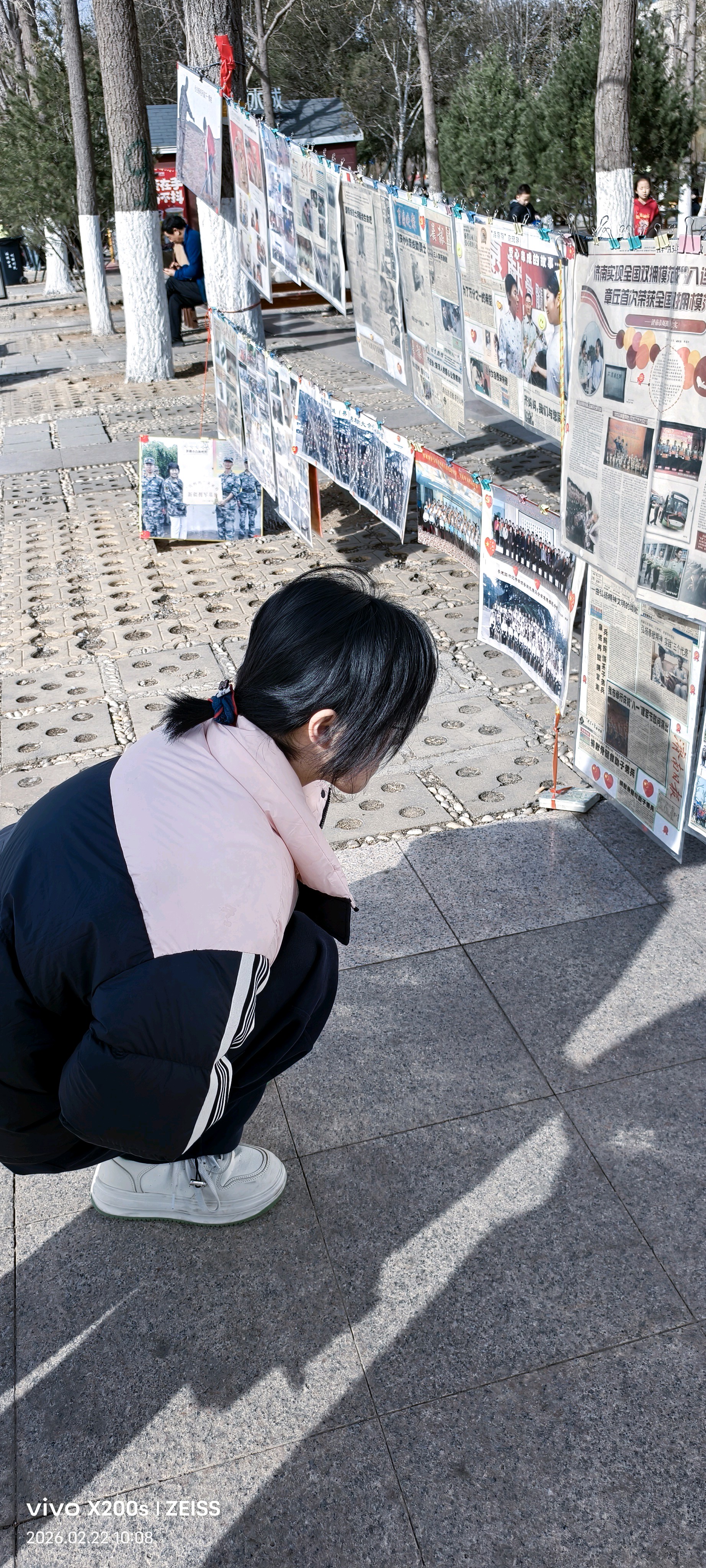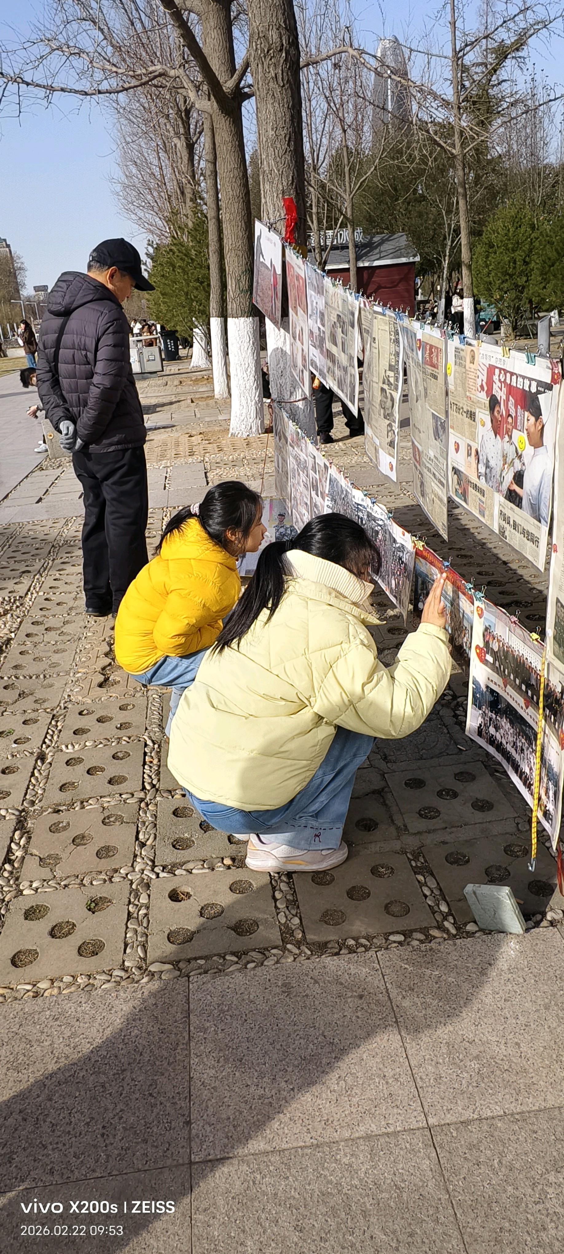 更让人动容的是孩子们的驻足,菏泽市牡丹区长江路校区二十一中同学和弟弟,左看右看的模样,不只是好奇,更是一种血脉里的共鸣。爸爸曾穿军装,那份荣誉感便悄悄种进了孩子心里。他们看的不是展板,是父亲的影子,是一段未曾亲历却深感骄傲的时光。