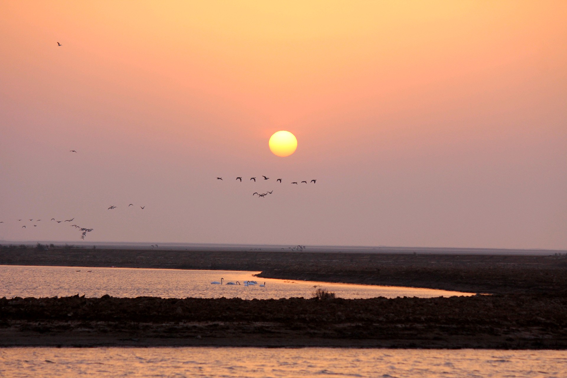 晨曦中的黄河入海口湿地…