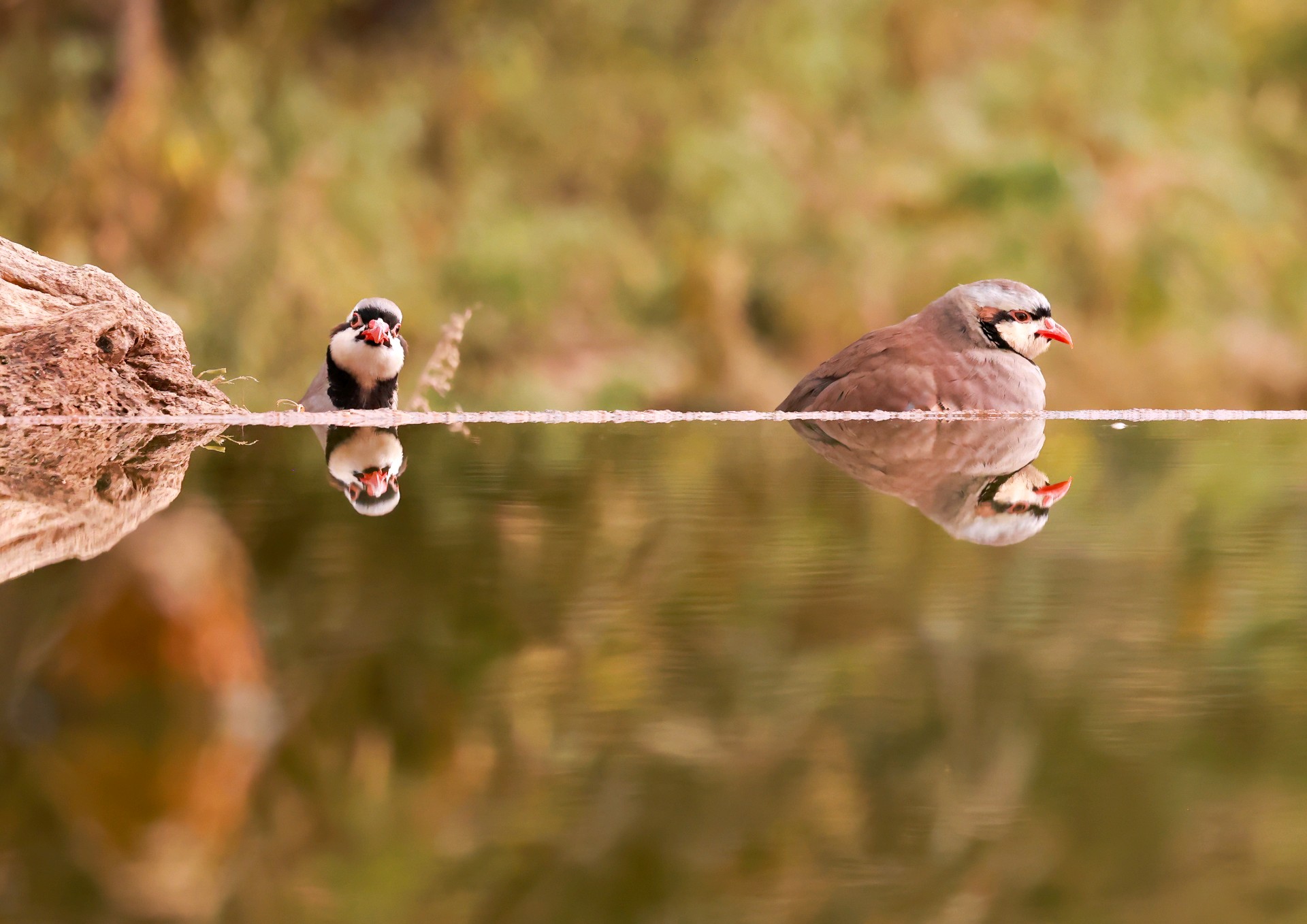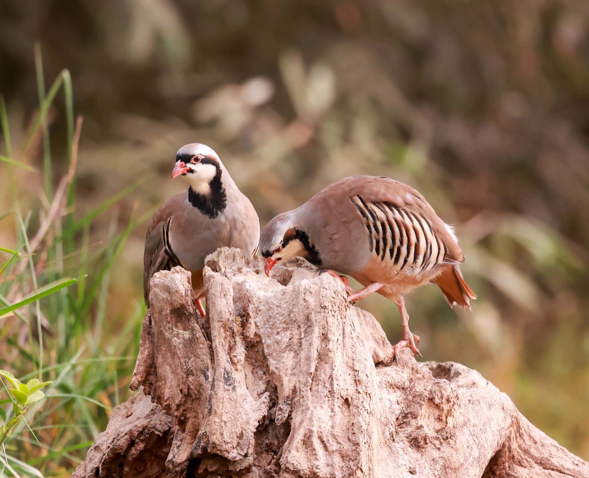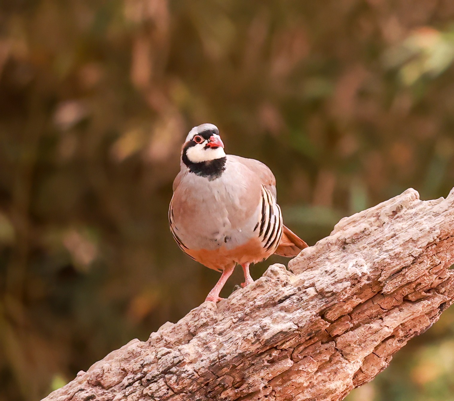 美丽可爱的小鸟石鸡欣赏它有醒目的黑色眼线,从额头穿过眼睛再向下弯到喉部,像画了漂亮的“眼影”。两胁羽毛有黑白相间的横斑,像斑马的纹路,在鸟类中堪称经典。喙和眼圈周围是鲜红色,爪子也是红色,像涂了口红,气色很好。体型敦实圆滚,看起来总是一副吃饱喝足的满足模样。石鸡特别擅长爬山奔跑,警觉时会把脖子伸直,站得笔直,样子很逗趣。