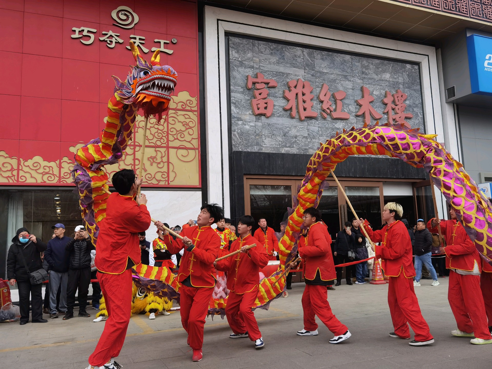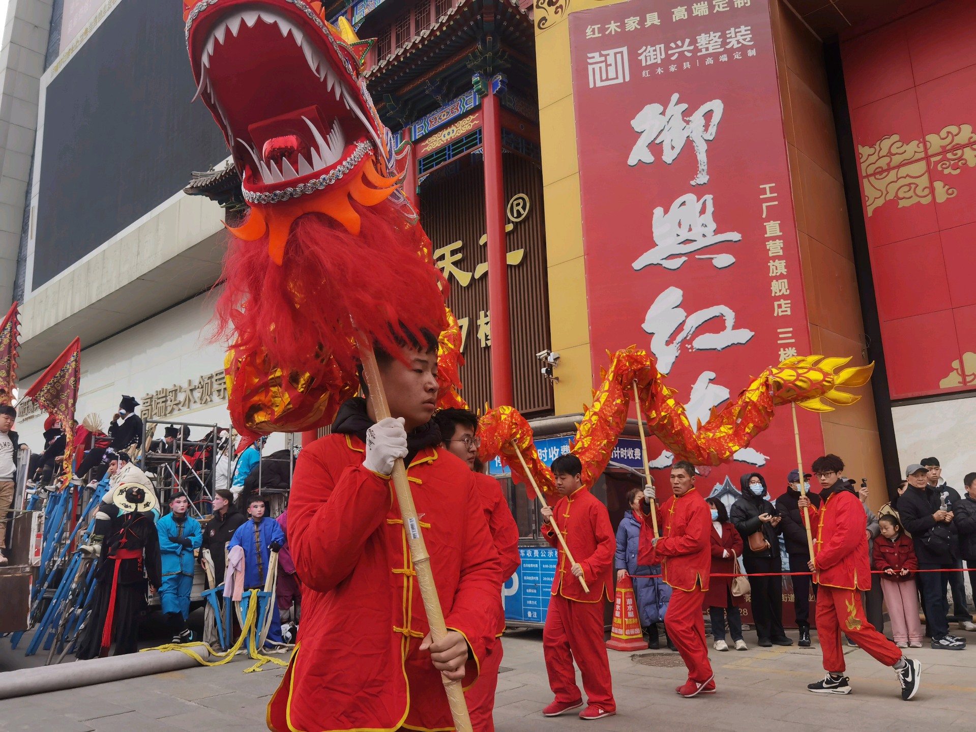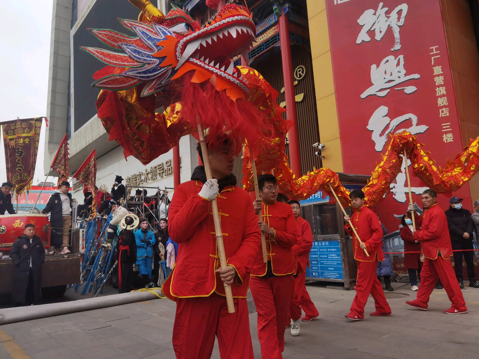 年初七,西关高跷队的舞龙表演,舞动长龙,红红火火过大年!