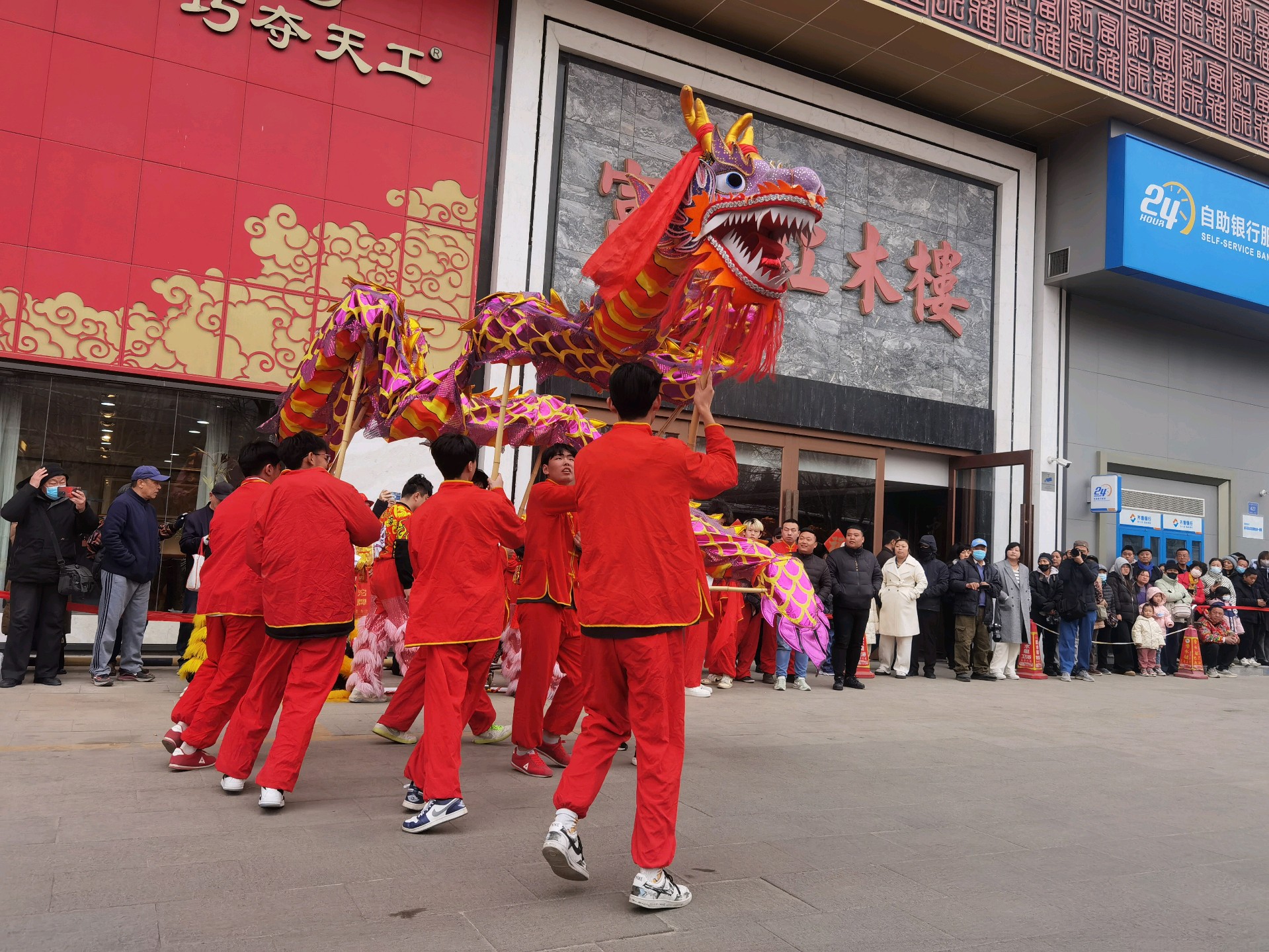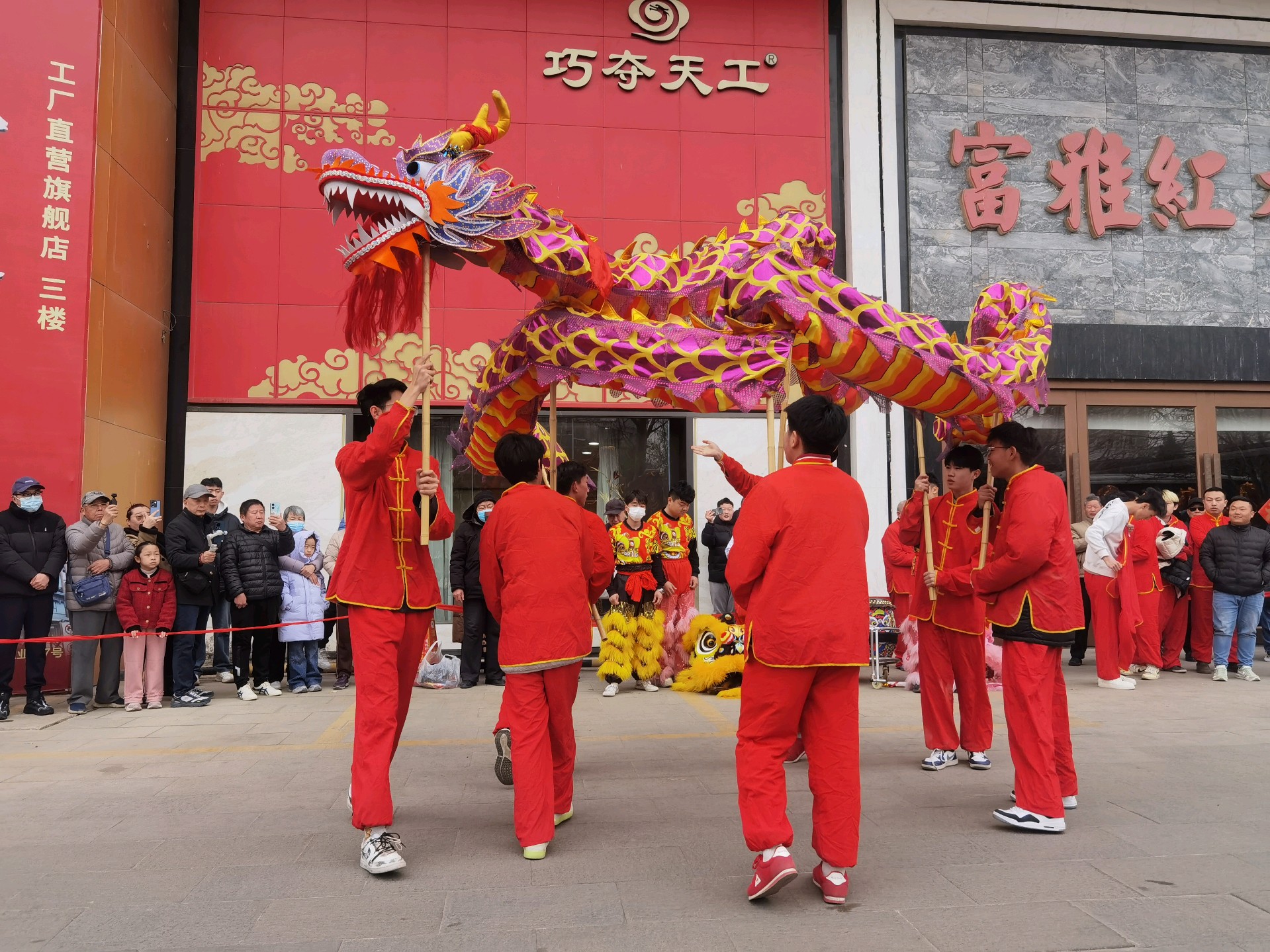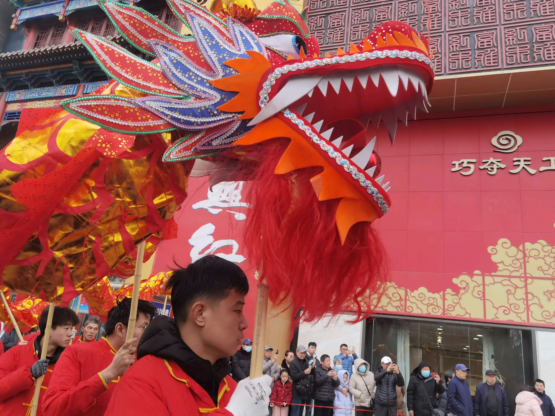 年初七,西关高跷队的舞龙表演,舞动长龙,红红火火过大年!