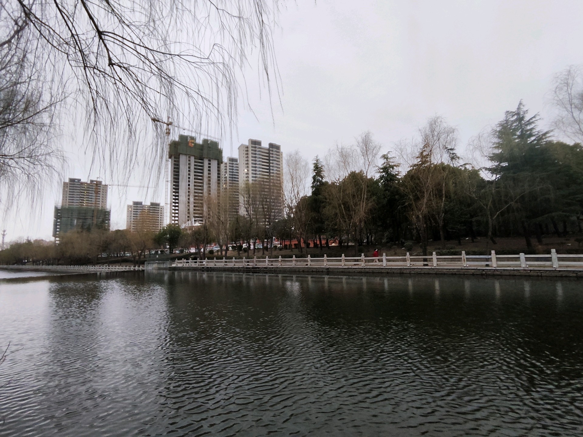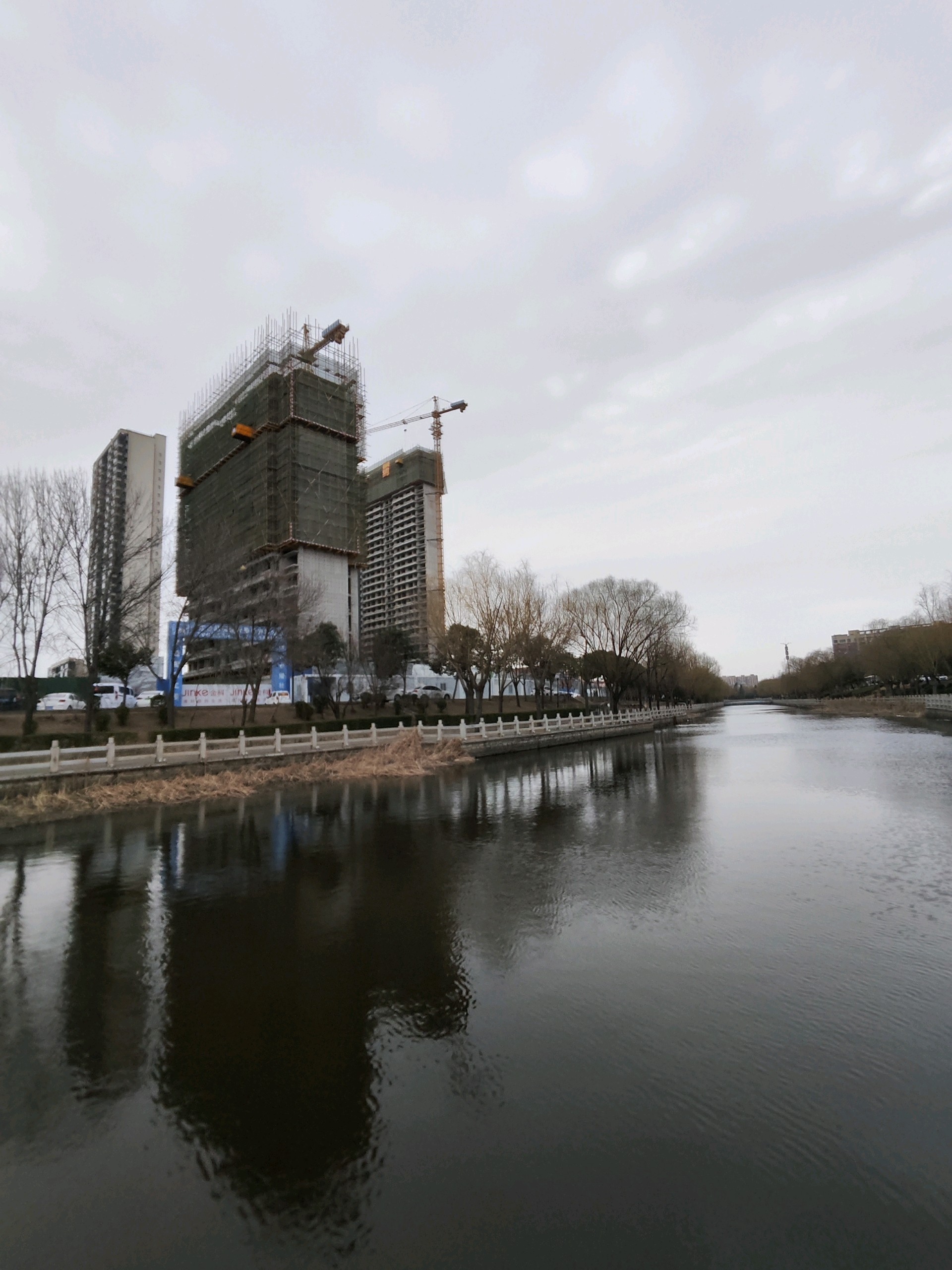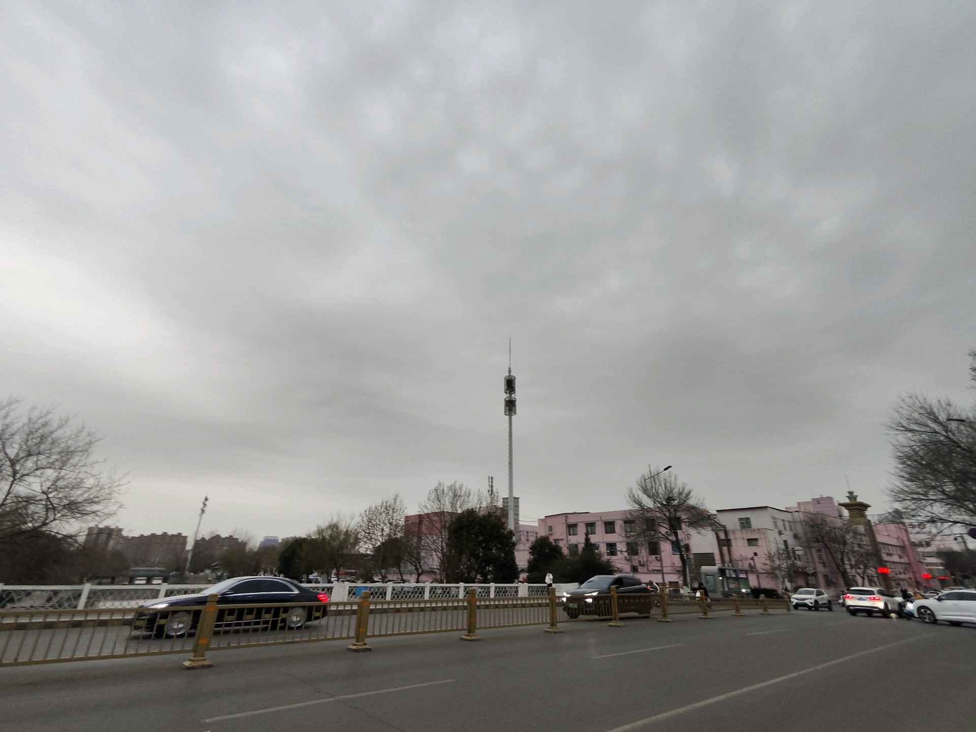 灰蒙蒙的天空下,一条宽阔的道路,车水马龙。行驶的车辆,穿梭的行人,构成了一幅生动的城市画卷。