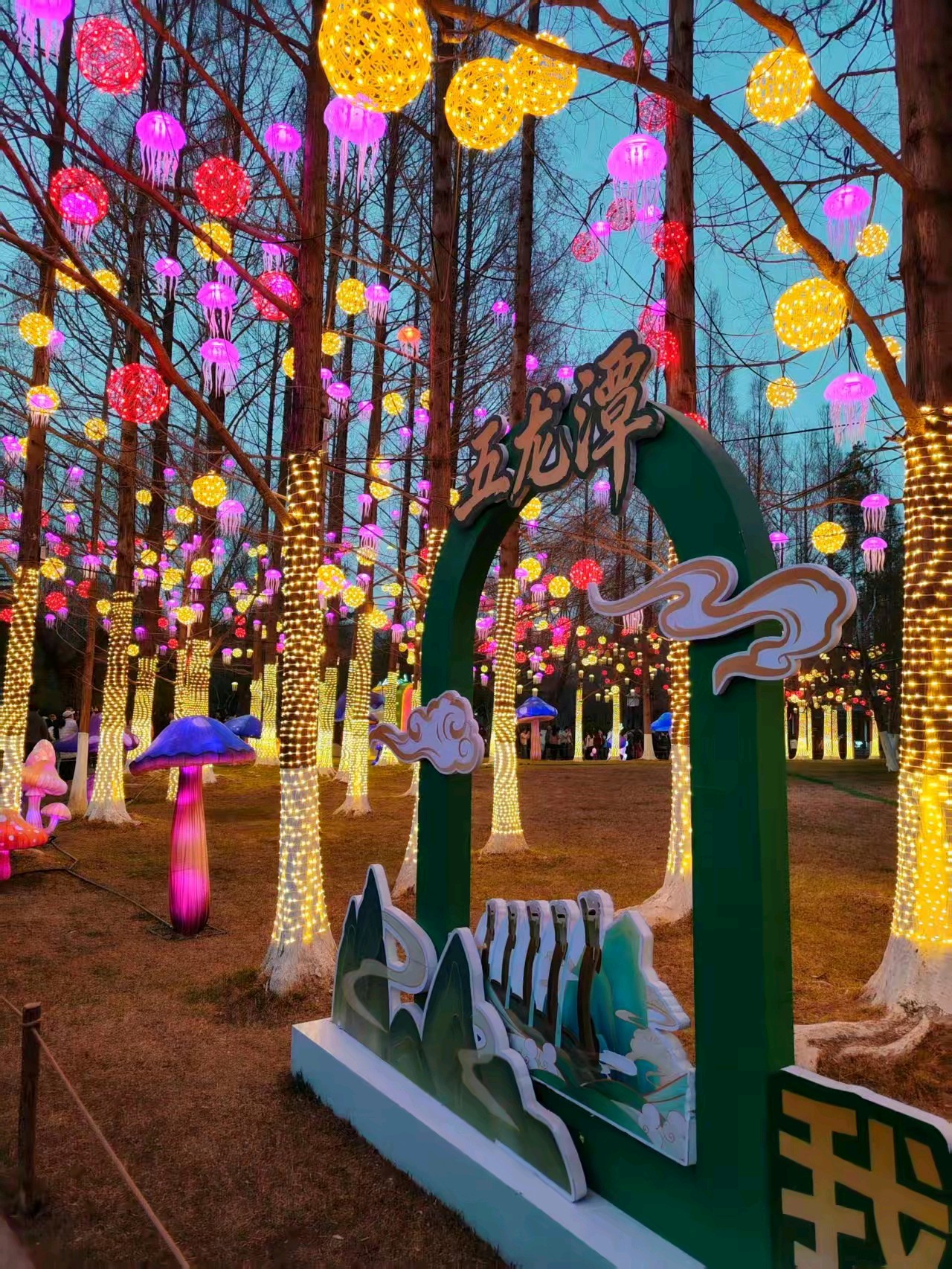 五龙潭公园的花灯,把公园装扮的美仑美奂,人在园中走,就像走进了一个美丽的童话世界。