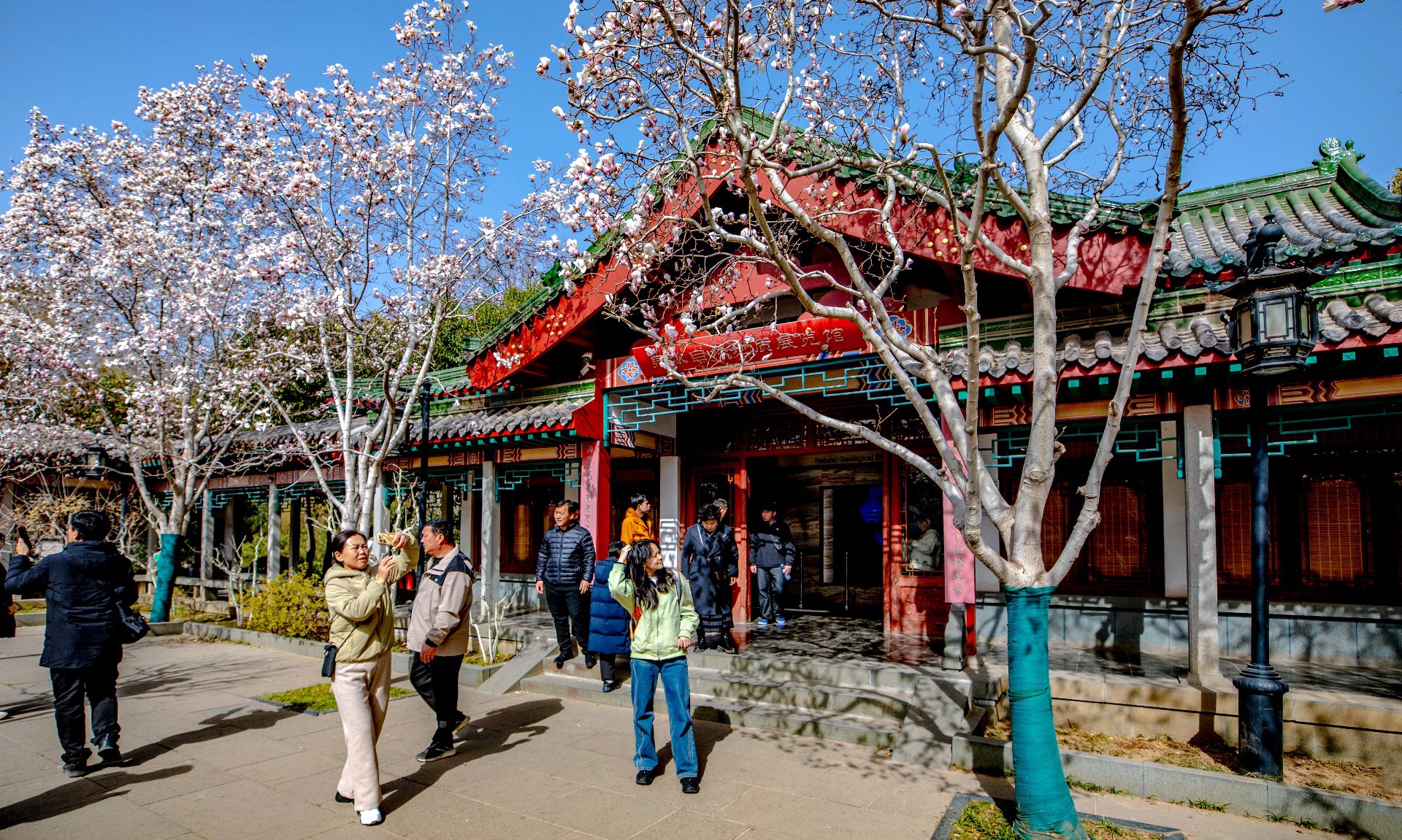 壹粉过大年|趵突泉公园玉兰花悄然盛开,亭亭玉立香溢满园!