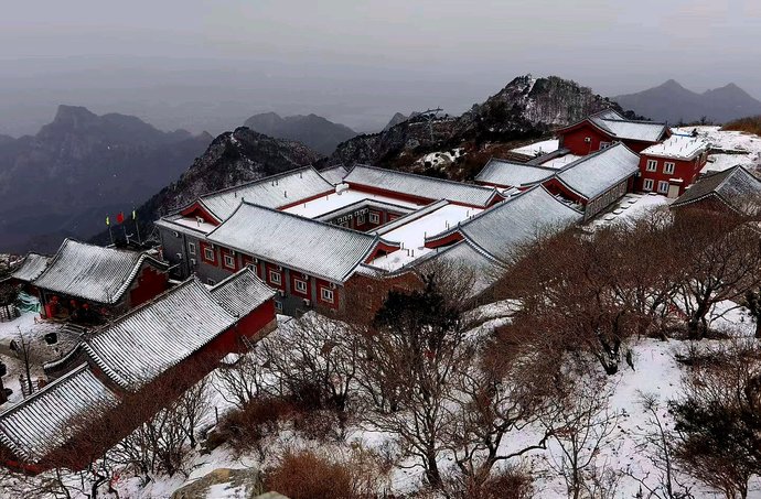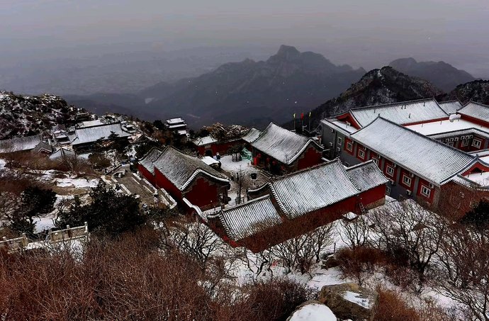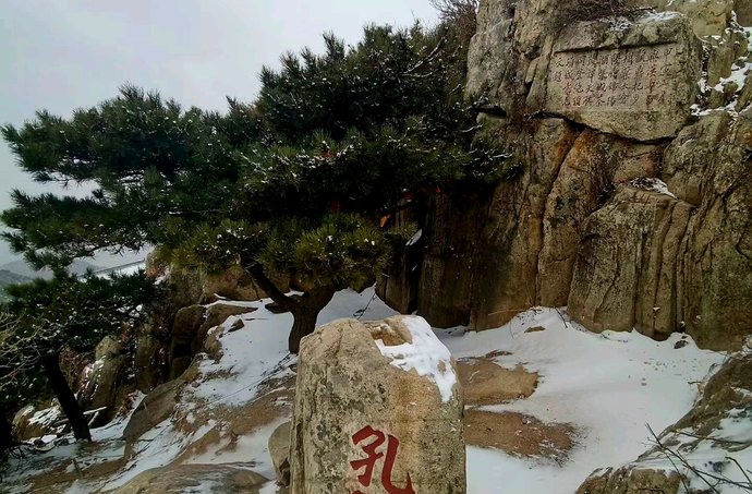远眺群峰,云海翻涌处若隐若现,雪后的岱顶宛如悬浮于仙境的玉台,连石刻上的经文都覆上薄雪。