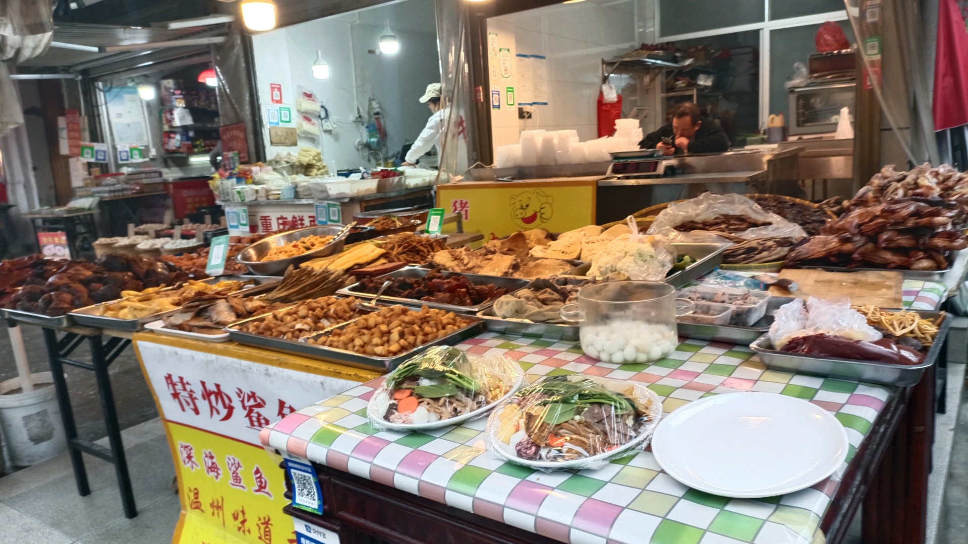 每次旅游,甚至出公差的时候,如果时间允许,一定会去当地原汁原味的老街老巷转一转、看一看,因为这些地方最能体现当地的风土人情、生活习惯、消费水平。假期出游今天开始从温州返程,上午还有一点时间,于是来到入住酒店附近的一条老巷子,巷子是一个菜市场,也可以称为美食街,就如我们济南的北坦街和民族大街。今天这里下起了小雨,无形中显得街巷的烟火气更浓一些。温州人对鸭肉比较感兴趣,一条街有多家卖鸭舌、鸭掌的门店,好多市民冒雨前来购买,我也随缘在一家老店买了一斤。还有就是元宵店和粽子店也不少,不过和我们北方不一样,粽子和元宵基本都是以肉馅为主。鱼丸、鱼胶也是当地比较受欢迎的食材,店主热情地给我介绍如何食用.....