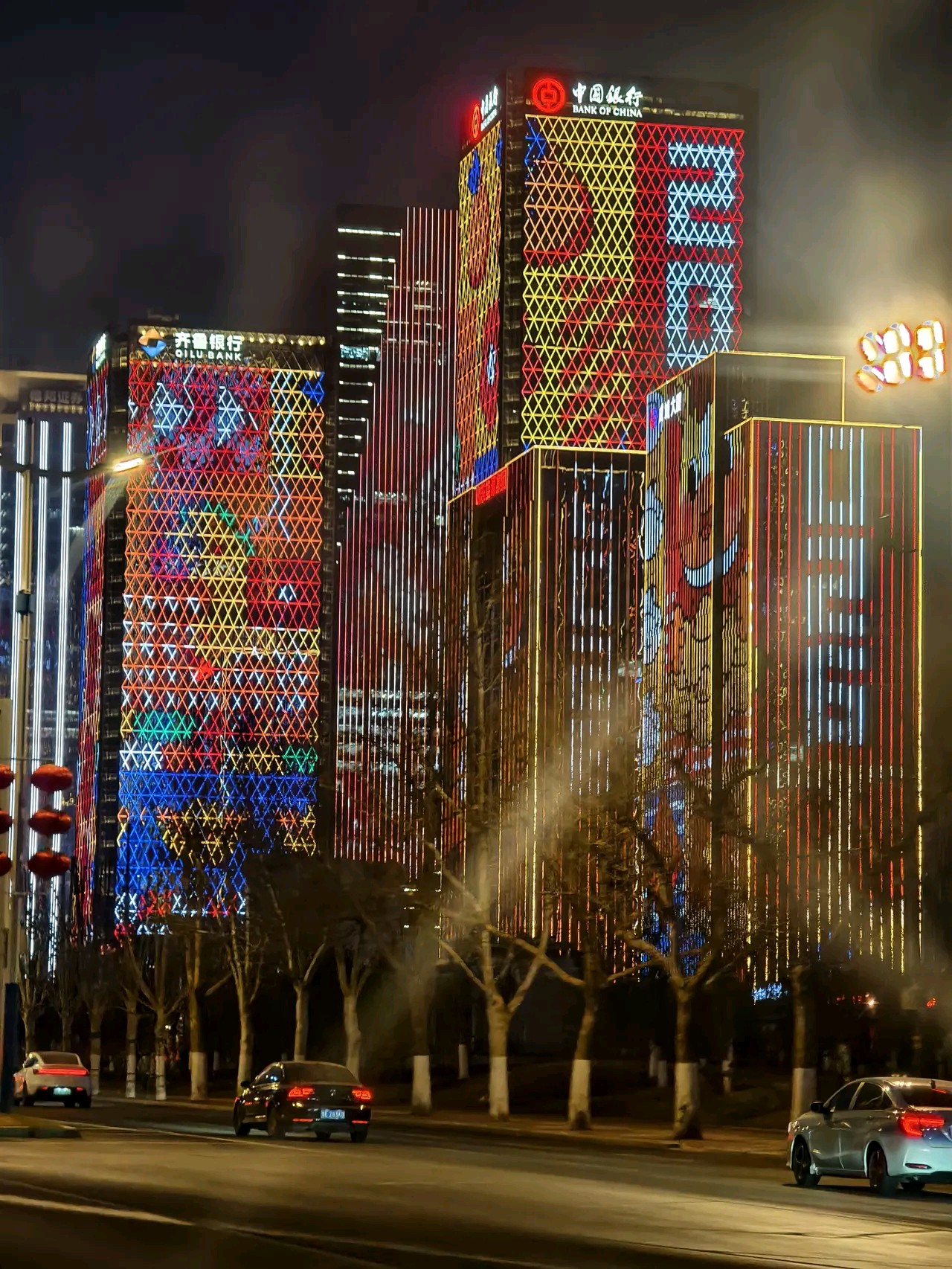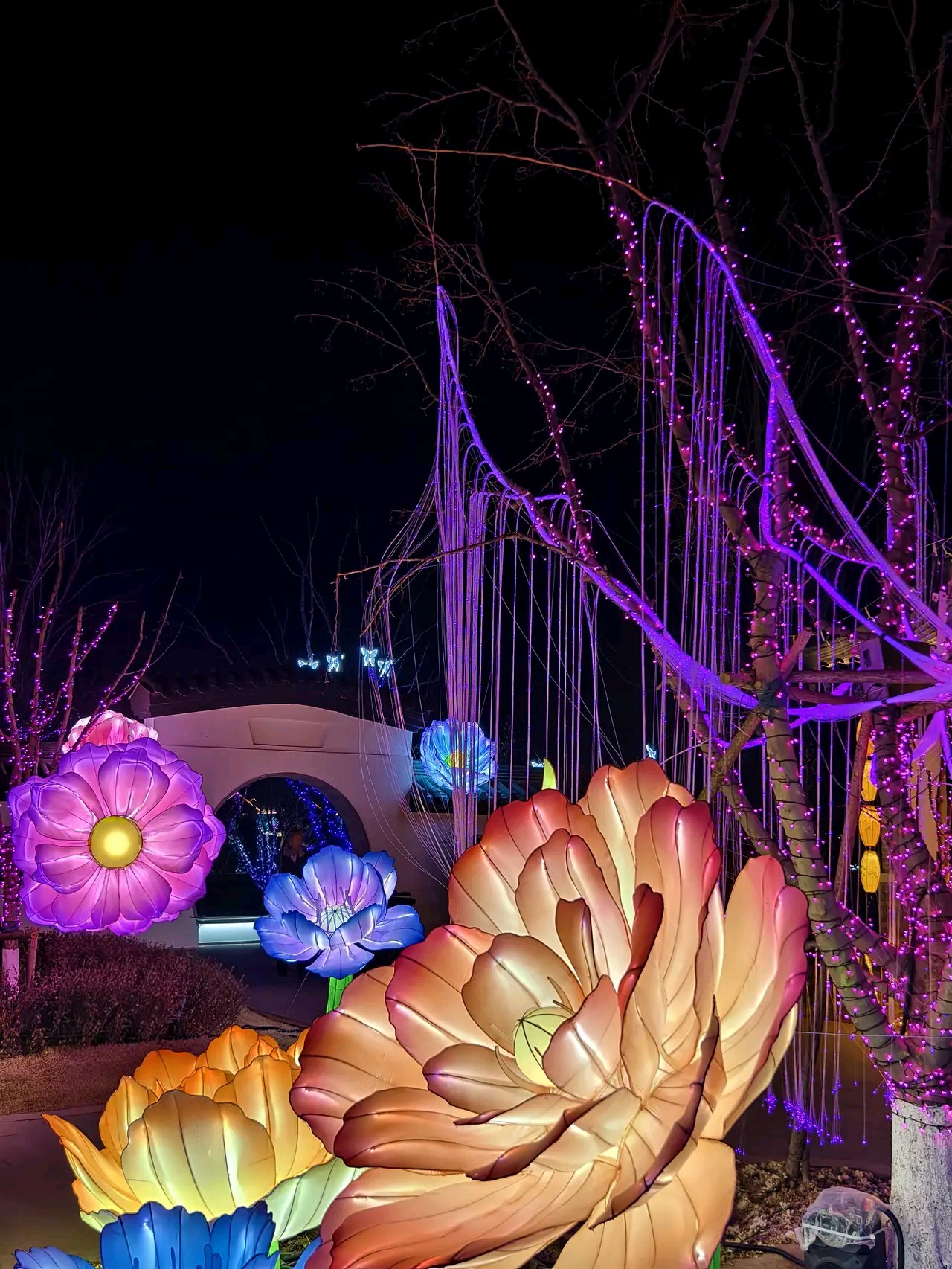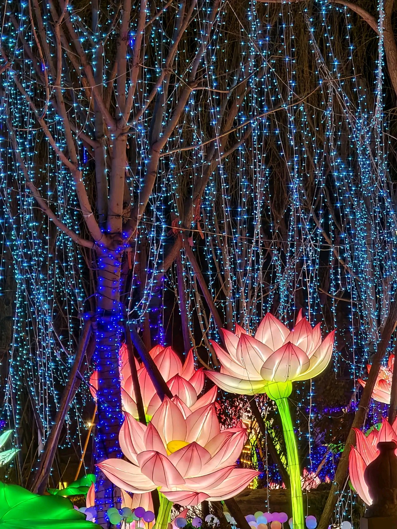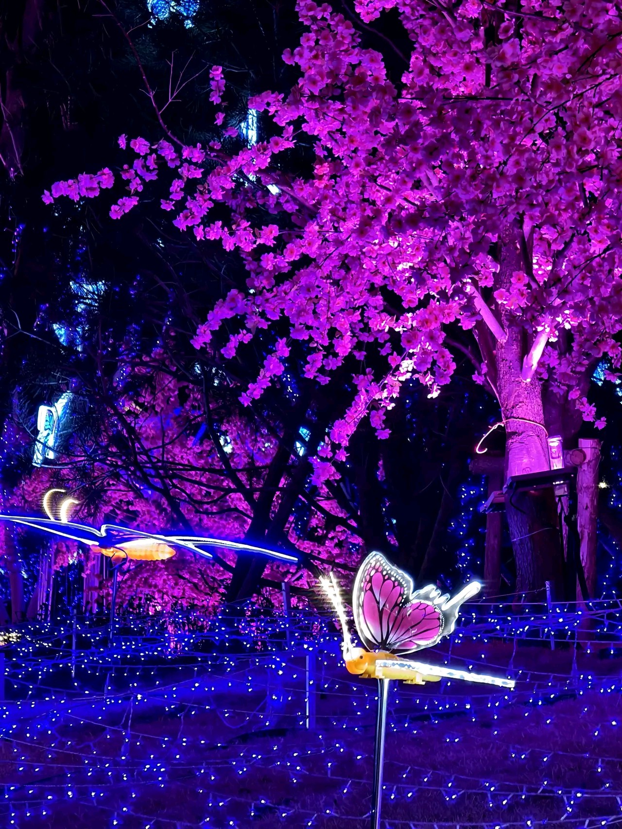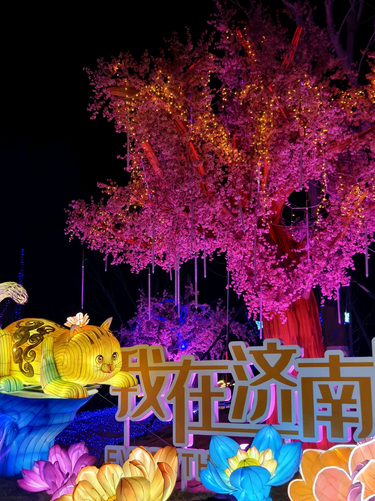 济南春节夜景真是美爆了,夜晚的灯光秀,绚烂的樱花树,我在济南等你来