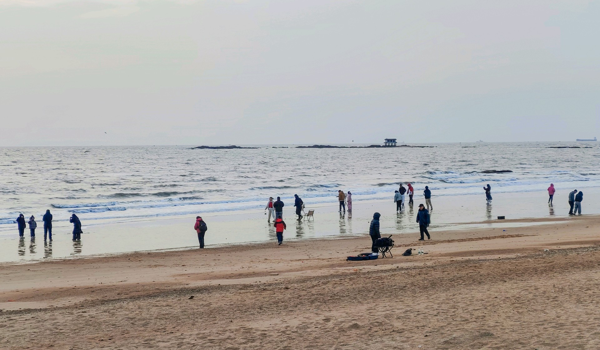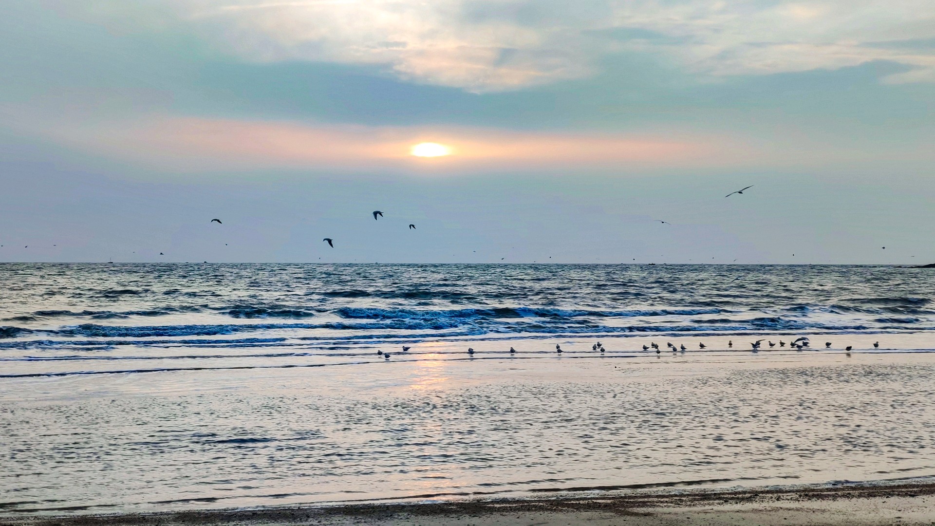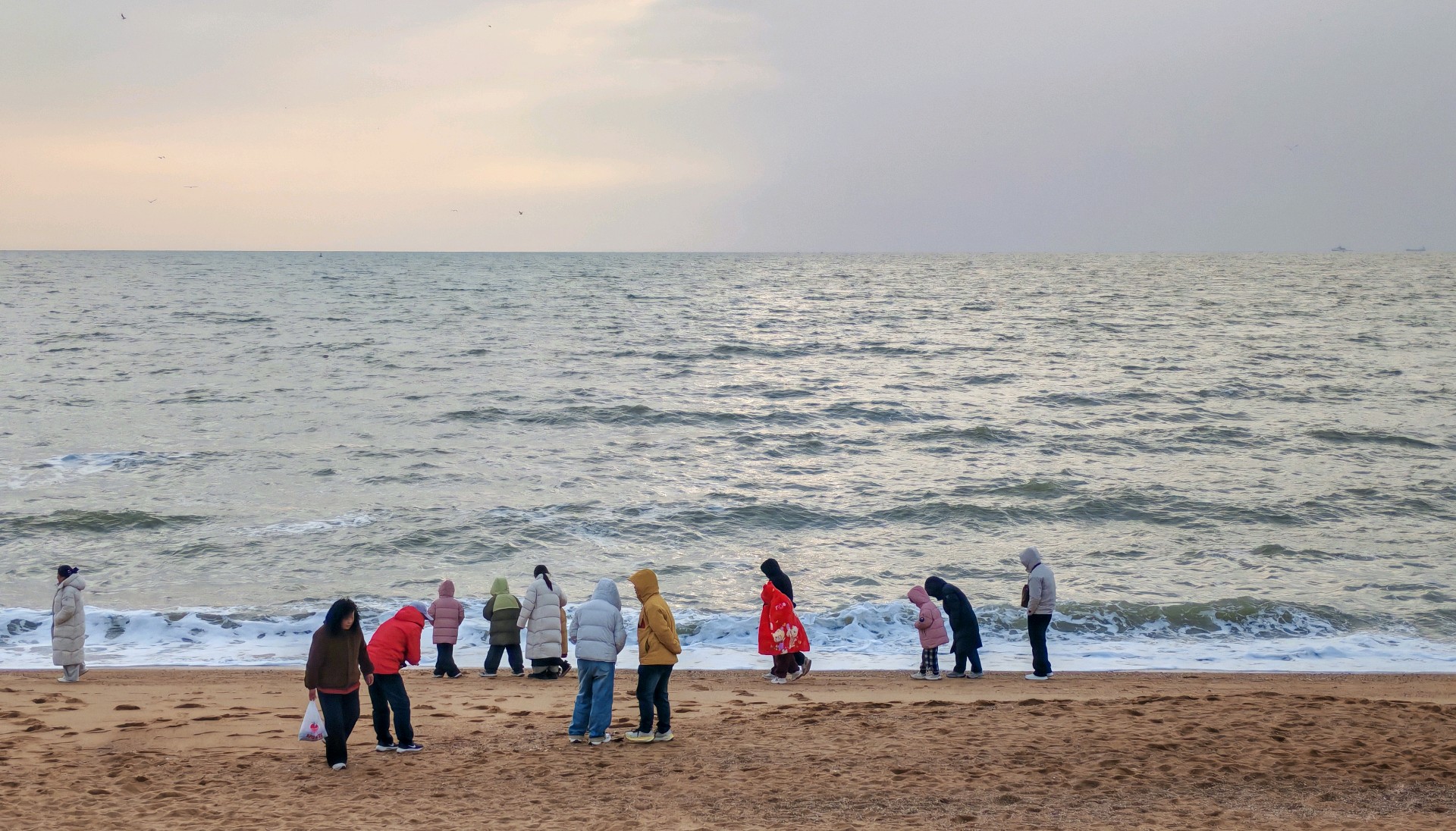 2026年2月23日,清晨,山东省日照市太公岛牡蛎公园周边,虽然没有朝阳破云的绚烂,但绵长的金沙滩,白色的海浪,成群的海鸥,还是给观海的人们带来快乐。金沙滩、海浪、海鸥、人群的交织,奏响了一场海滨晨曲 。