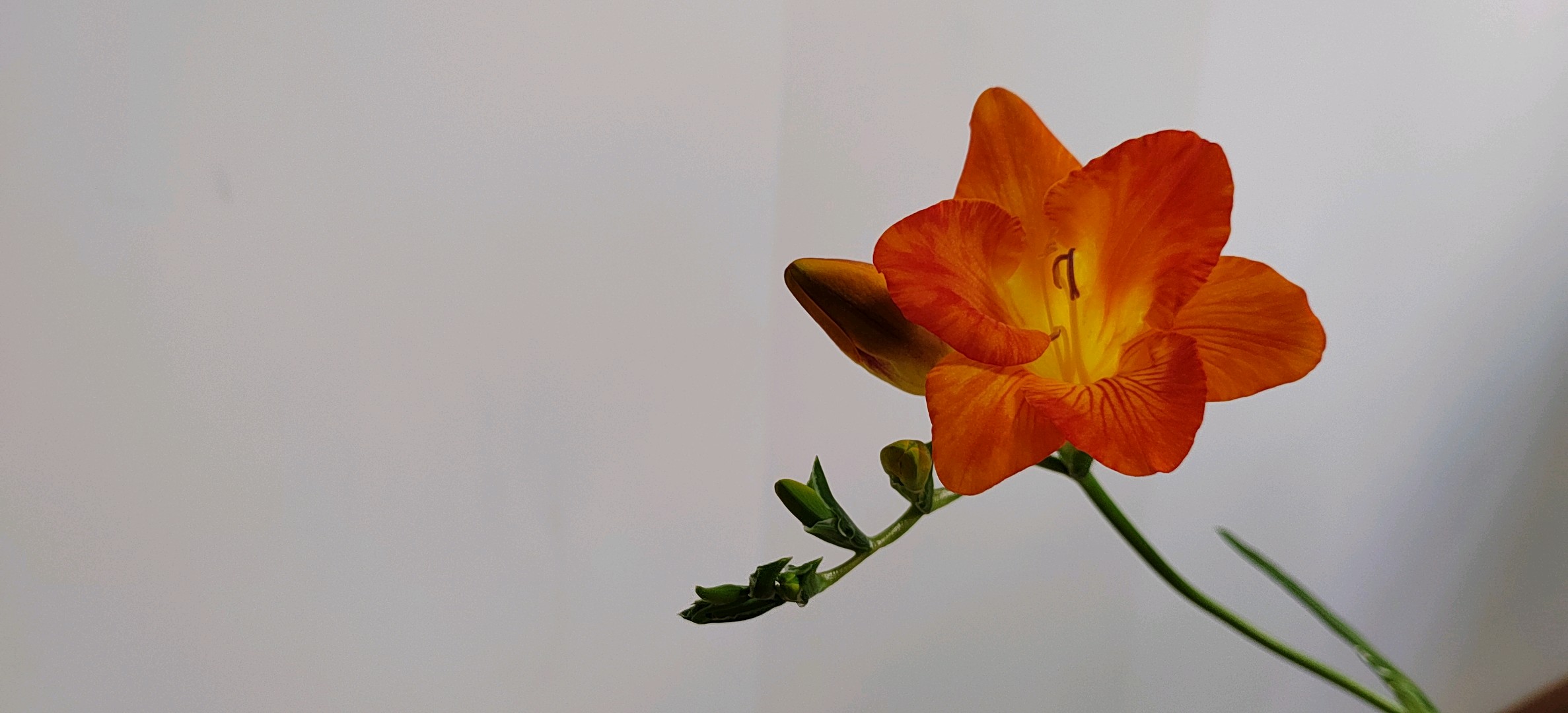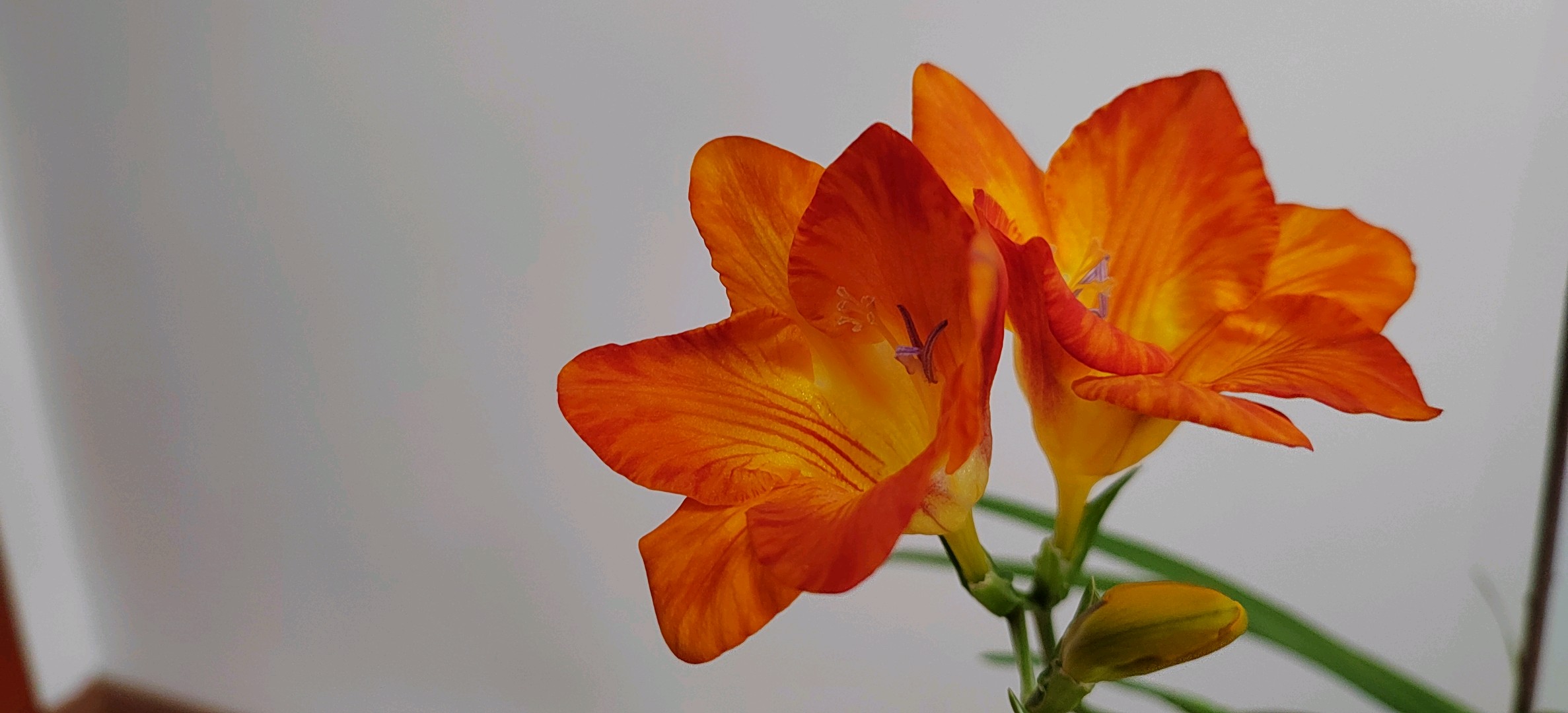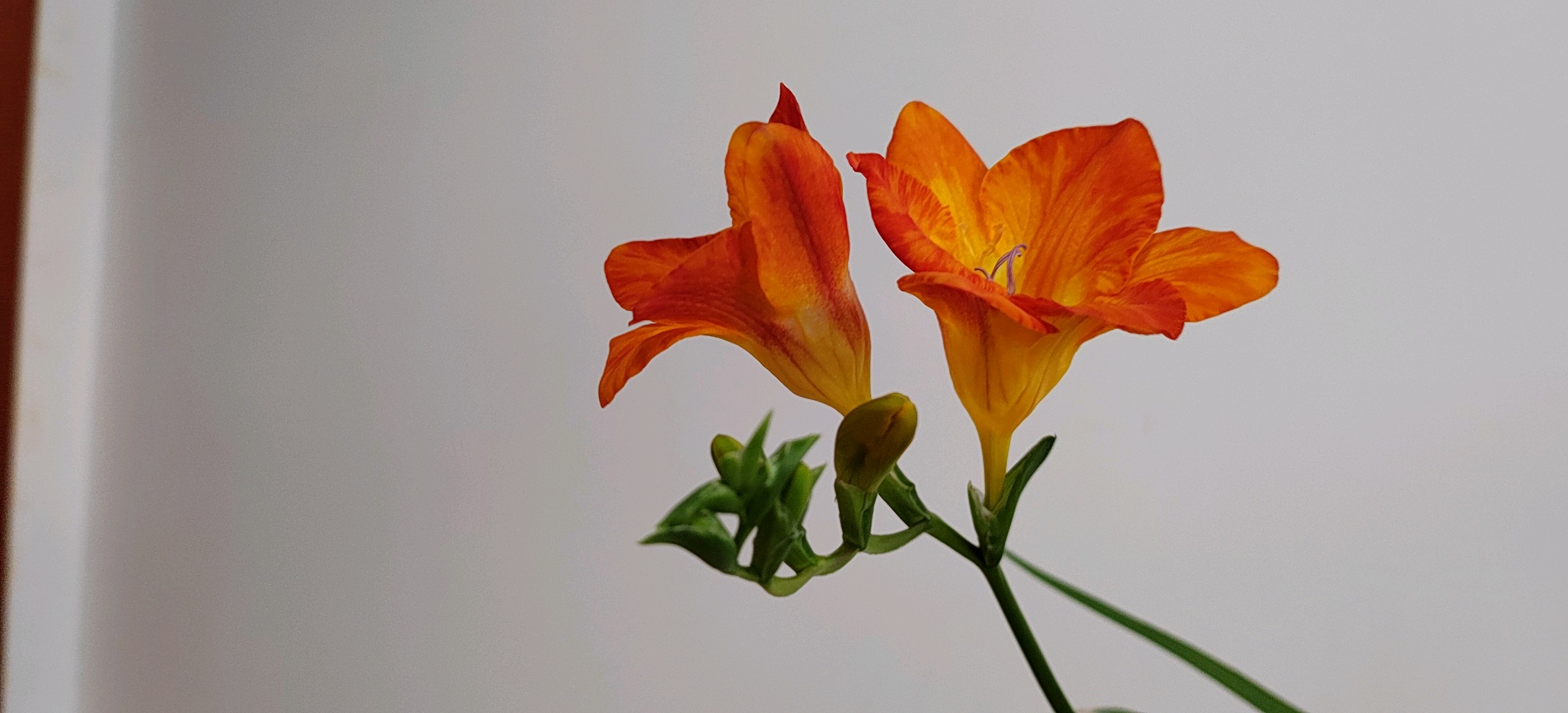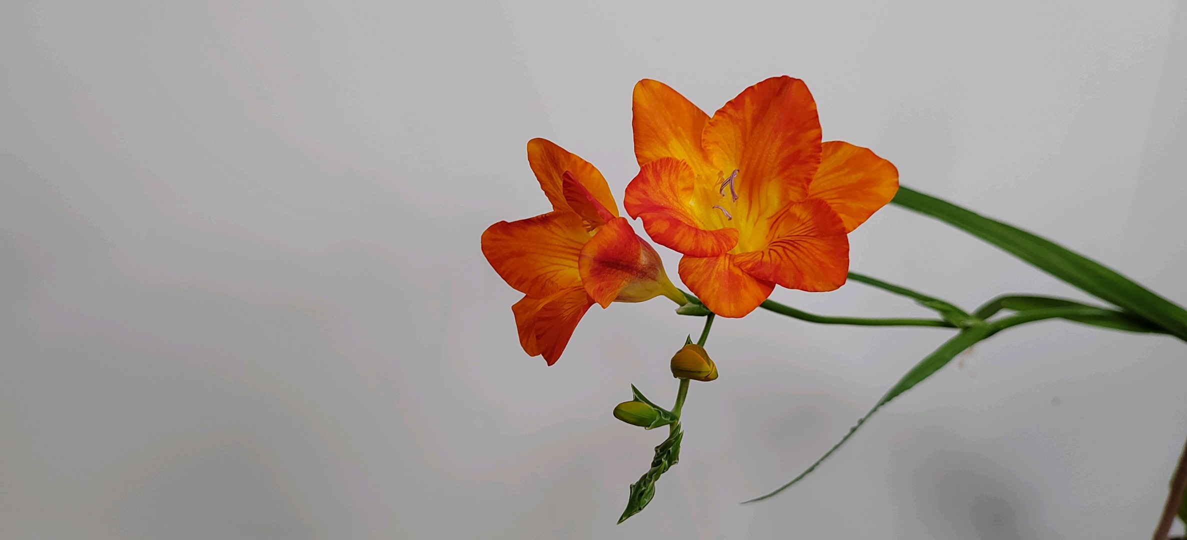 我家的香雪兰春节开花了。花香四溢,满屋芬芳。香雪兰是鸢尾科香雪兰属的多年生草本植物。球茎为狭卵形或卵圆形,外包薄膜质包被;叶剑形或条形,黄绿色;花被管喇叭形,淡黄色或黄绿色,具芳香;蒴果近卵圆形。花期4—5月,果期6—9月。其花色纯白似雪,香气如兰,因而得名。