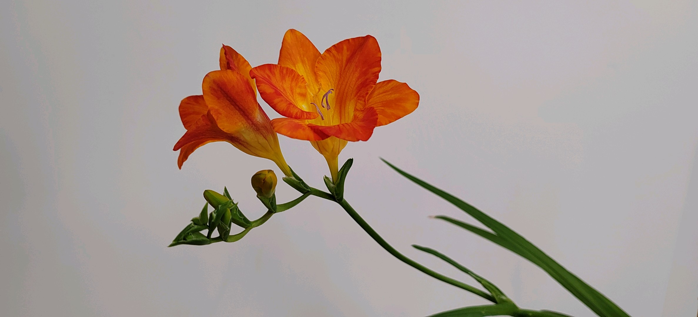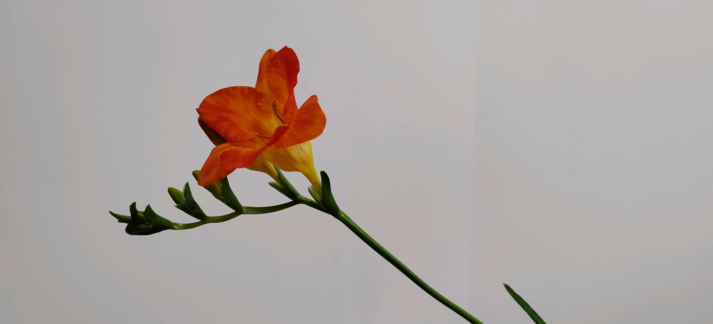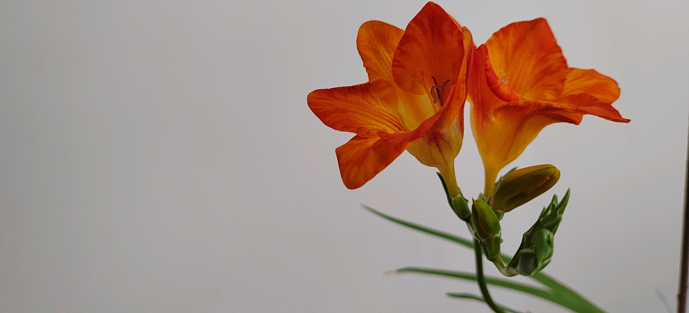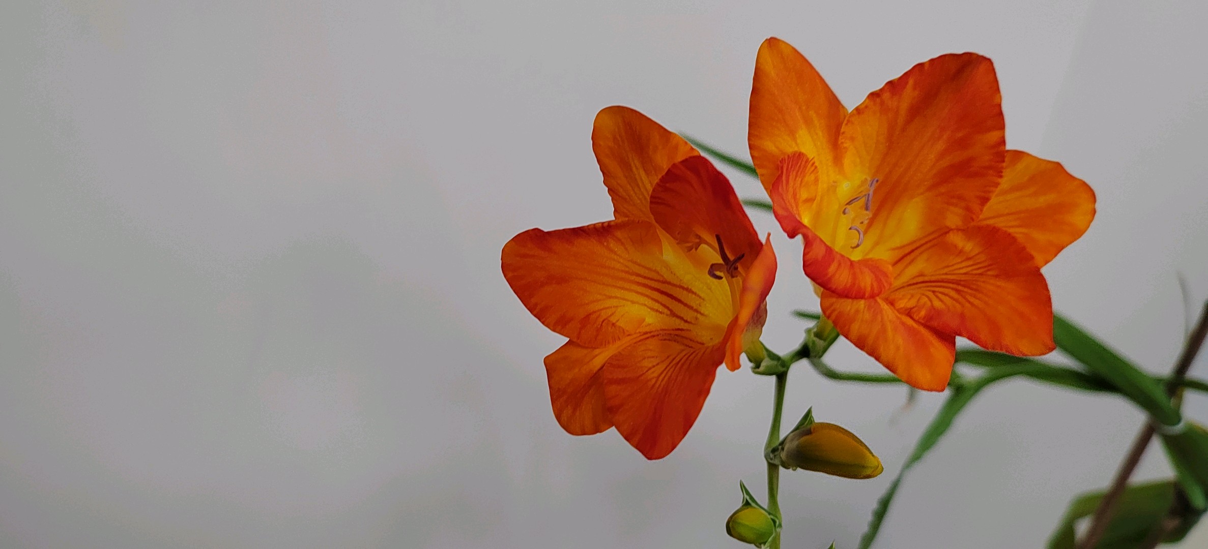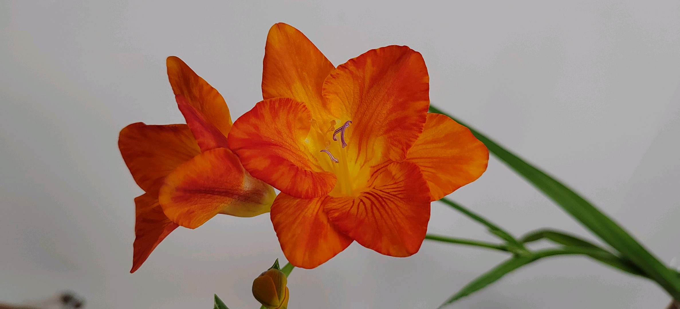 我家的香雪兰春节开花了。花香四溢,满屋芬芳。香雪兰是鸢尾科香雪兰属的多年生草本植物。球茎为狭卵形或卵圆形,外包薄膜质包被;叶剑形或条形,黄绿色;花被管喇叭形,淡黄色或黄绿色,具芳香;蒴果近卵圆形。花期4—5月,果期6—9月。其花色纯白似雪,香气如兰,因而得名。