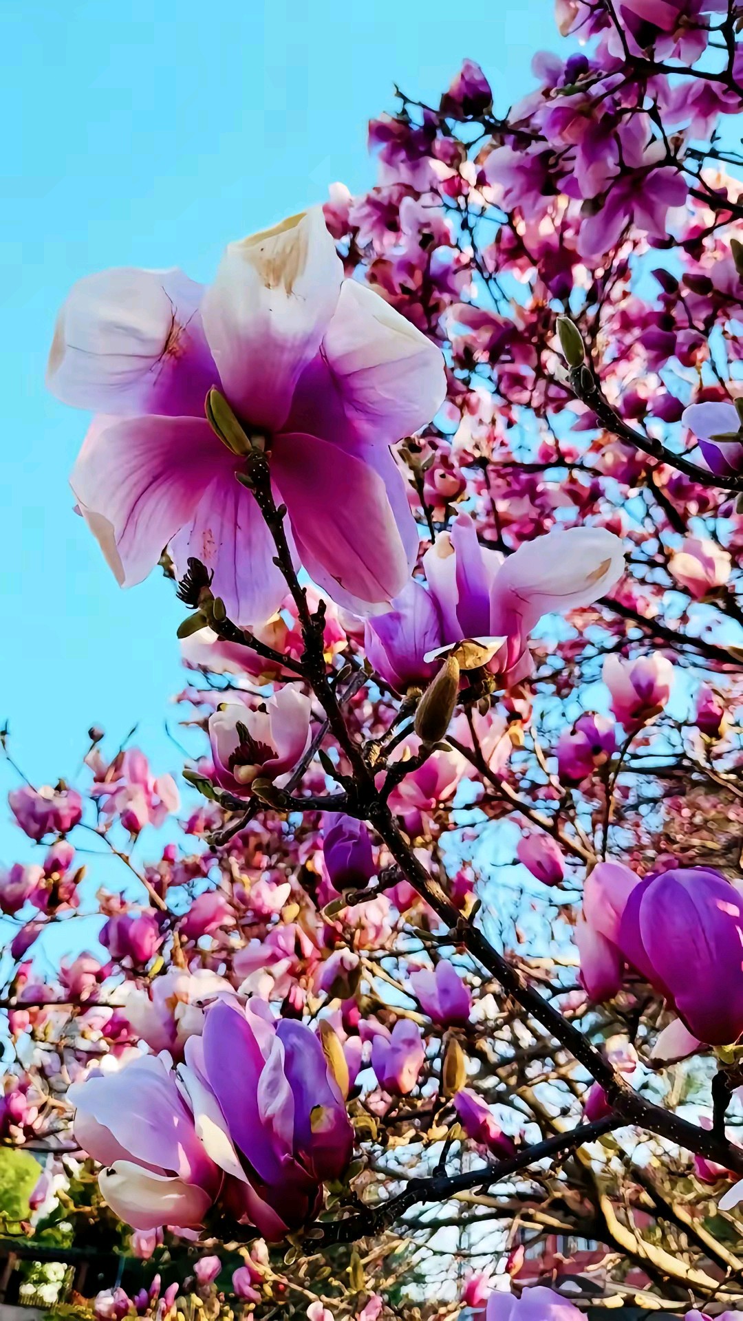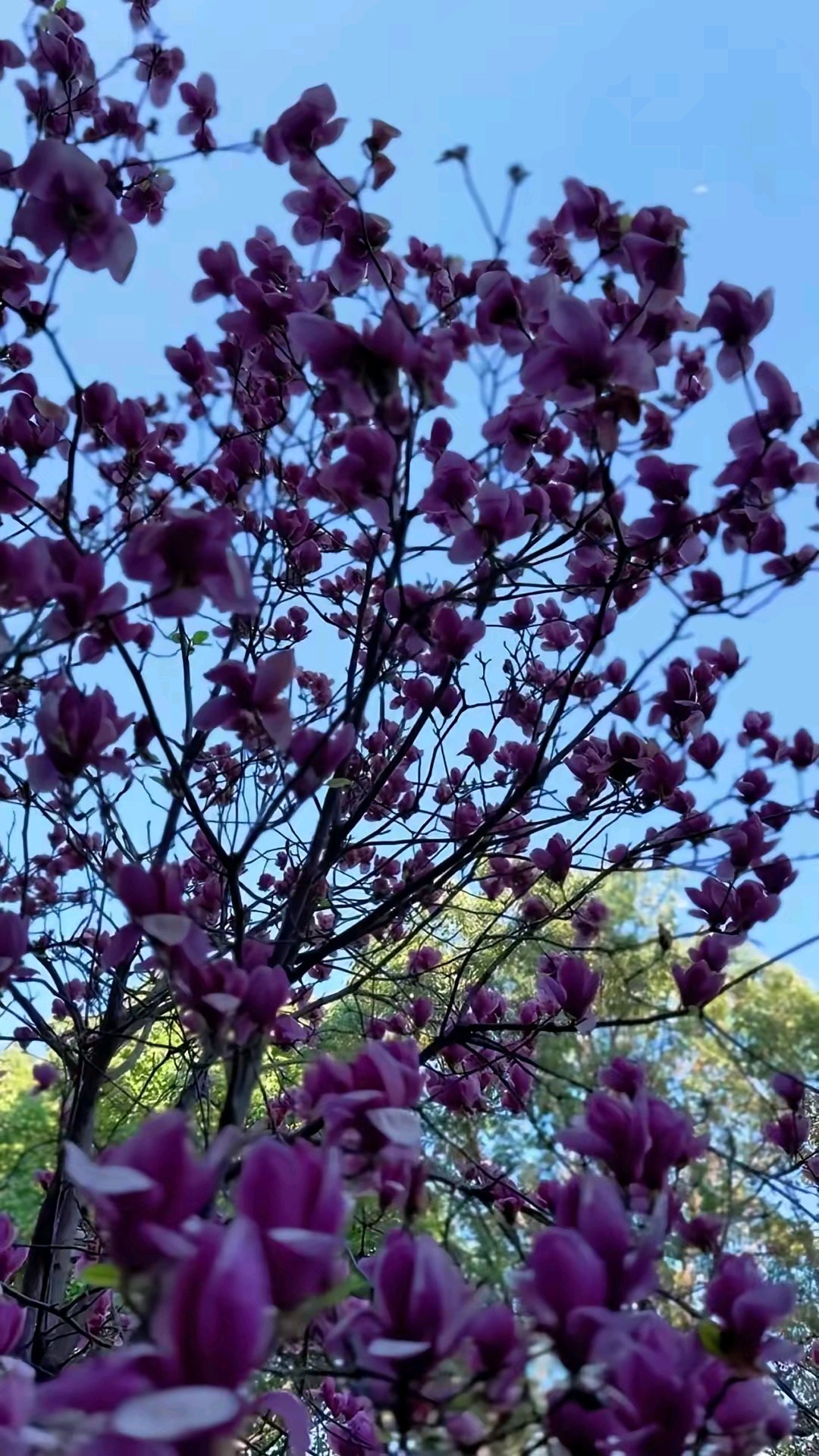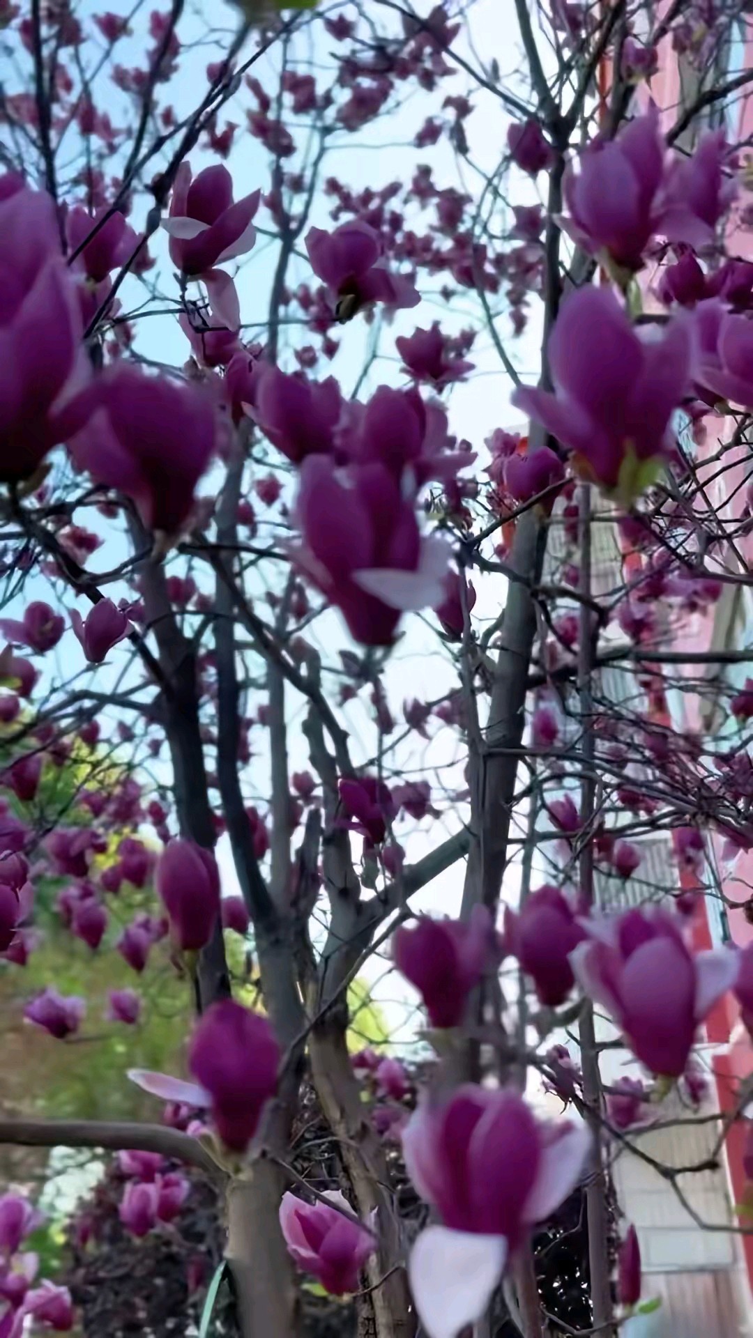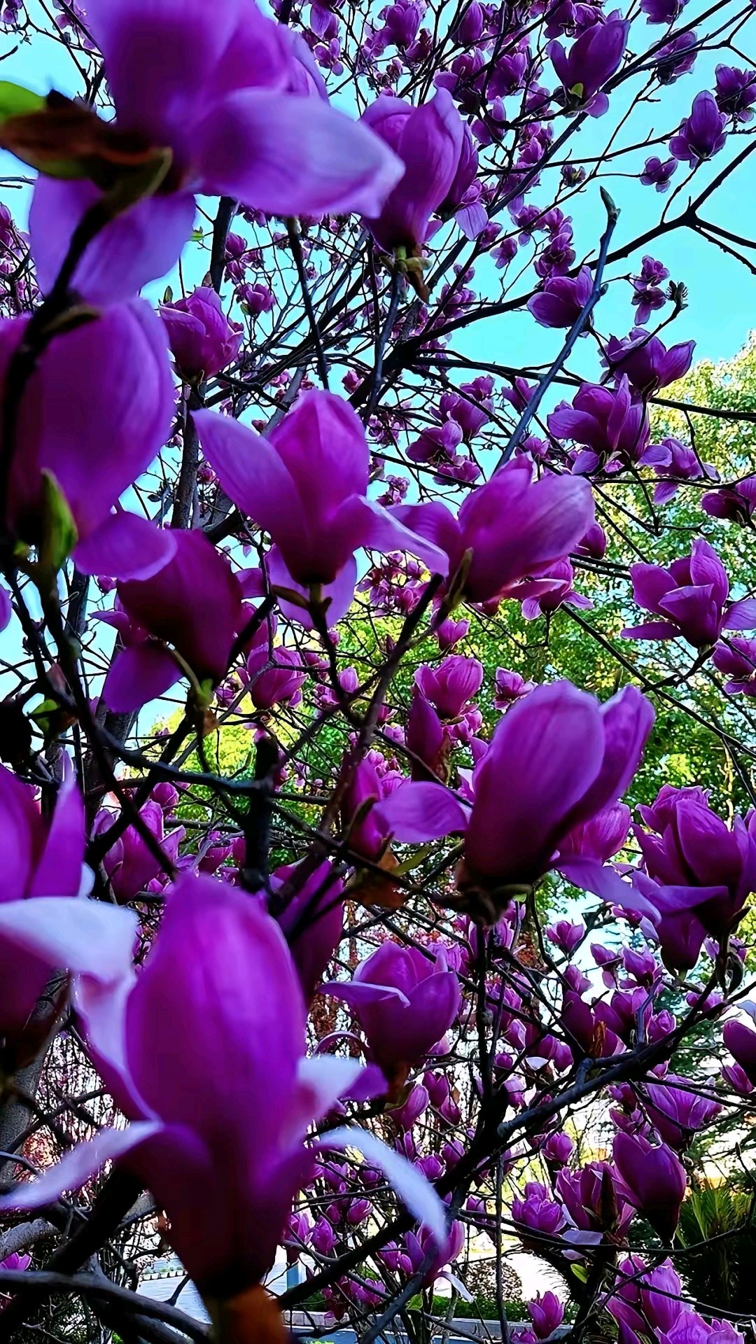 蓝天白云偶遇一棵盛开的紫玉兰树,满树的花朵如同粉色的精灵在枝头起舞,美得让人心醉。