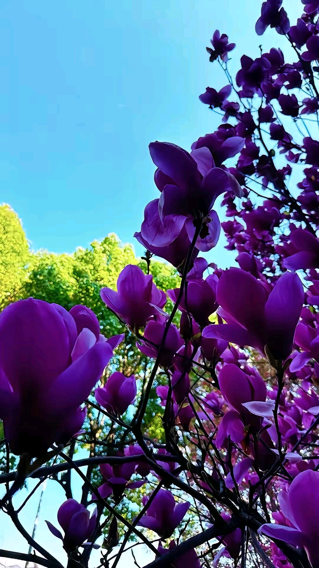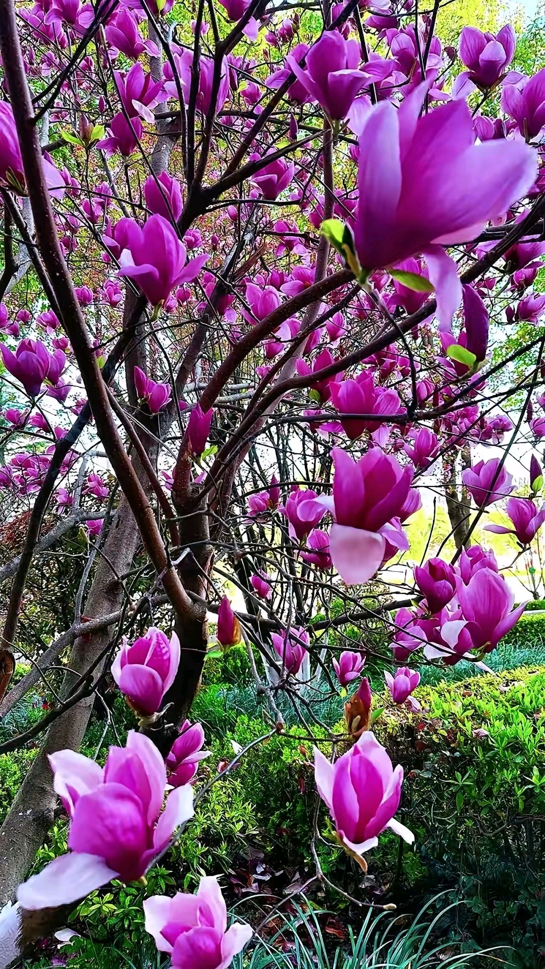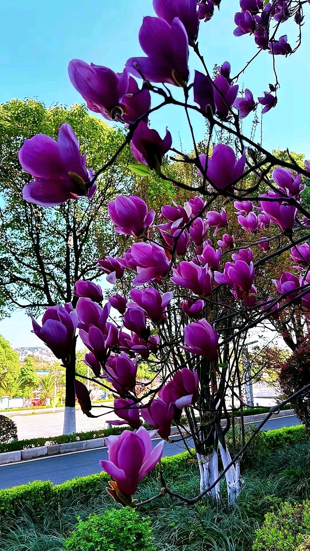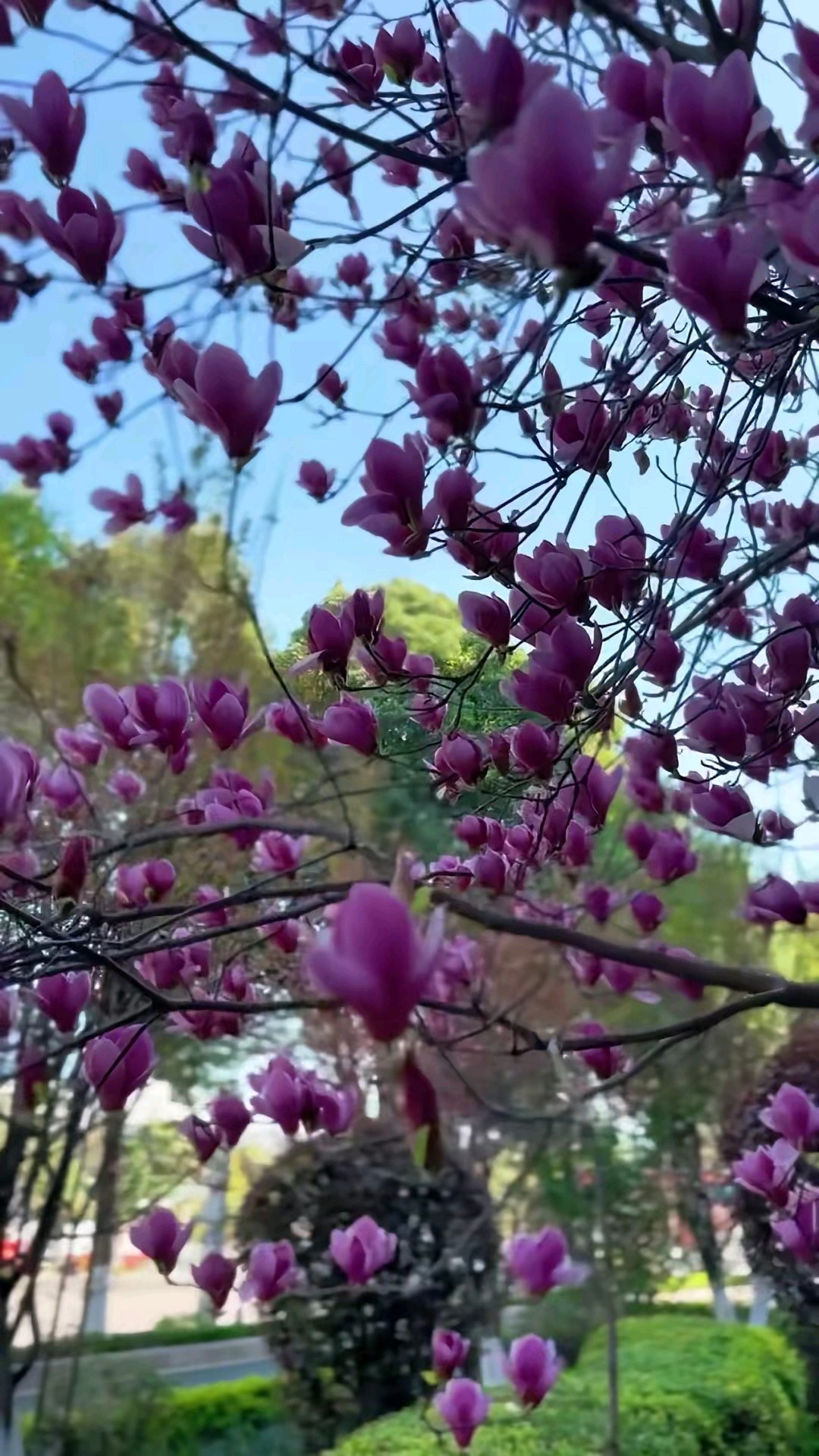蓝天白云偶遇一棵盛开的紫玉兰树,满树的花朵如同粉色的精灵在枝头起舞,美得让人心醉。