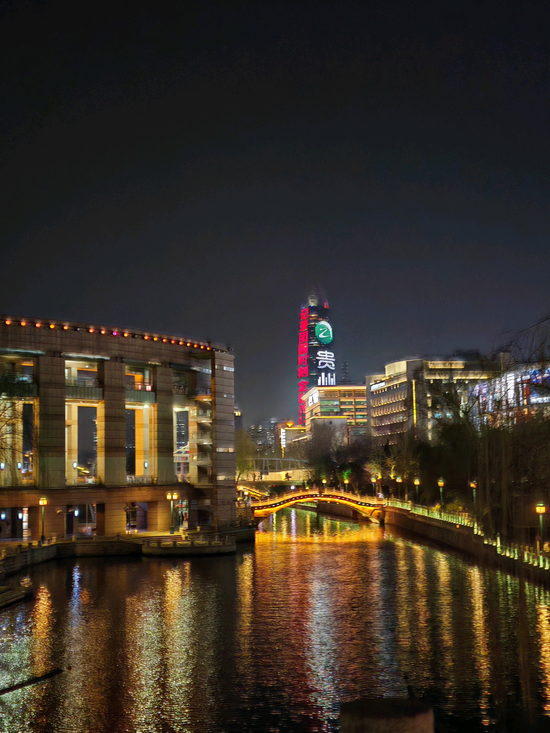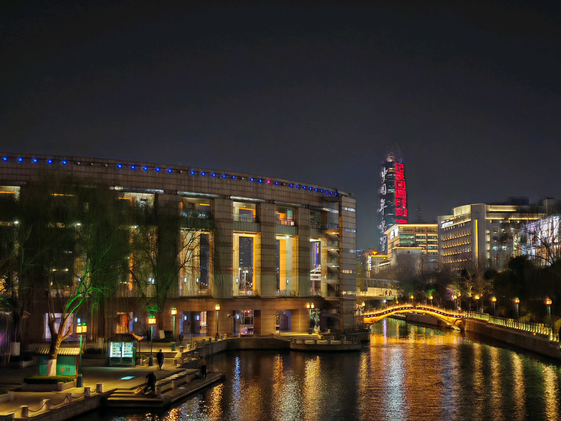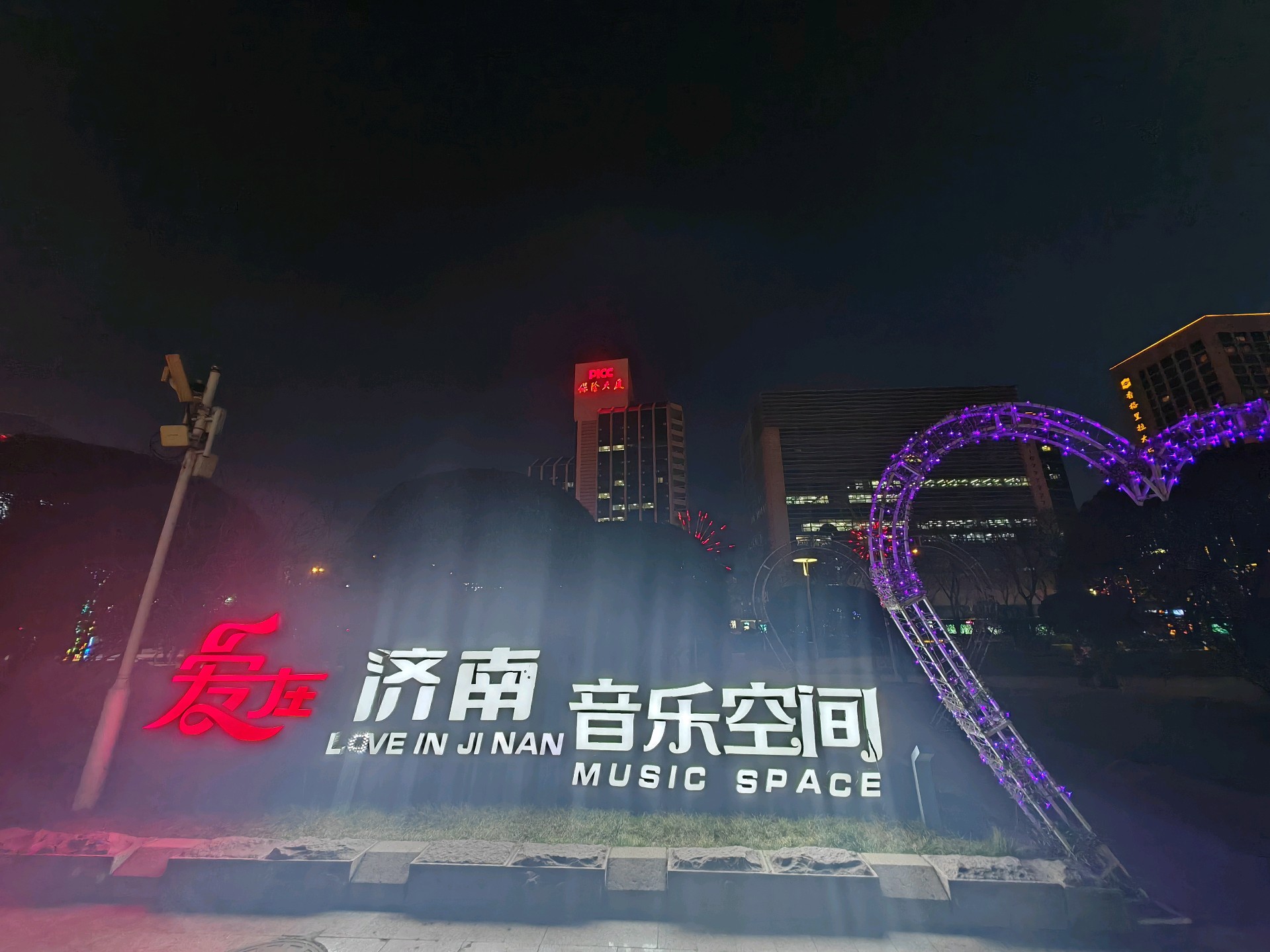 漫步在济南泉城广场,泉标耸立,灯光璀璨,河边高楼林立,宛如一幅美丽的画卷。河边的柳树在微风中轻轻摇曳,仿佛在诉说着济南城古老的故事。