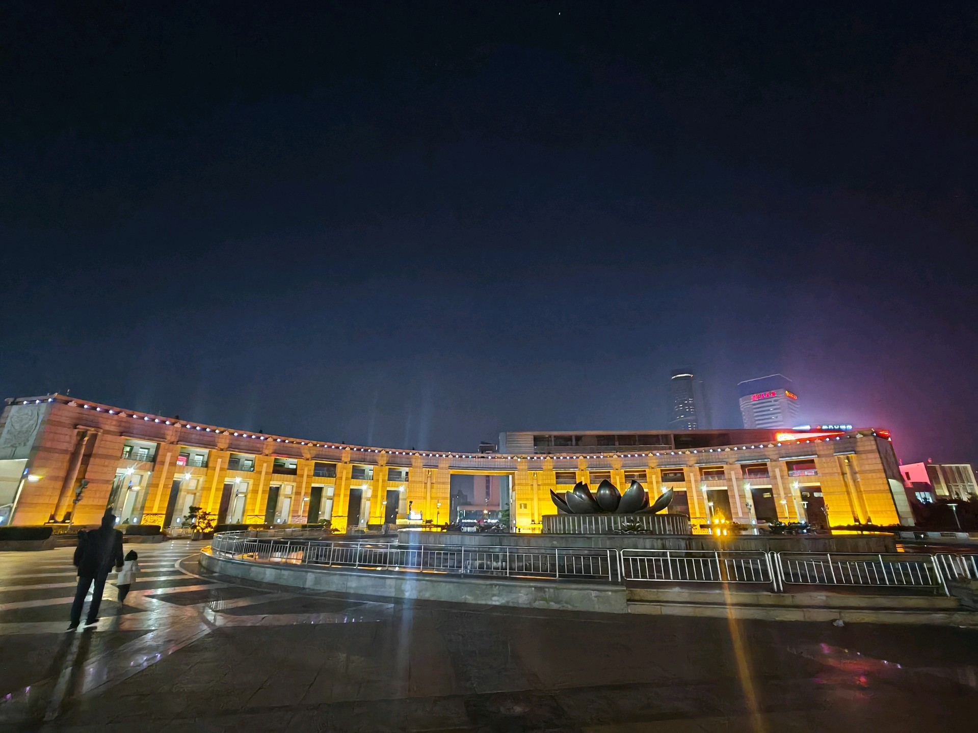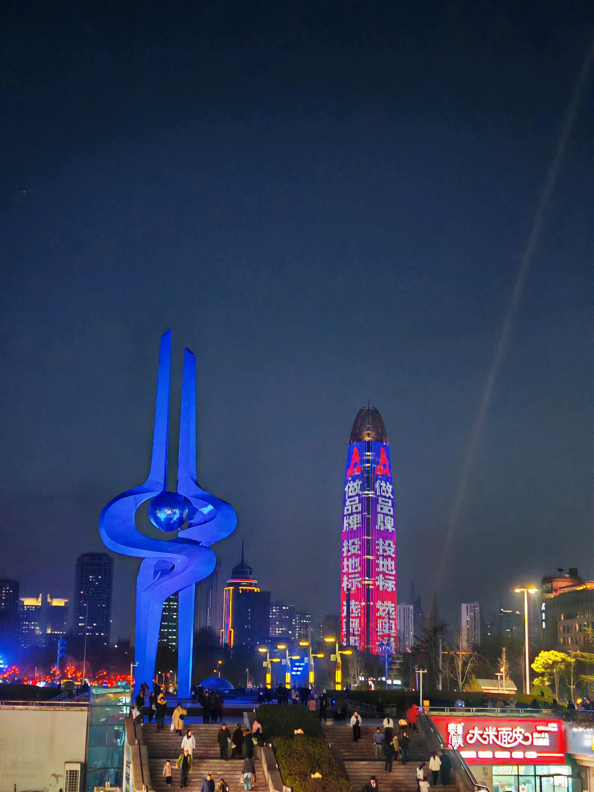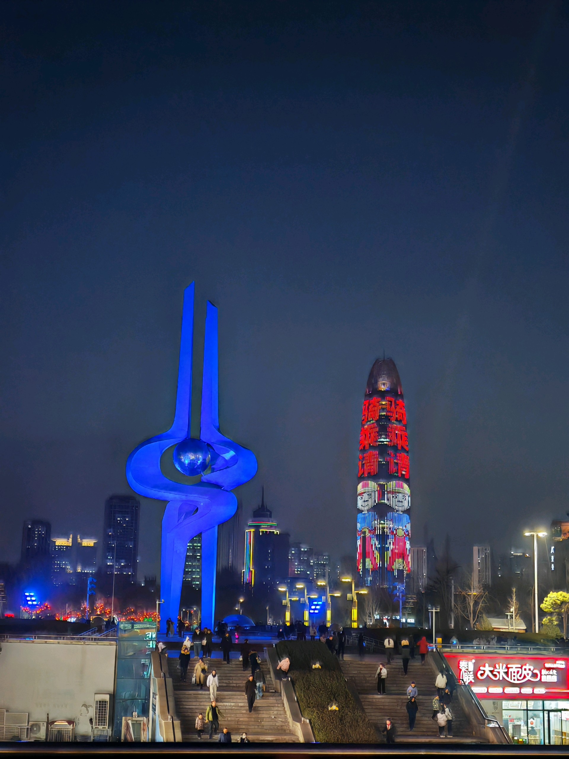 漫步在济南泉城广场,泉标耸立,灯光璀璨,河边高楼林立,宛如一幅美丽的画卷。河边的柳树在微风中轻轻摇曳,仿佛在诉说着济南城古老的故事。