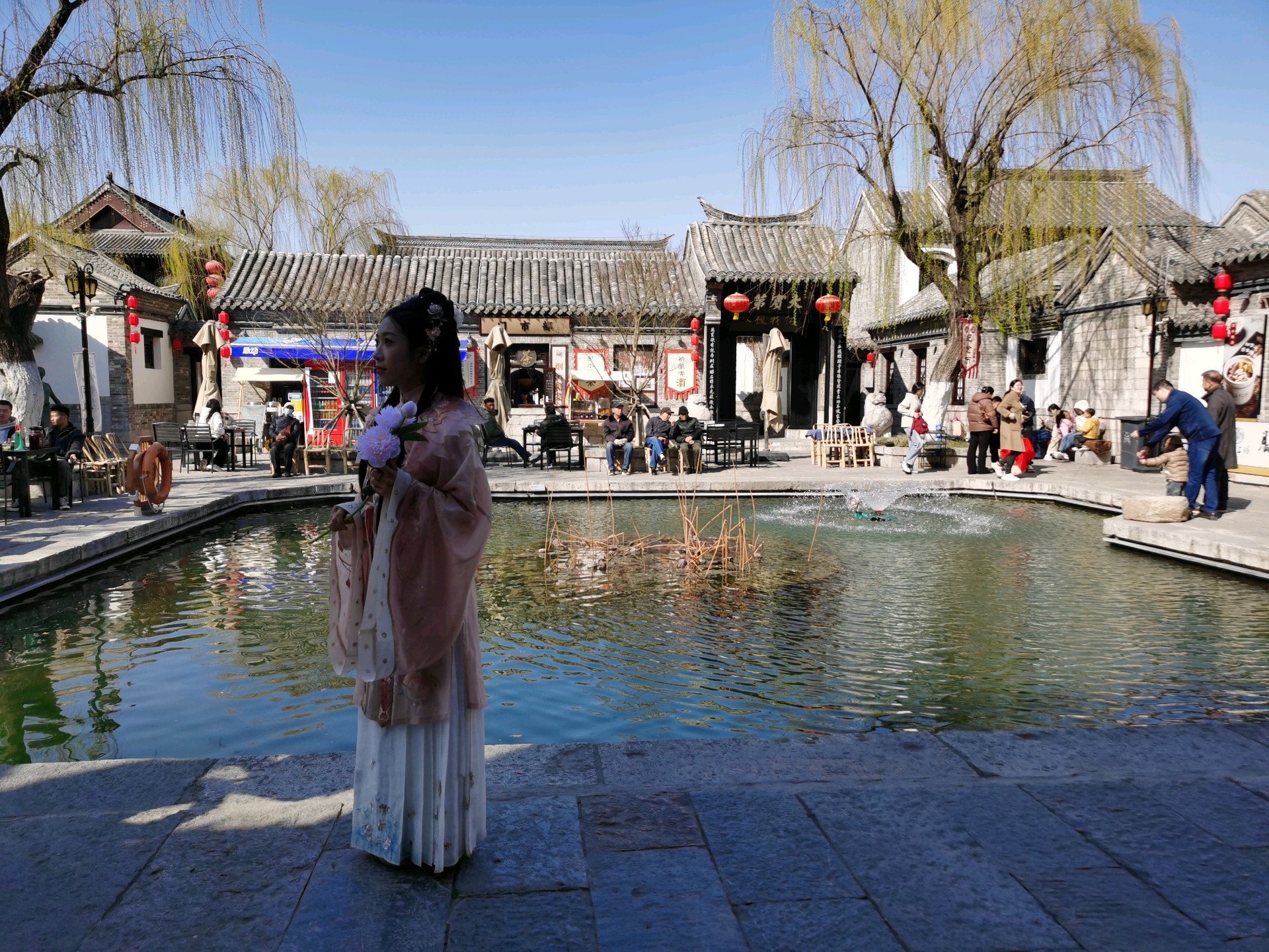 春日的百花洲,垂柳新绿染洲渚,欢声笑语满园林。