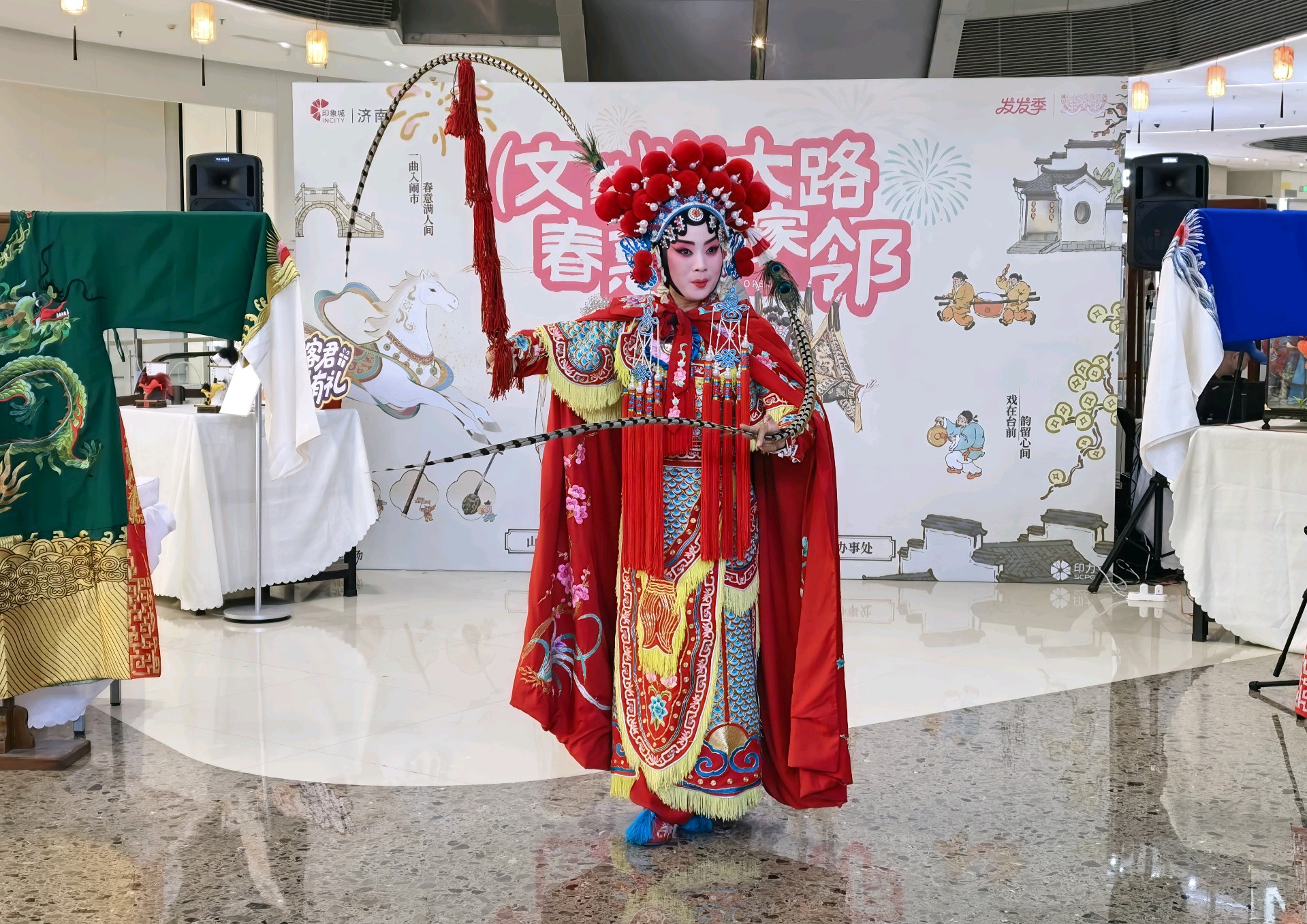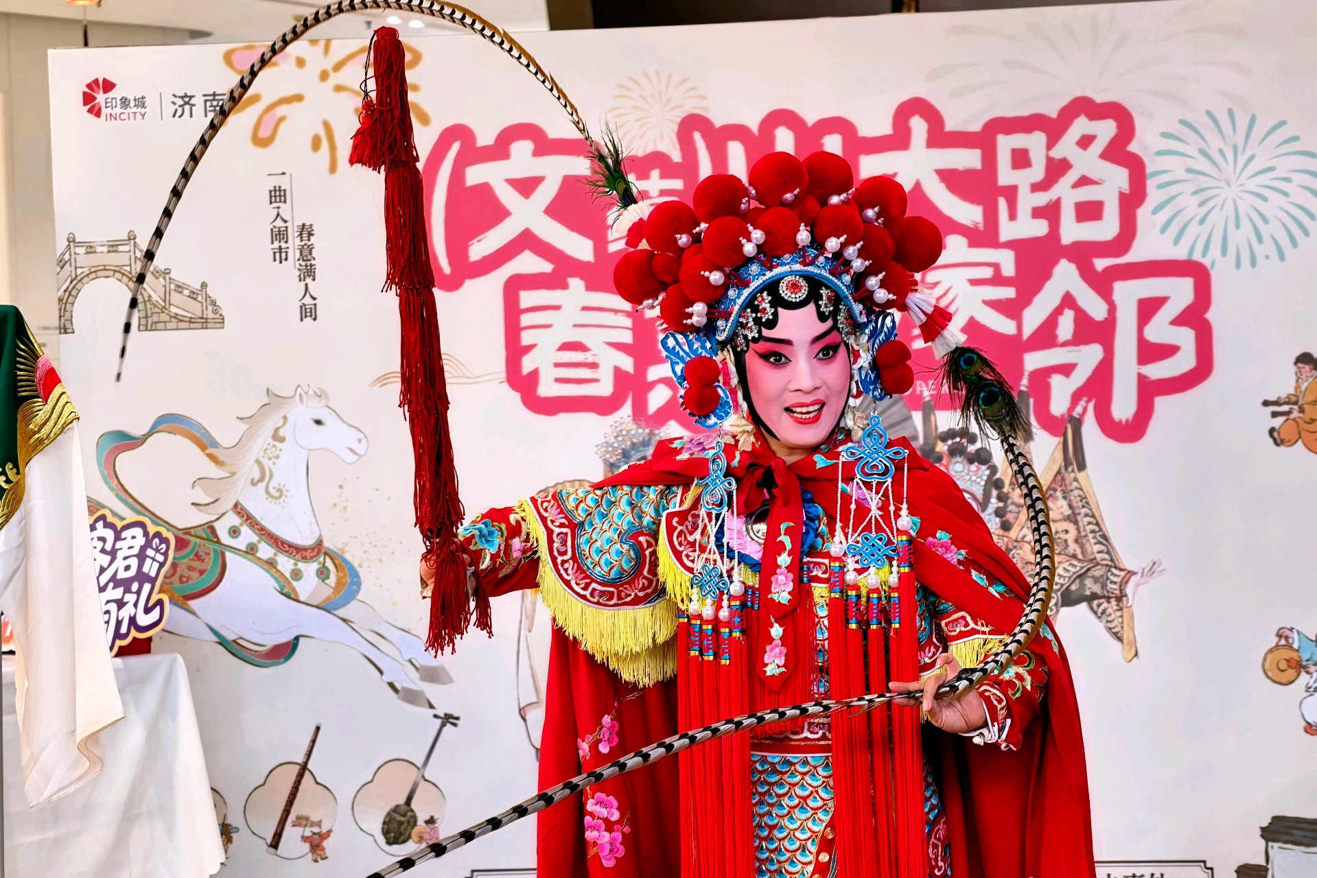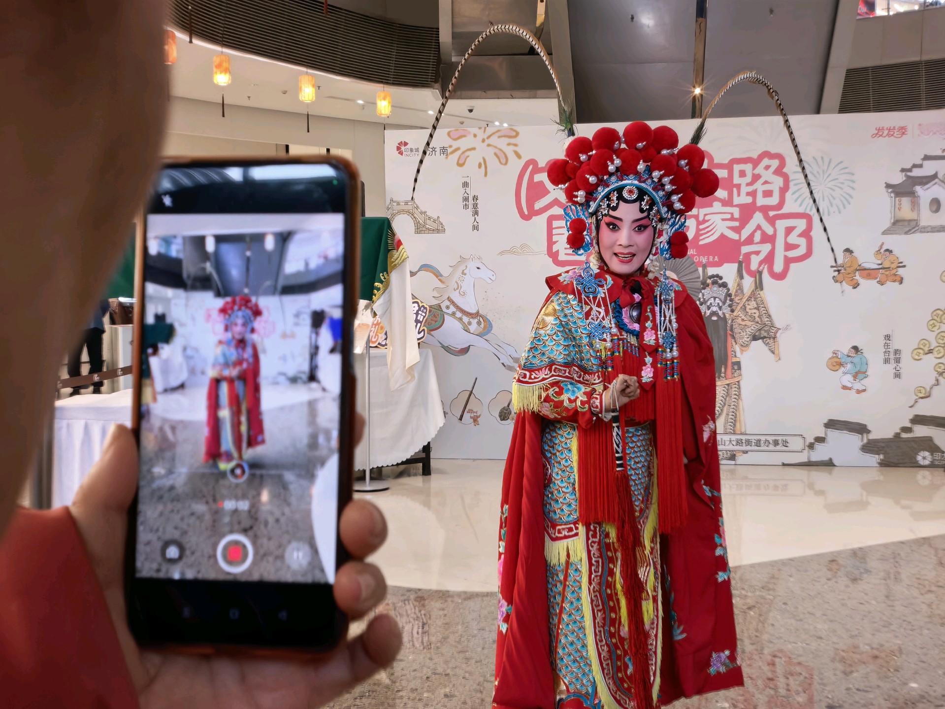 马年春节,济南印象城秒变临时梨园。山东省柳子剧团的演员们,从镜前粉墨梳妆的匠心,到台前红袍飒爽的惊艳;从与外卖骑手的奇妙同框,到孩童眼中的璀璨光芒。国家级非遗走出戏台,融入市井烟火,在“文蕴山大路”的热闹里,完成了一场最美的传承与相遇。