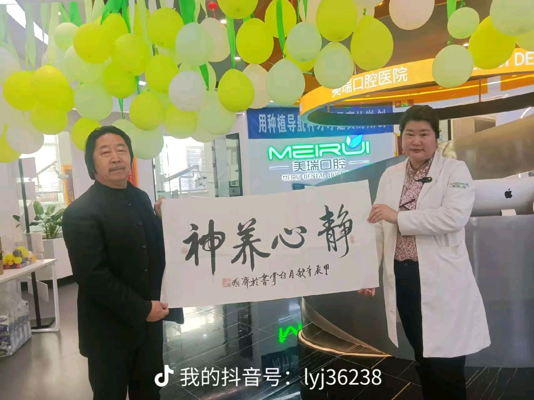 图为该院长王金玲女士和负责宣传的李元军先生代表院方接受其书法作品
