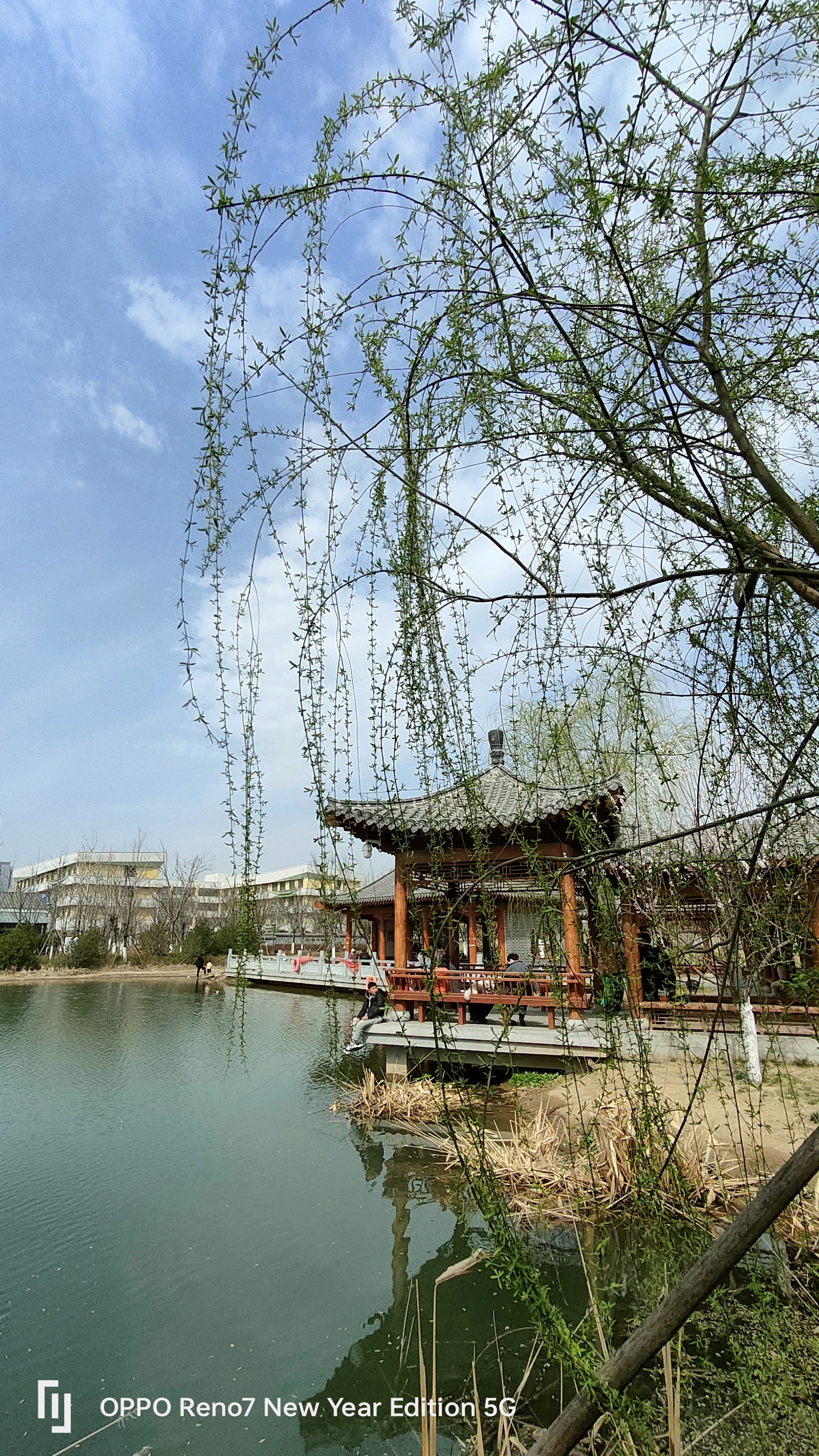晨光微露时,腊山的树梢尖儿已染上新绿,迎春花偷偷缀满枝头,点点金黄,是最先报到的春讯 。
