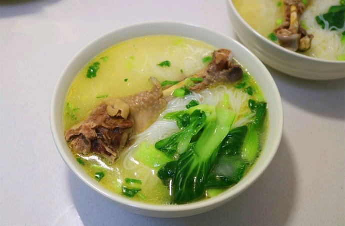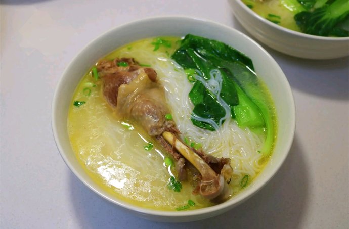 #壹粉食堂#冰箱里还有一只鸡,年前买的了。刚过完年,炒鸡也不想吃了,昨晚取出来放外面解冻,今早用厨房剪刀剪成大块,炖了一锅汤。又泡了一把米粉,早餐就吃鸡汤米线。热乎乎的,好鲜美。剩下的鸡肉还可以撕吧撕吧,炒辣椒或者做凉拌鸡丝都可以。原汁原味的鸡汤煮米线,味道特别鲜香。这样的米线很适合小孩吃,吃肉喝汤,营养和味道都在线。
