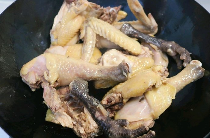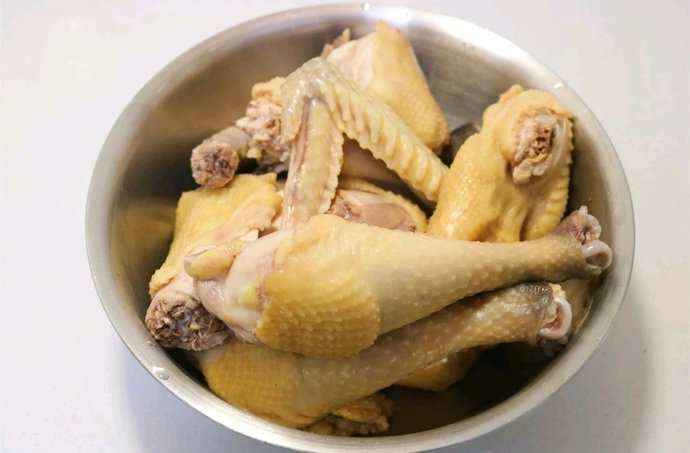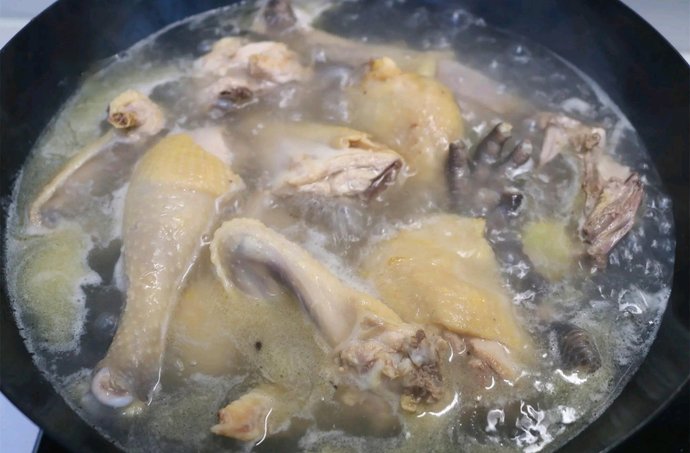 1,鸡肉剁大块,凉水下锅焯水。焯水后捞出来,再用温水洗干净。