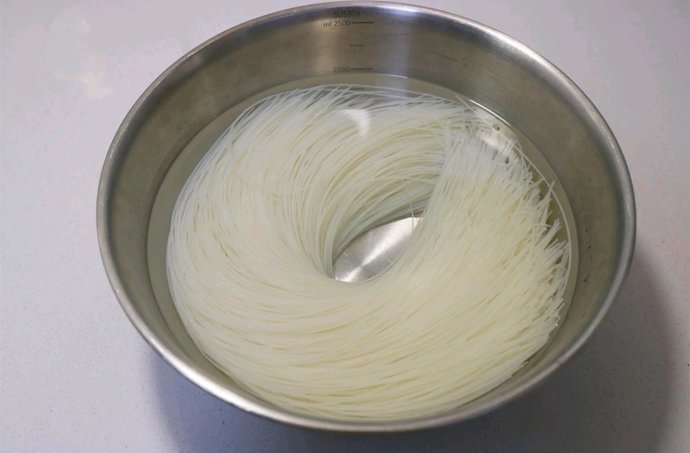 6、凉水泡了一晚的细米粉,这样泡过之后更好煮。