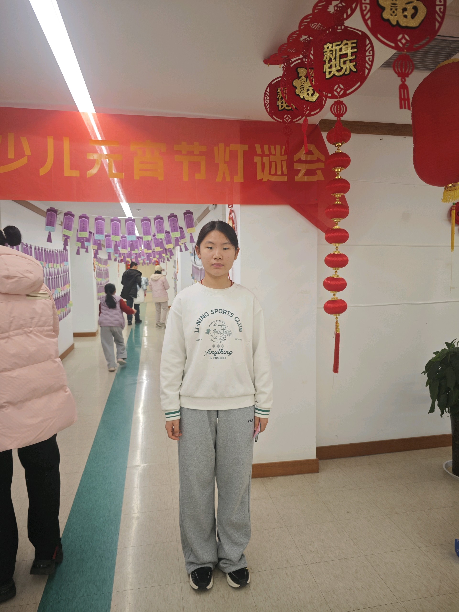 参加图书馆灯谜活动,协助整理猜谜语道具,发放奖品等