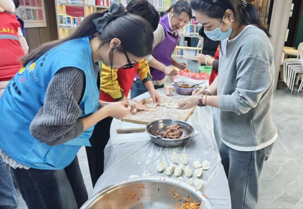 上午,支教队分为两组同步开展活动。团队成员刘书琪、刘娅伟、张宇杭、周培钊跟随东方社区居委会工作人员,深入社区开展暖冬“送温暖”活动。大家围坐在一起,揉面、擀皮、包饺子,欢声笑语中,一个个饱满的饺子很快摆满了托盘。随后,队员们将热气腾腾的饺子送到社区老人家中,与老人们唠家常、送祝福,让老人们在小年感受到浓浓的暖意与关怀。