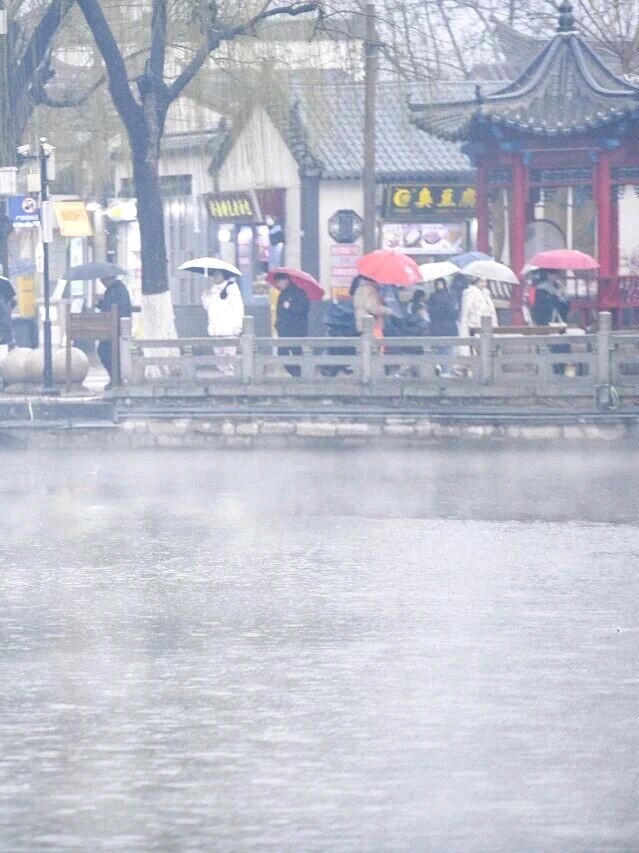 今天迎来大范围春雨洗礼,整座城市笼罩在一片朦胧水色之中。从清晨开始,淅淅沥沥的春雨遍洒泉城。