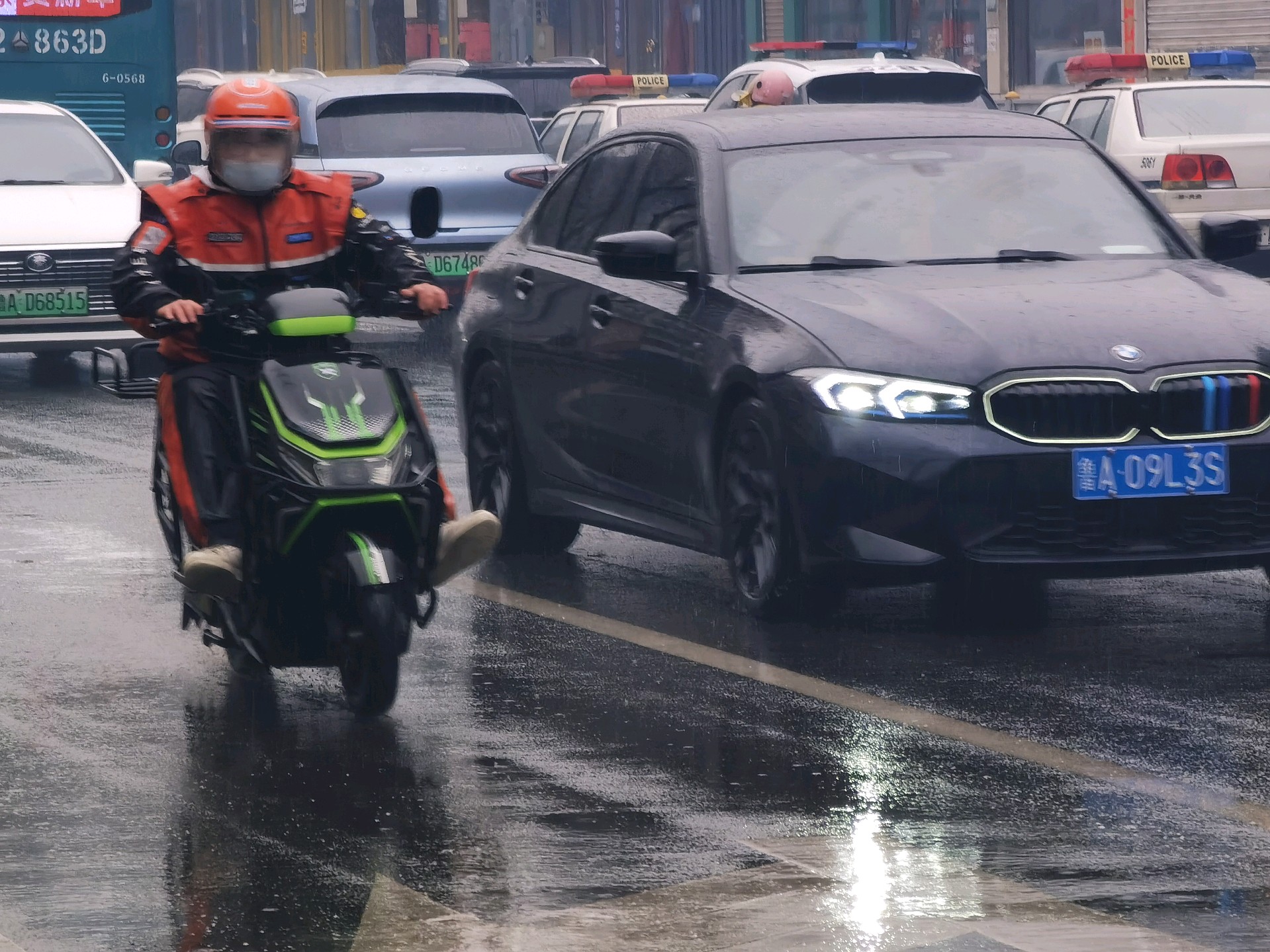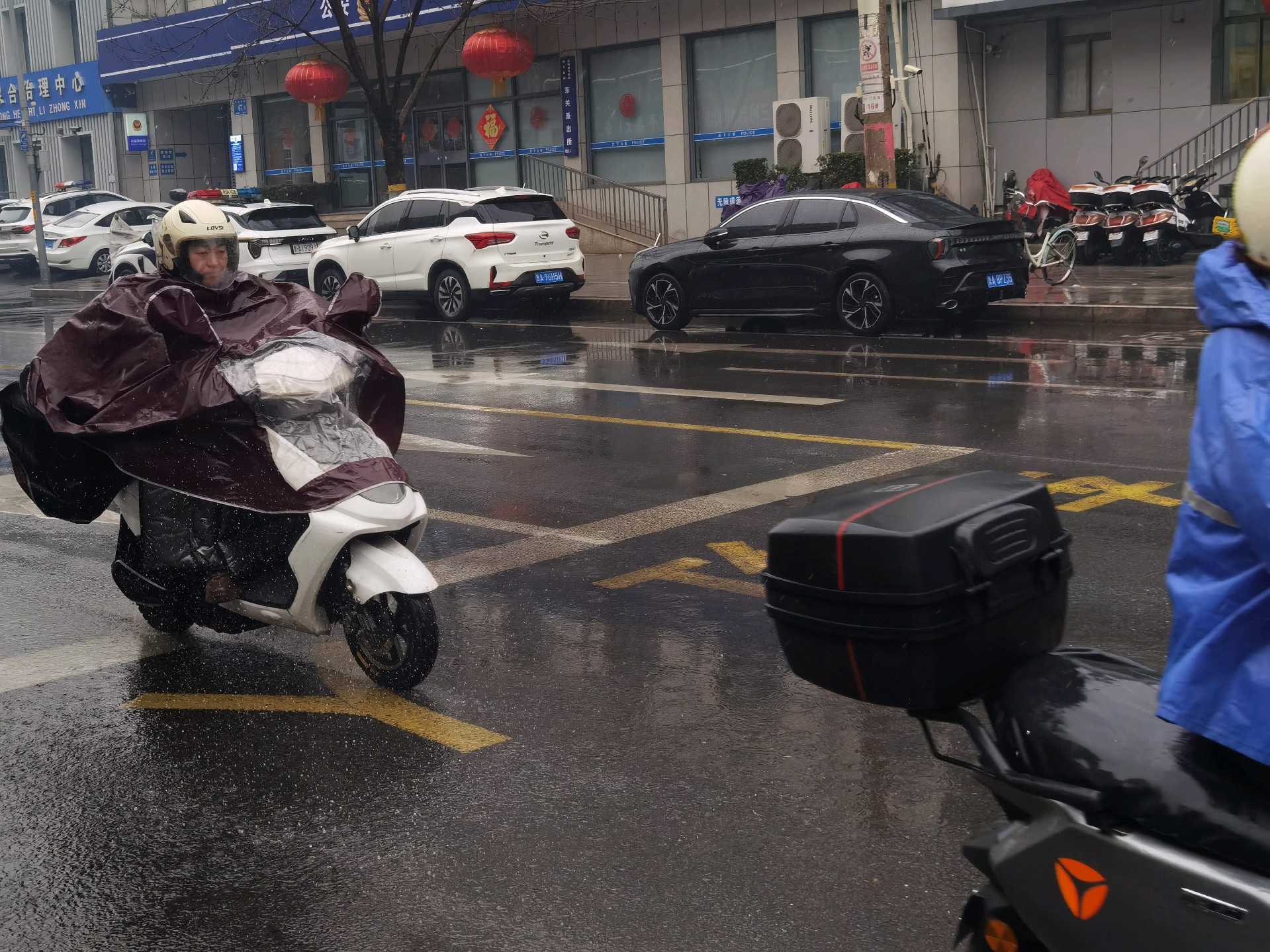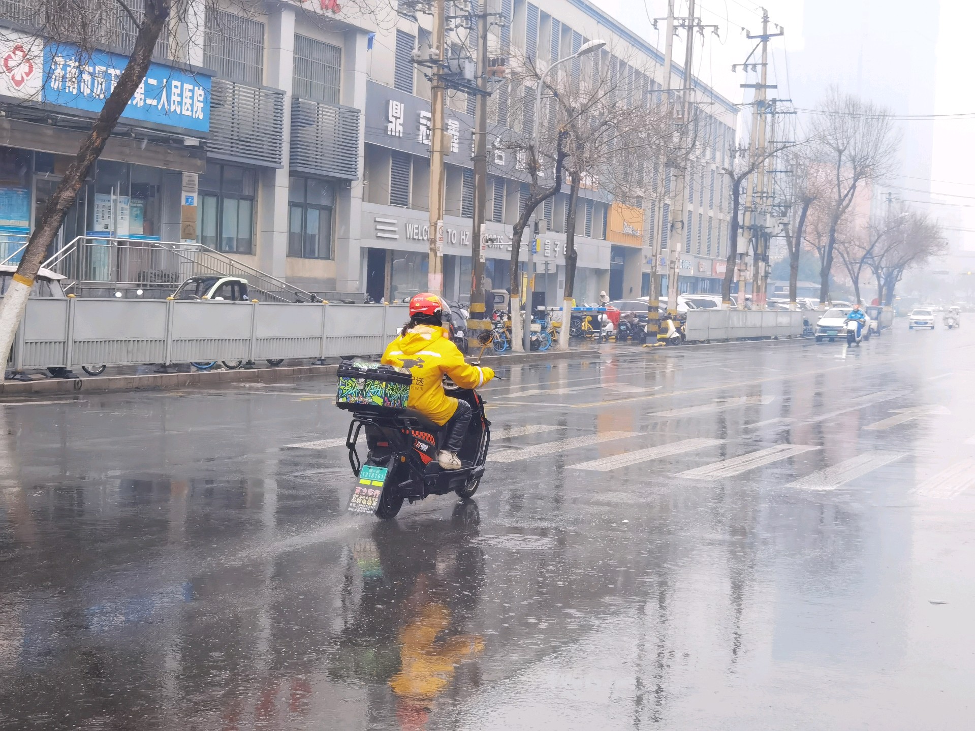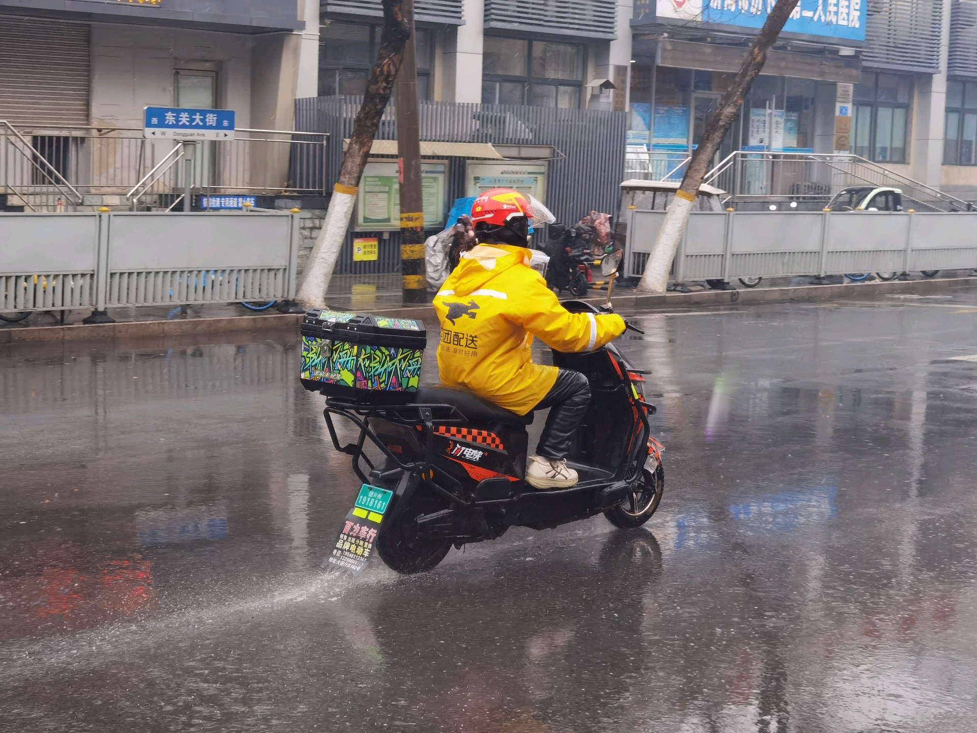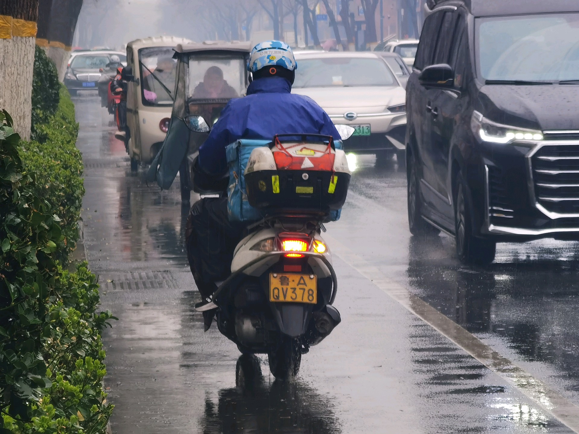 雨中穿行,电动车上的外卖小哥,忙碌的身影,为生活增添一份温暖。