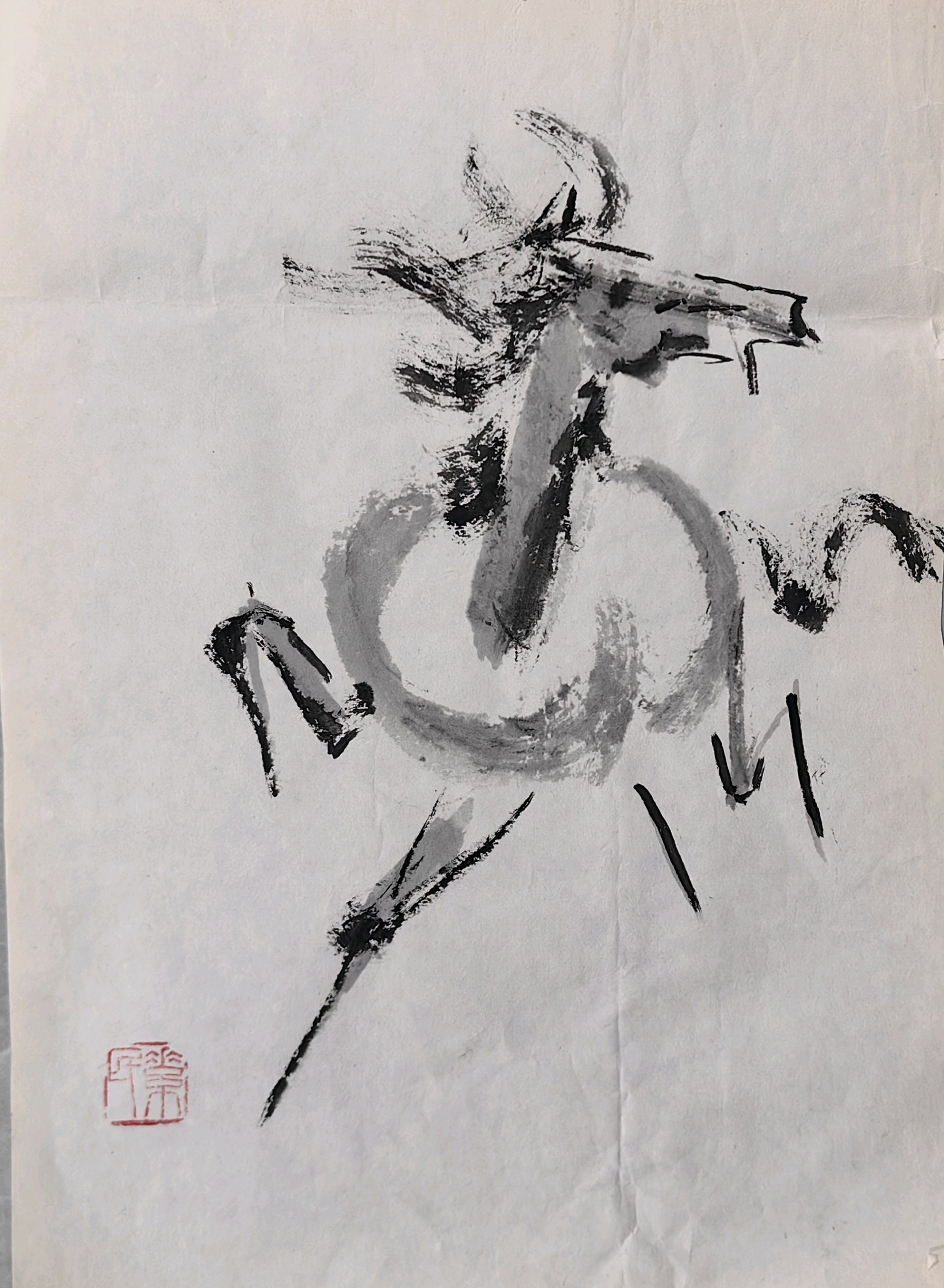 水墨丹青,马到成功。一匹奔驰的马跃然纸上,墨色浓淡相间,尽显灵动与自由。红色的印章为画面增添了一抹亮色,仿佛在诉说着画家的故事。