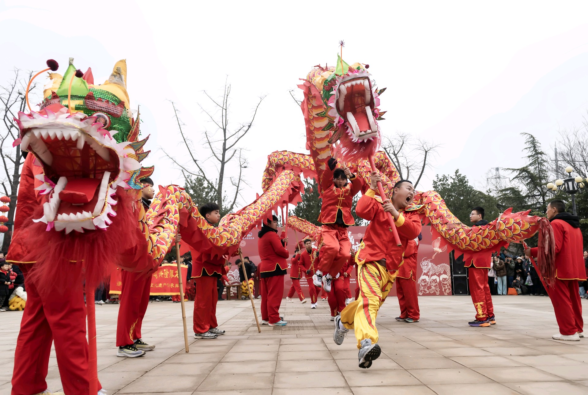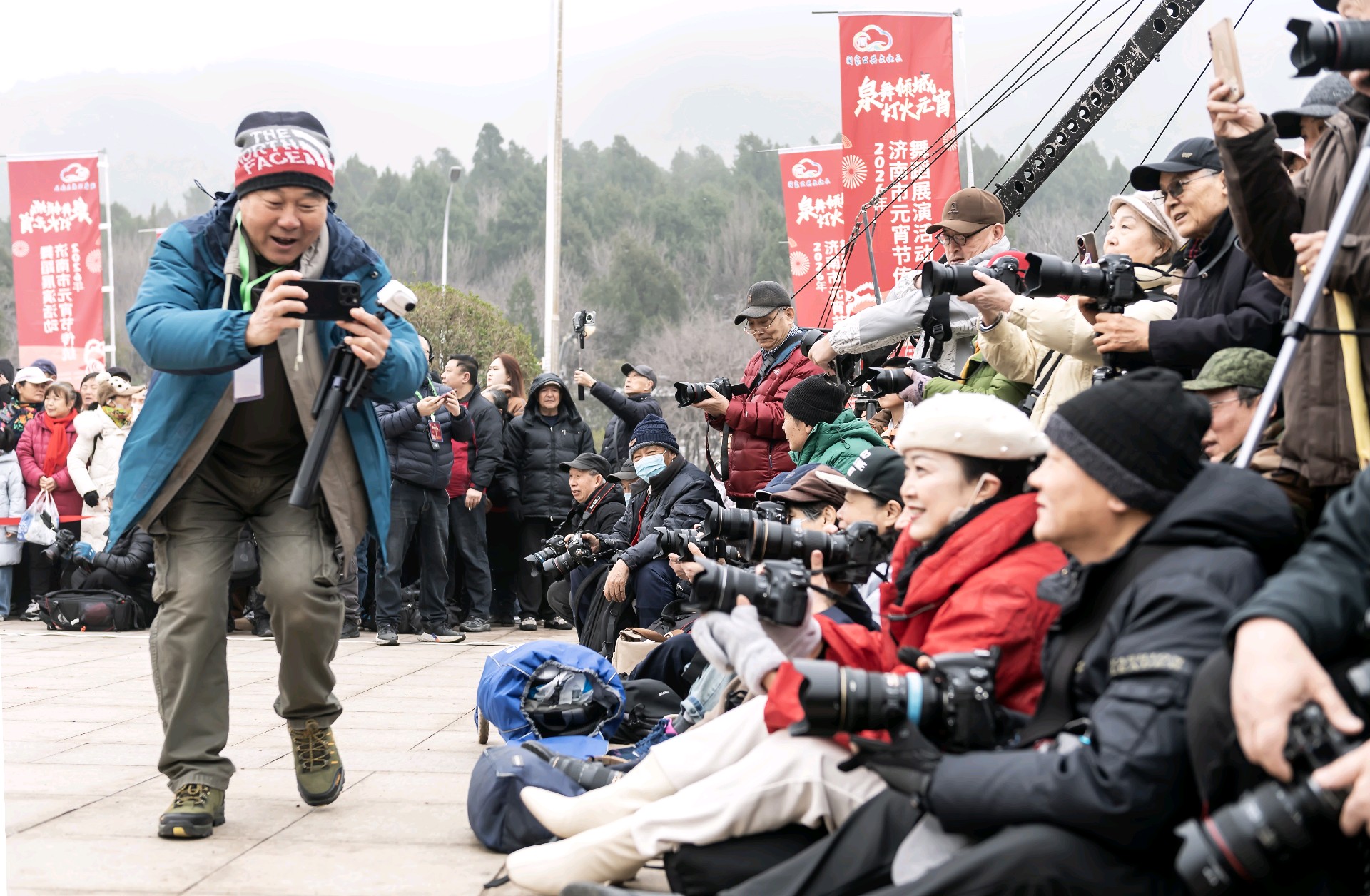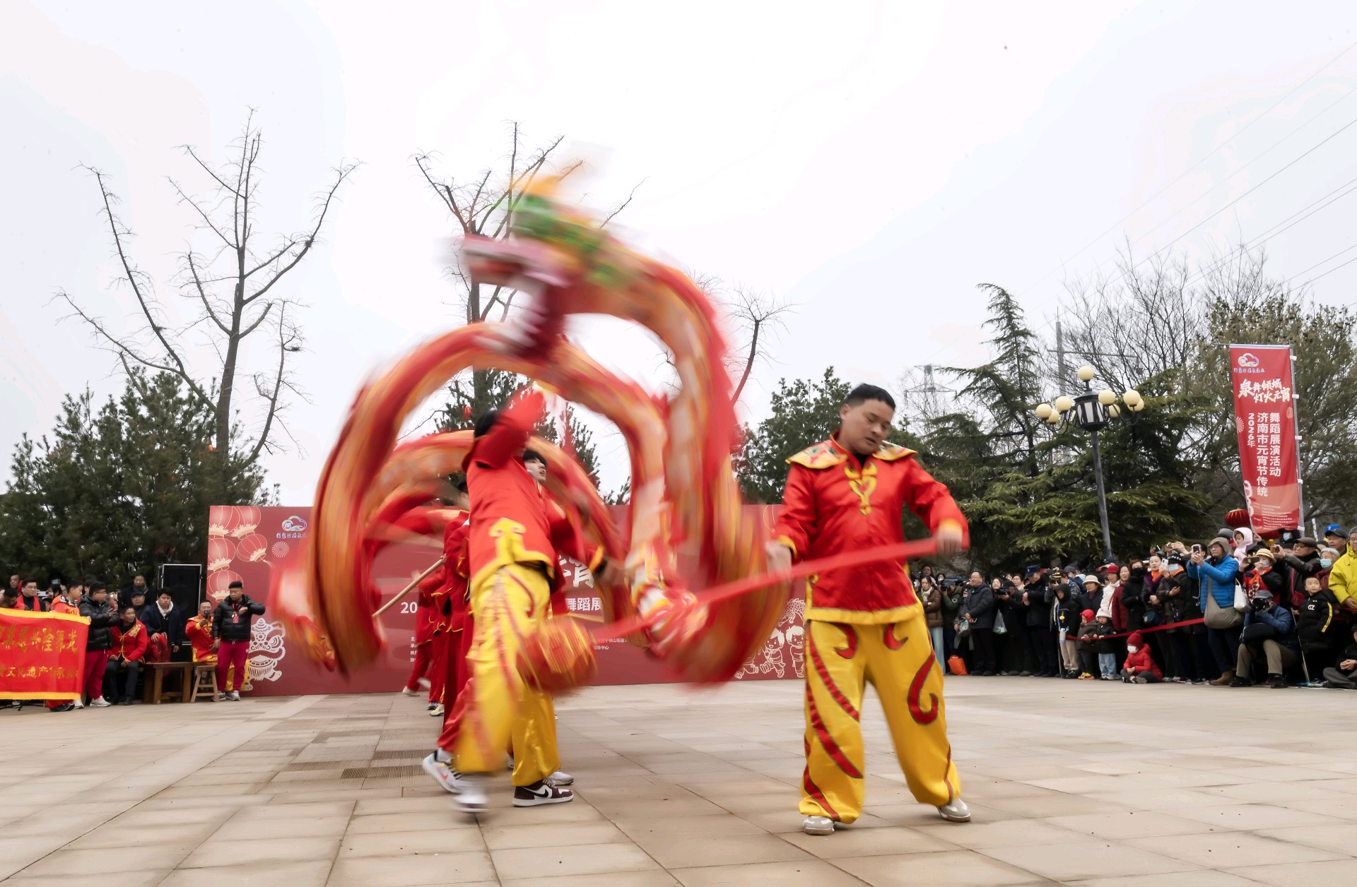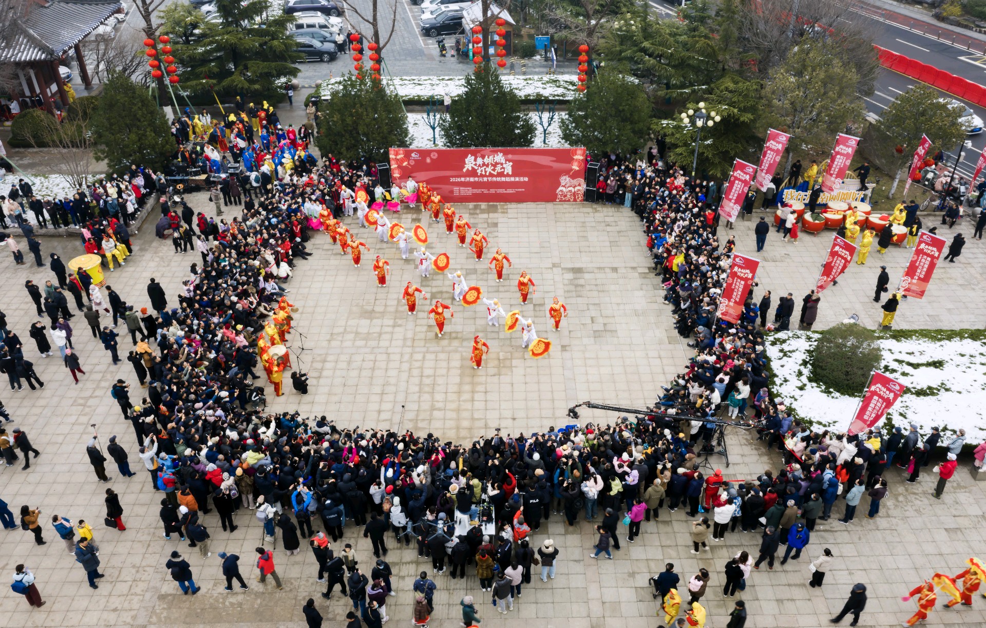 2026.3.3 正月十五上午九点半,泉城济南的千佛山风景区门前,锣鼓喧天,人头攒动,由济南市文旅局、历下区政府以及济南市文化馆、非遗保护中心共同主办的"泉舞倾城,灯火元宵"非遗舞蹈展演活动隆重开演。由兴隆舞龙队、济阳和商河的鼓子秧歌以及西张绣球灯等节目轮翻上演,精彩纷呈,现场吸引了众多的市民前来观看,共同喜庆元宵佳节,济南市的新闻媒体和济南市摄影家协会的众多摄影师进行了现场拍摄报导。