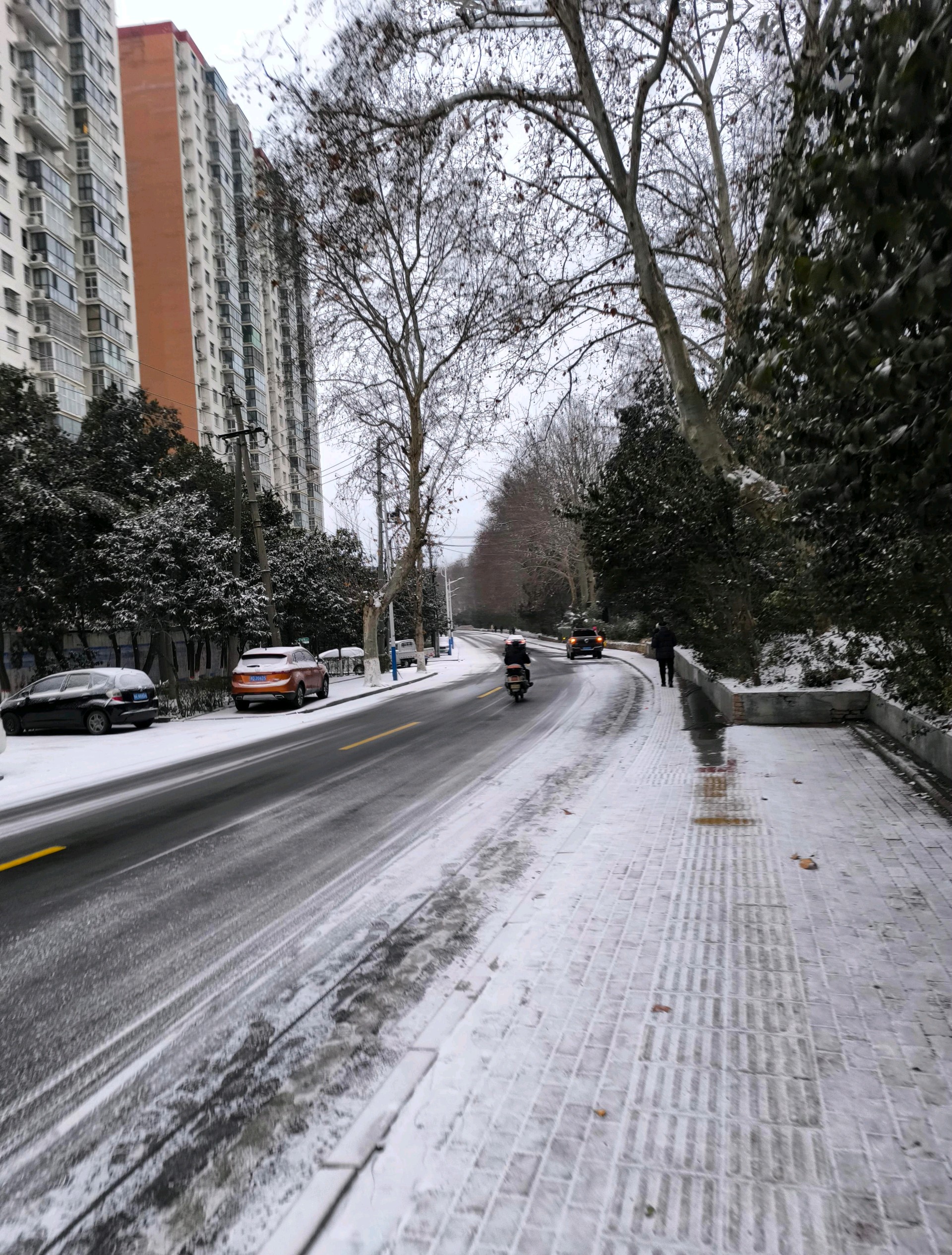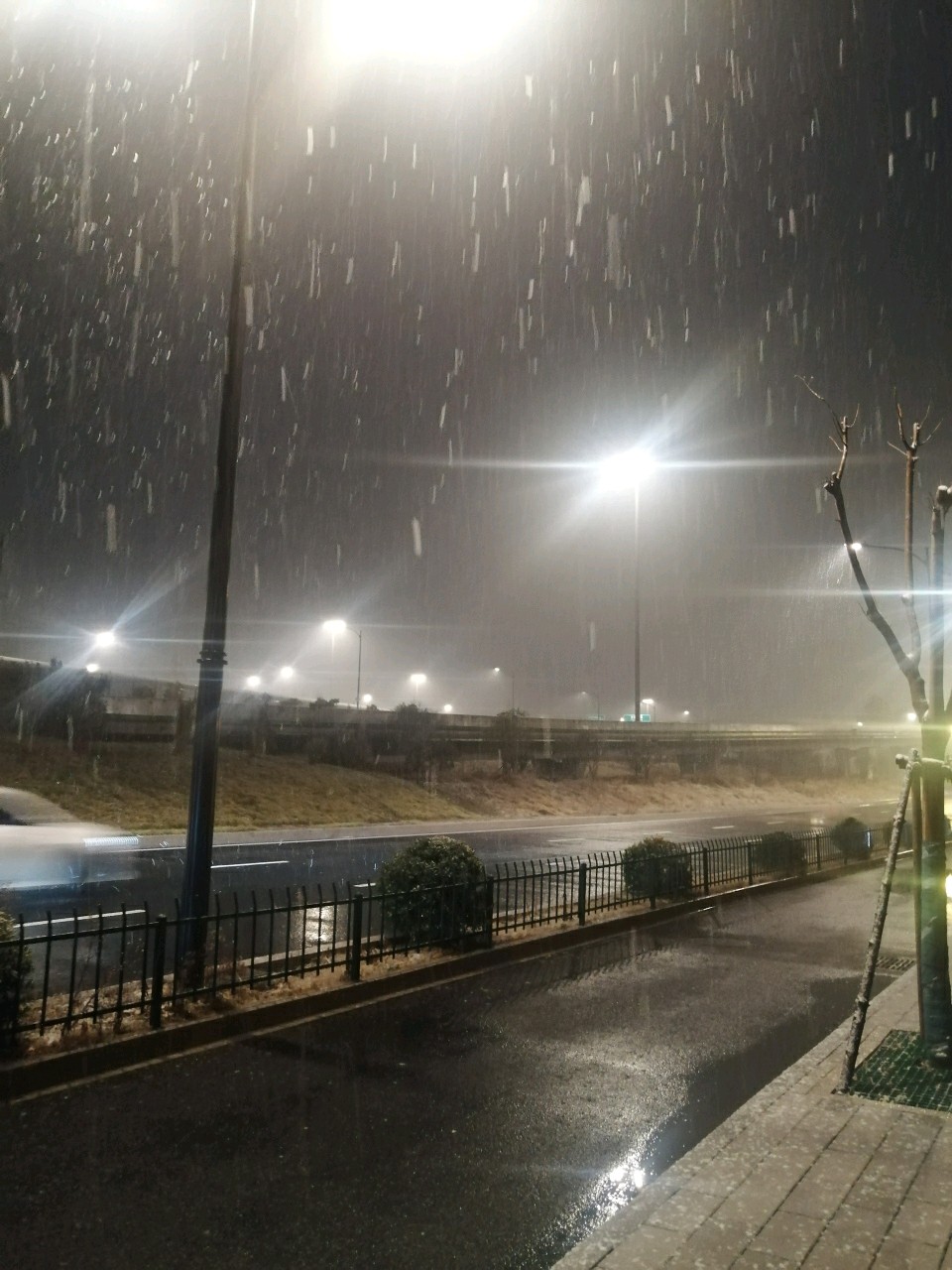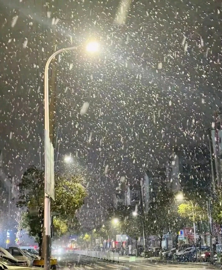 雪夜静谧,路灯照亮了纷飞的雪花,仿佛在为这个冬夜增添一份诗意。