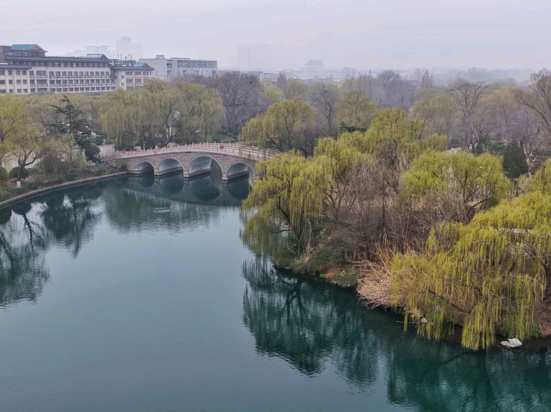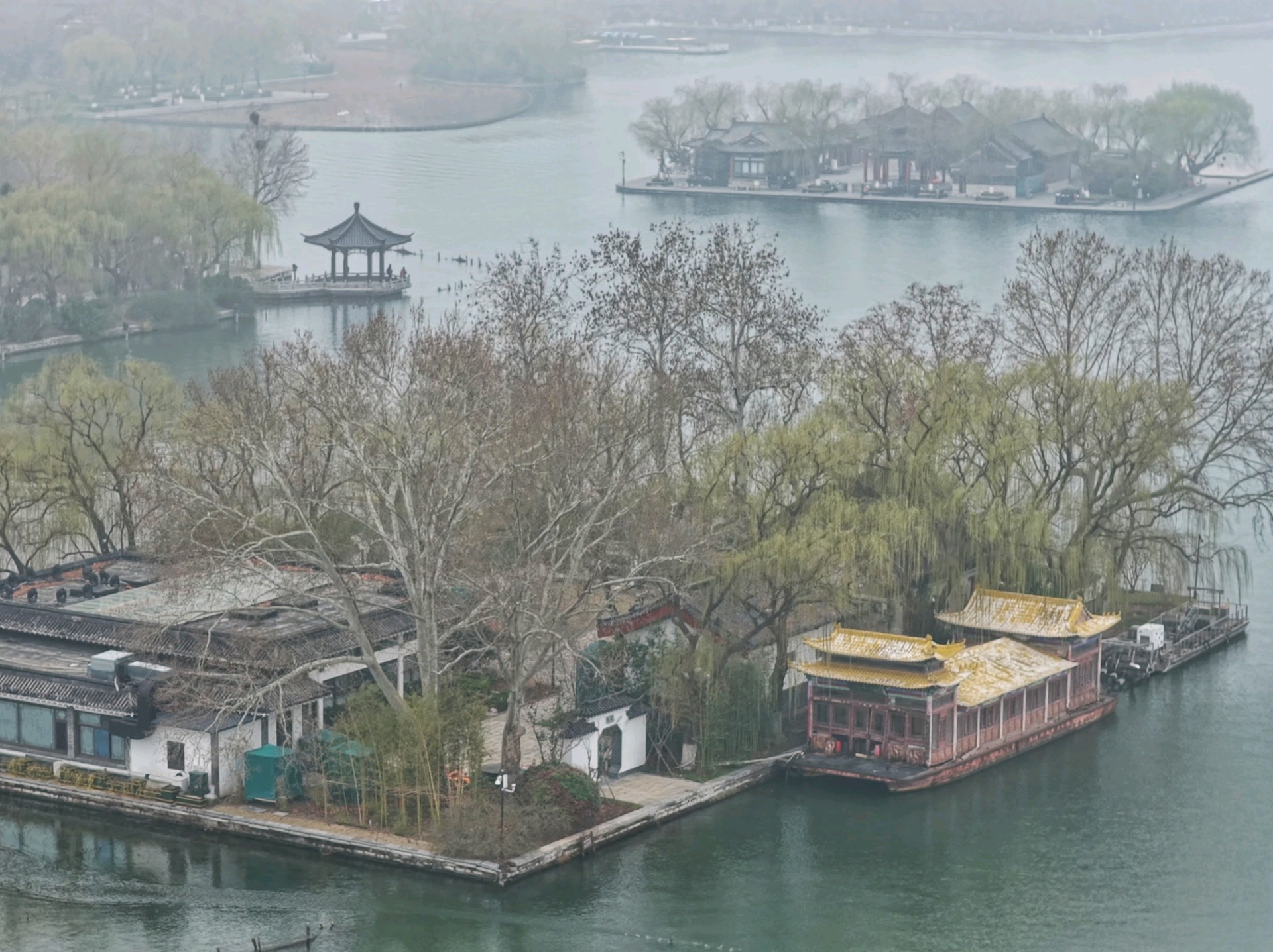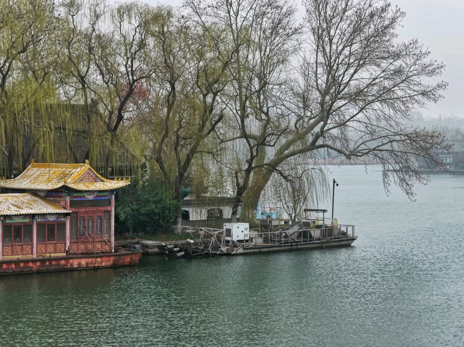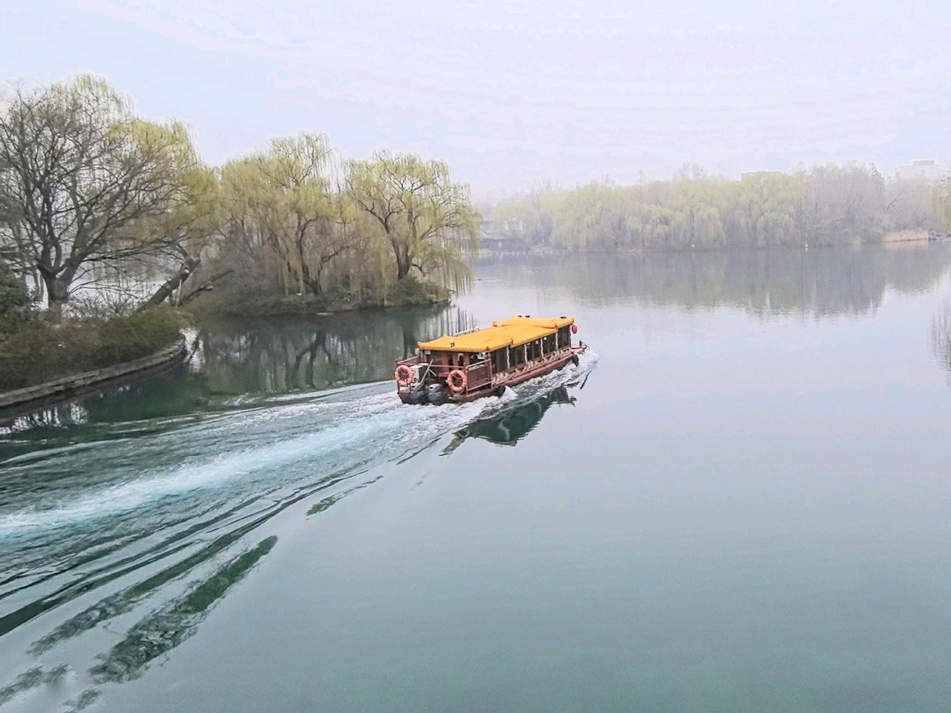 薄雾轻笼大明湖,画舫破开粼粼水色,超然楼的飞檐在水汽里若隐若现。垂柳蘸着春水轻摇,青瓦白墙晕染成一幅淡墨画卷,舟行碧波,人在画中,把泉城的温柔与诗意,都揉进了这一湖春水。