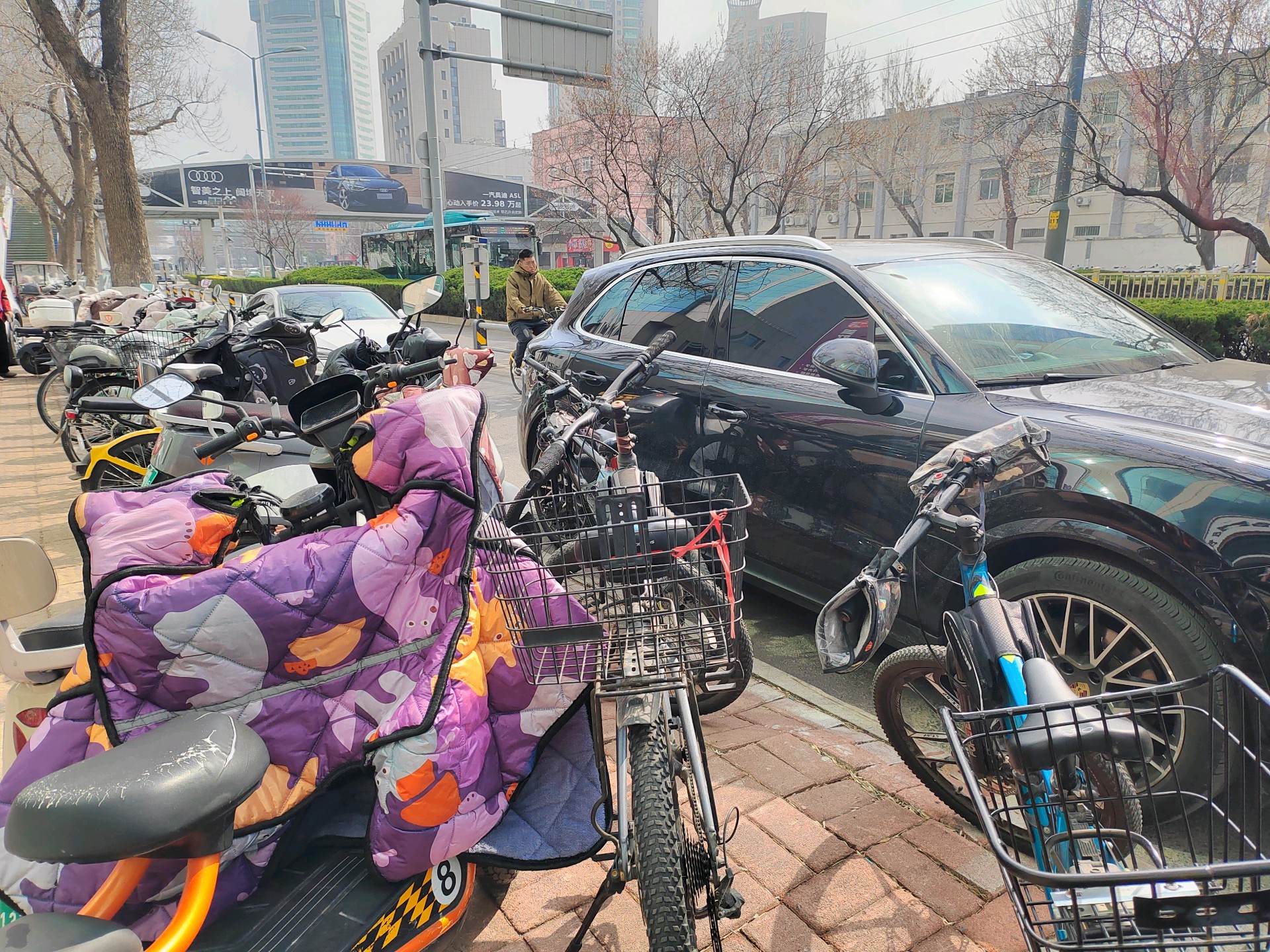 济南市市中区经七路北侧的人行道上,私家车随意停放占道,非机动车道上也有,给行人带来不便,也存在安全隐患。市民盼望有关部门能整改一下。
