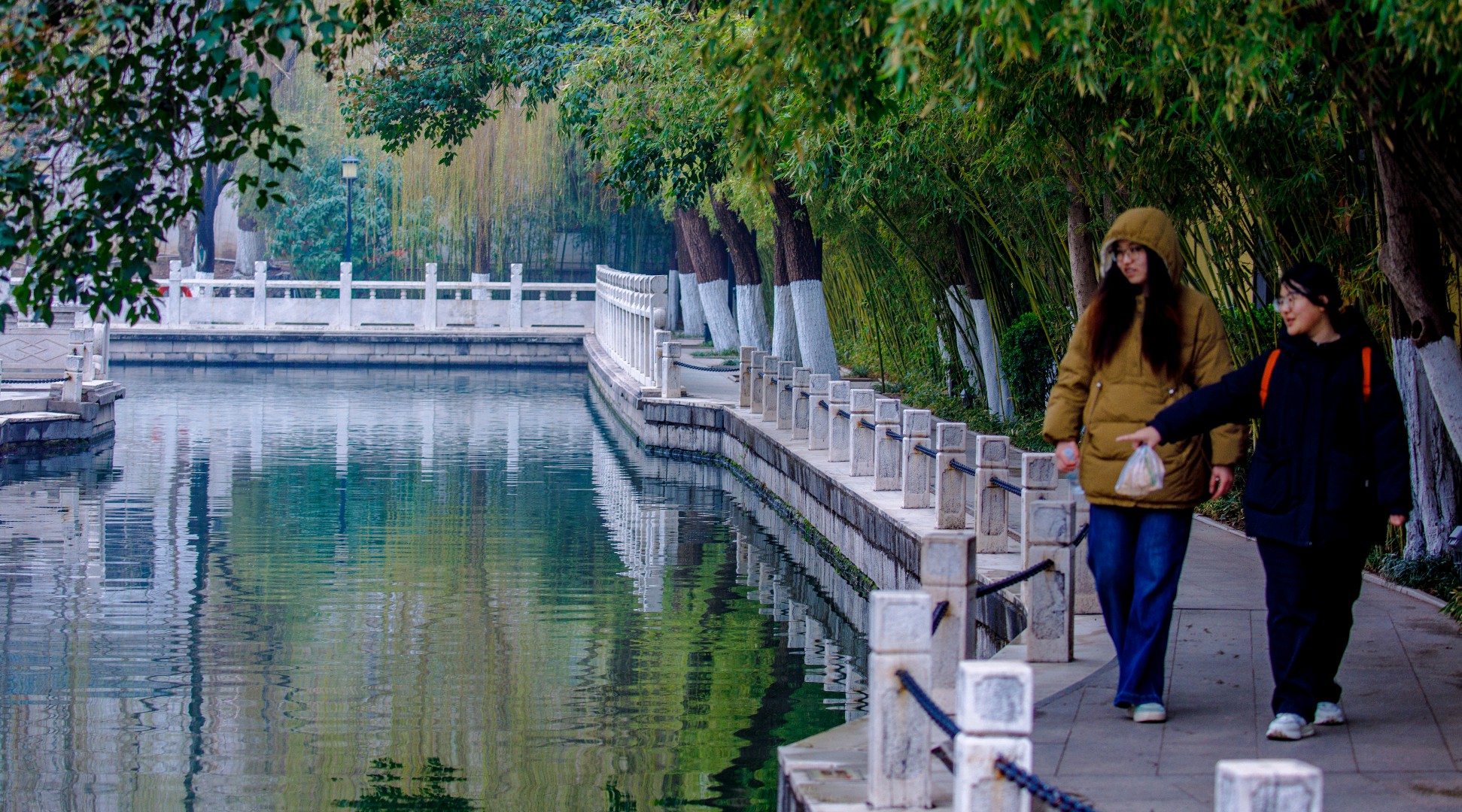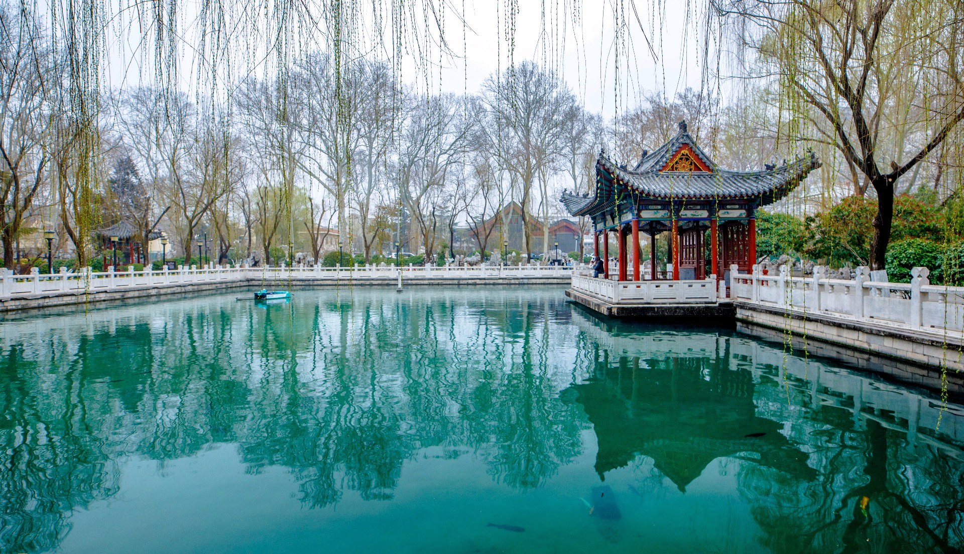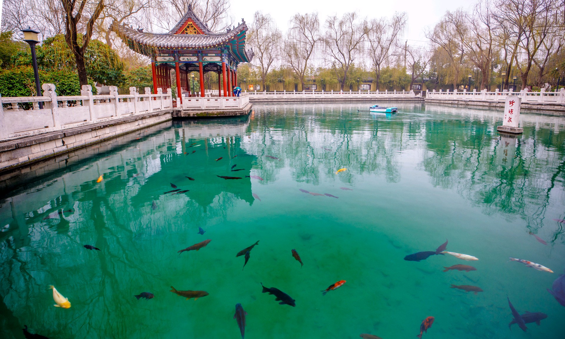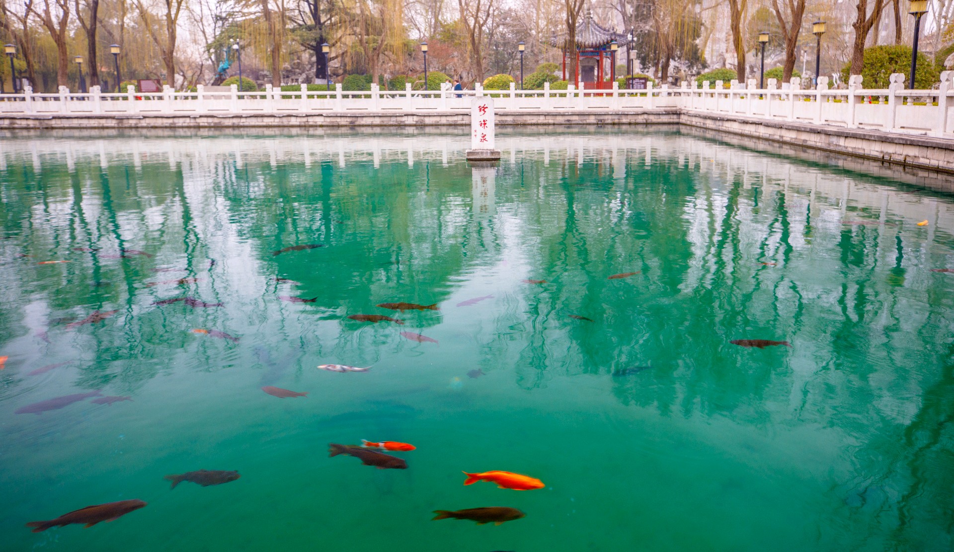 珍珠泉隐于闹市,却自成一片清幽天地,隔绝尘嚣,静谧安然。泉水清冽见底,串串水珠自泉底轻涌,宛若珍珠散落。锦鲤斑斓,悠然游弋;垂柳依依,柔枝拂水。游人驻足泉边,静观泉影鱼姿,尽享闹市中难得的清雅与闲适。