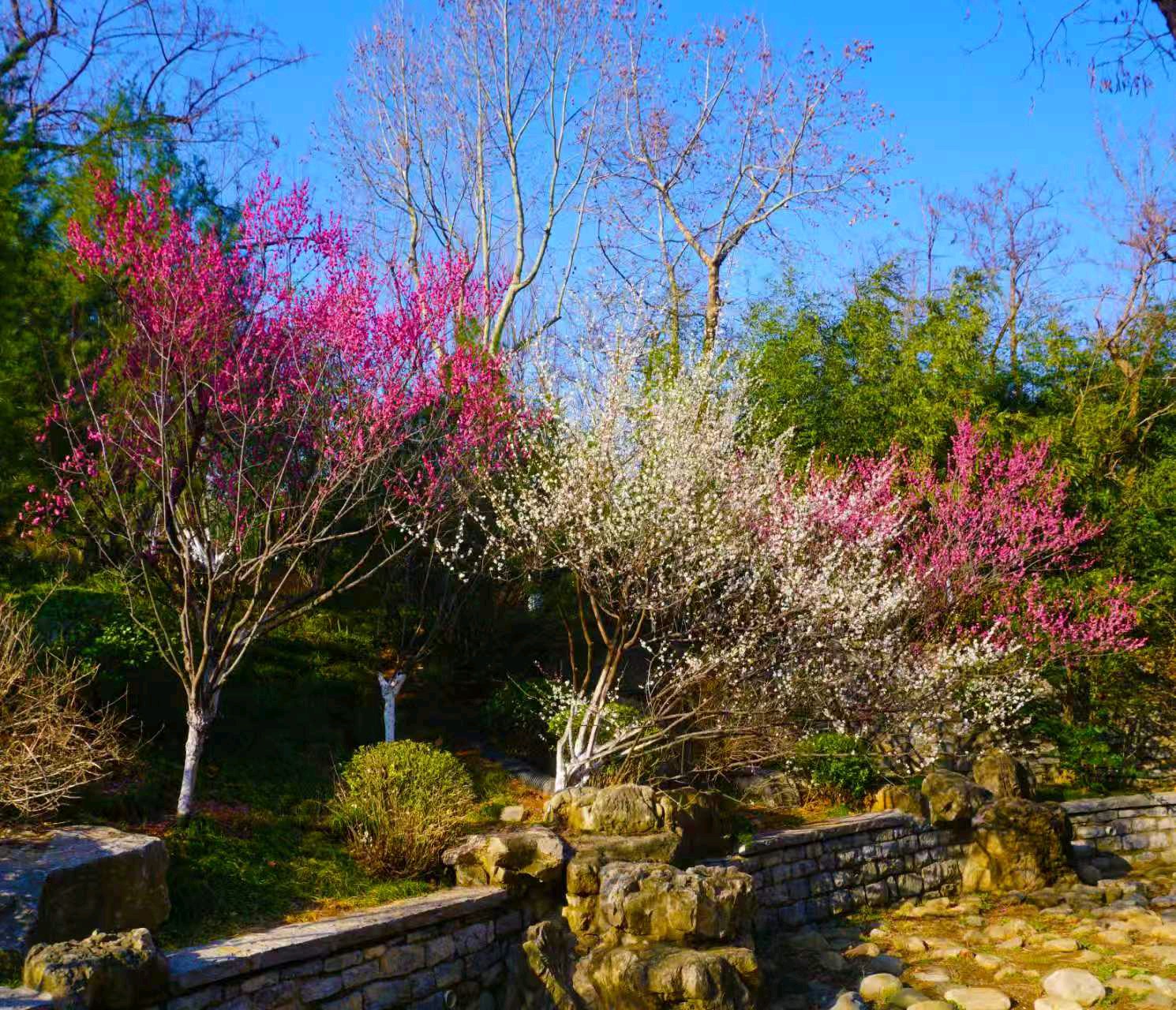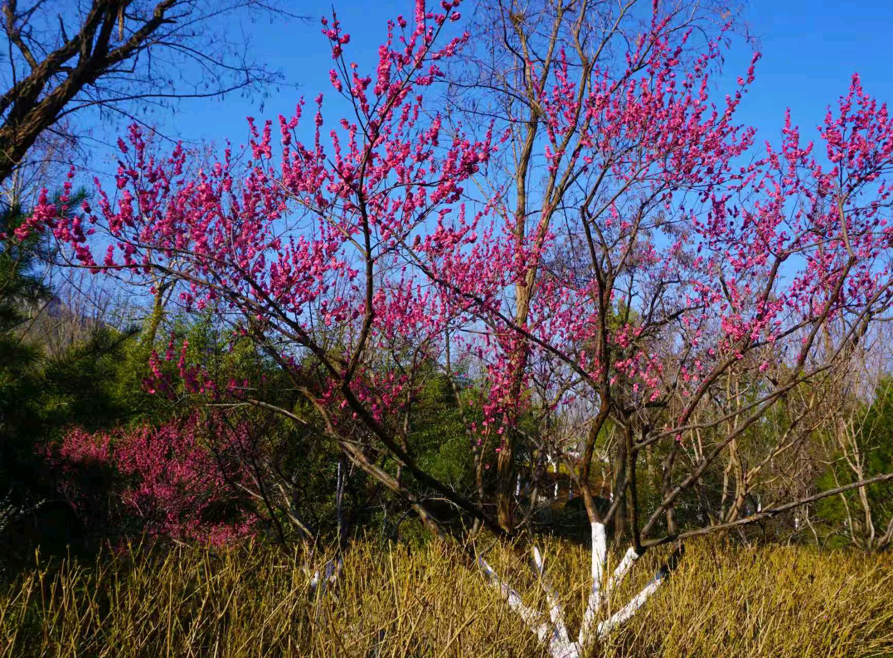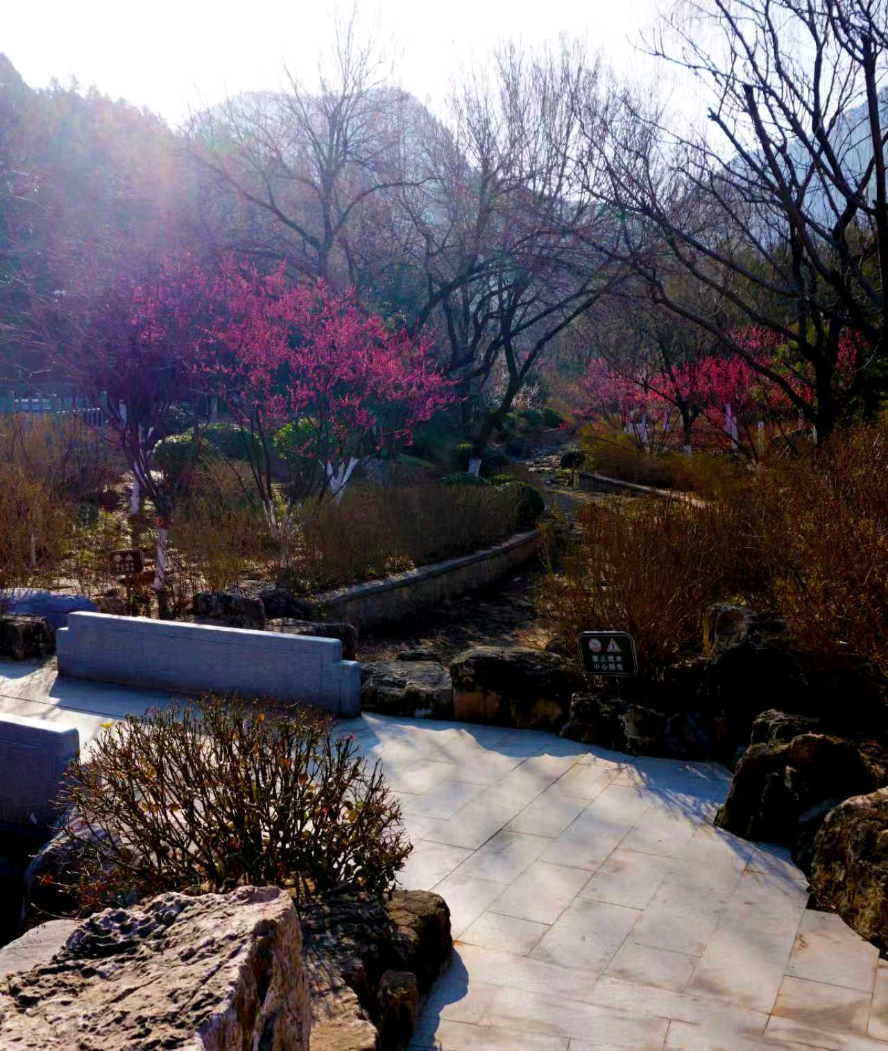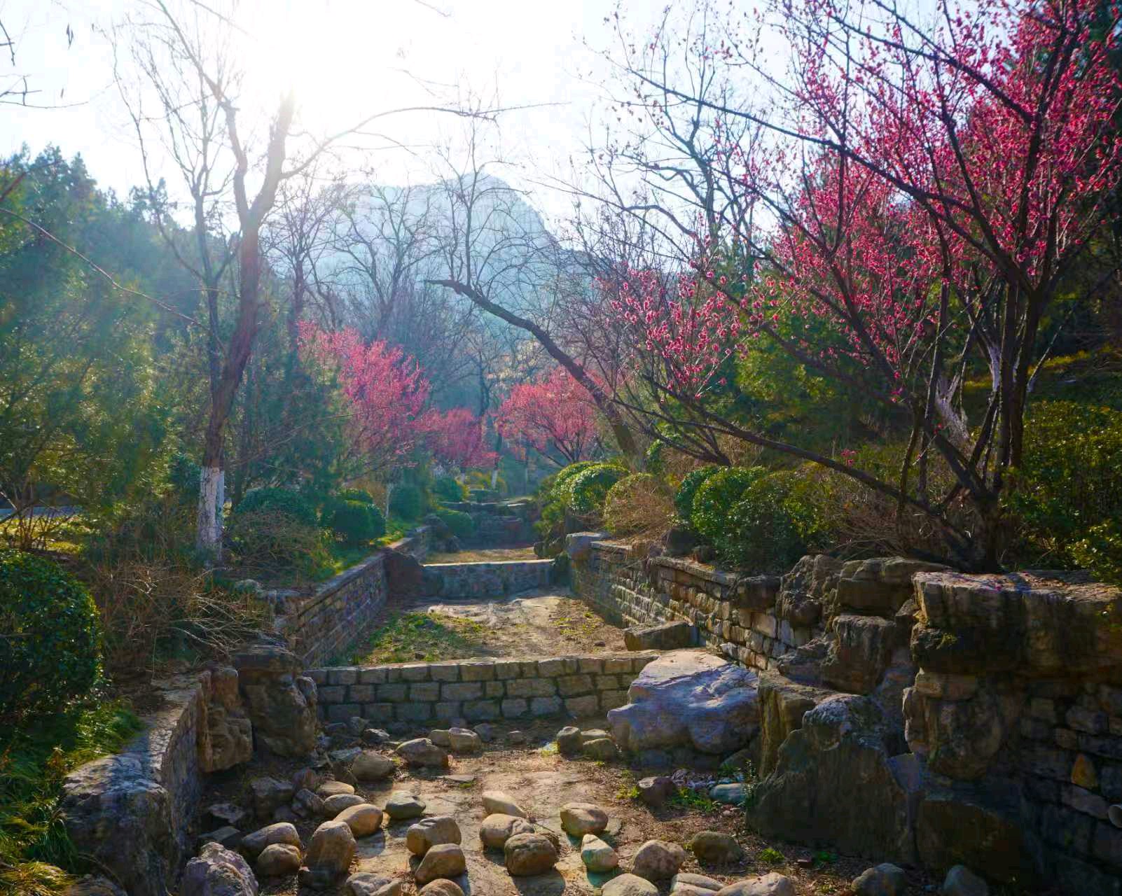 摄于今日济南佛慧山,美人梅,杏花,迎春花,茱萸花竞相开花,一派春色。