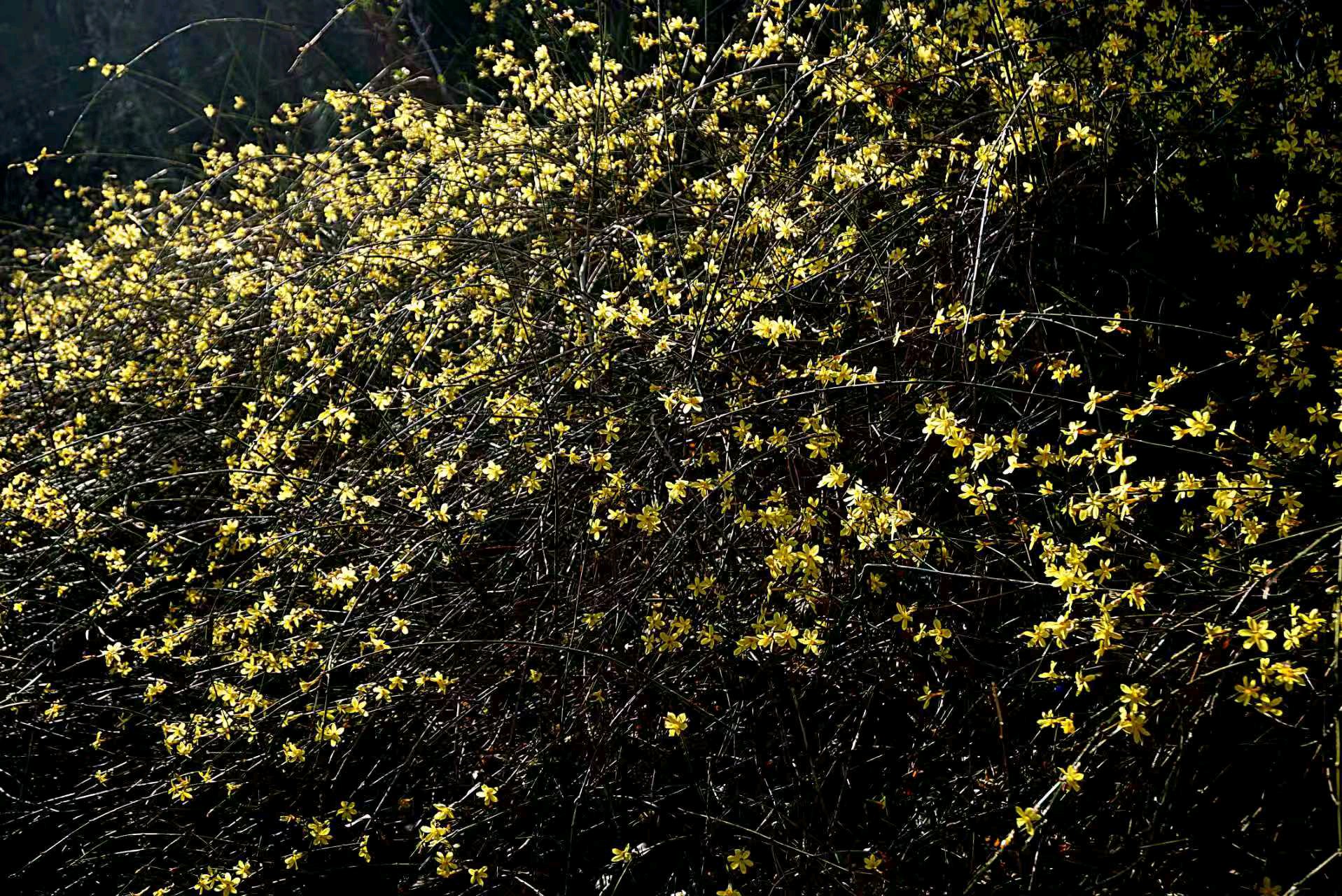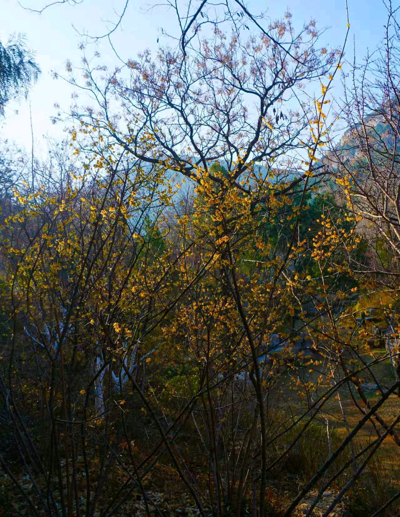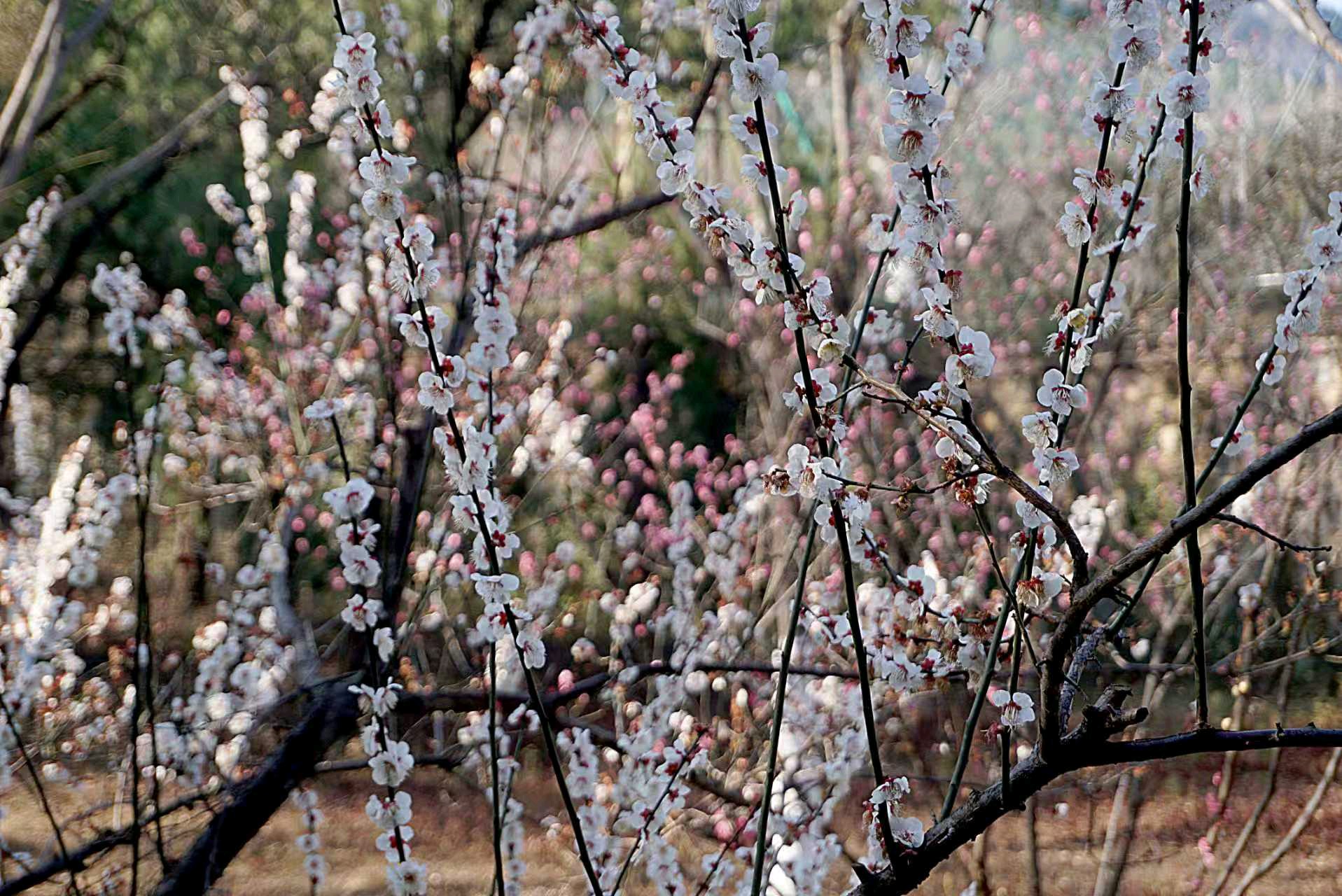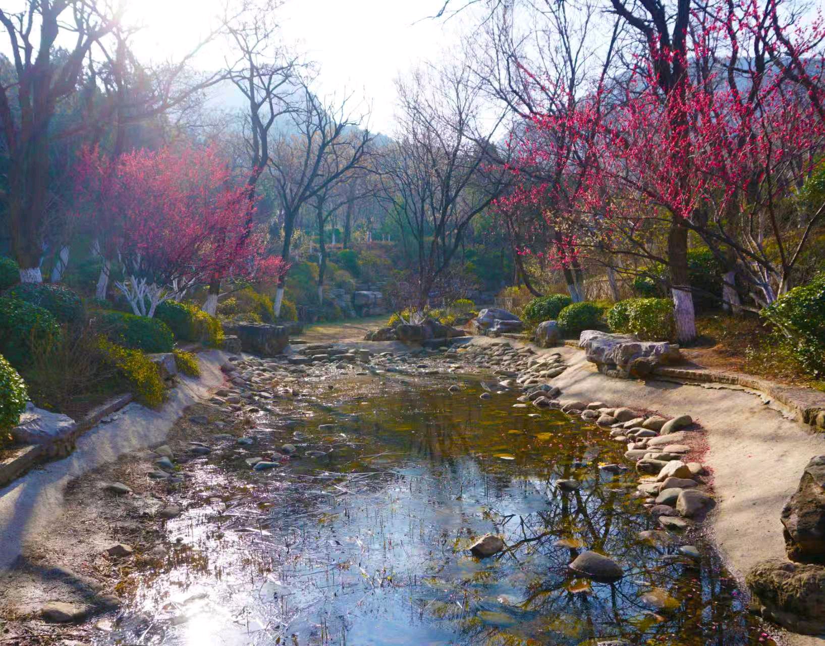 摄于今日济南佛慧山,美人梅,杏花,迎春花,茱萸花竞相开花,一派春色。
