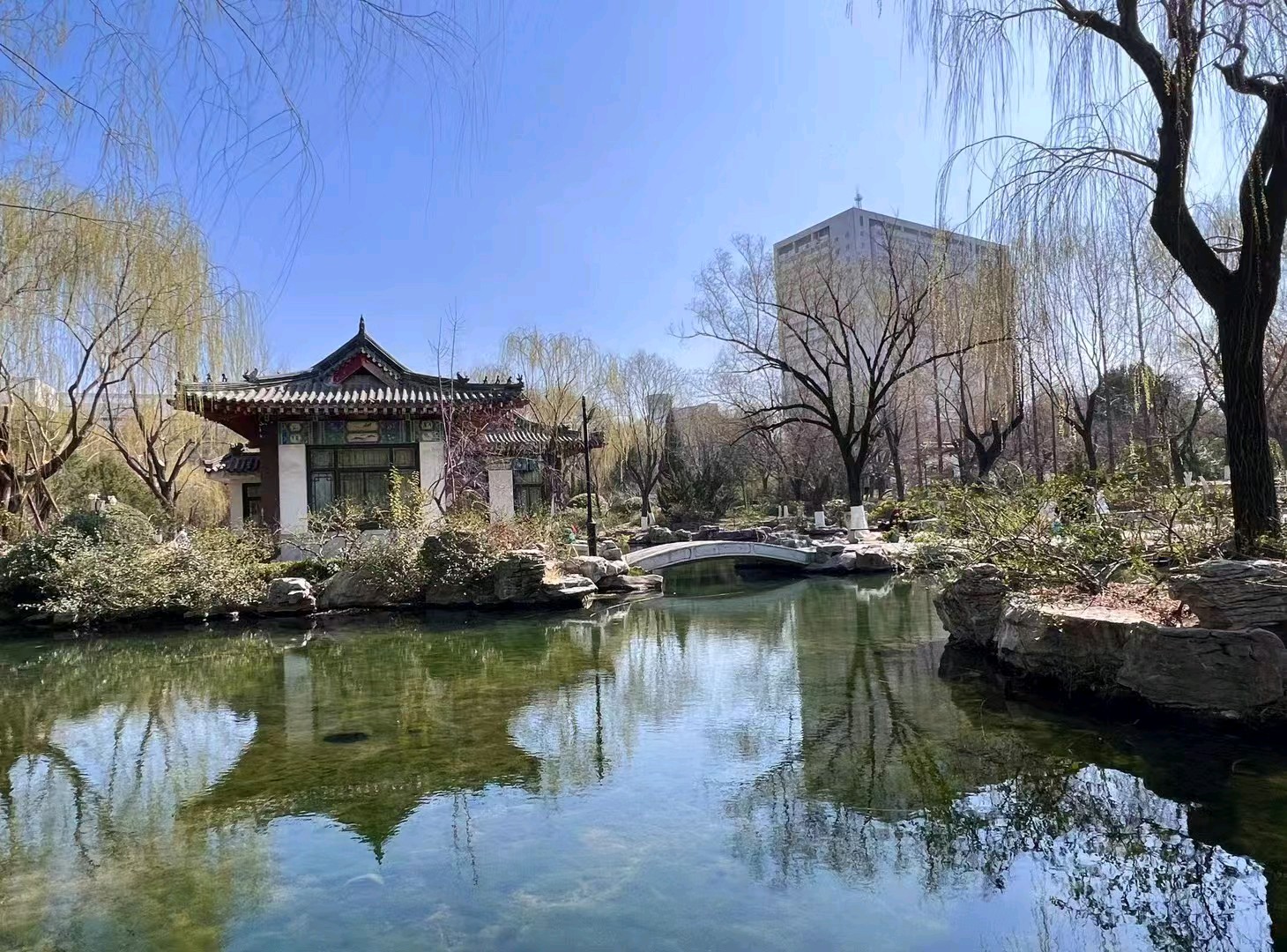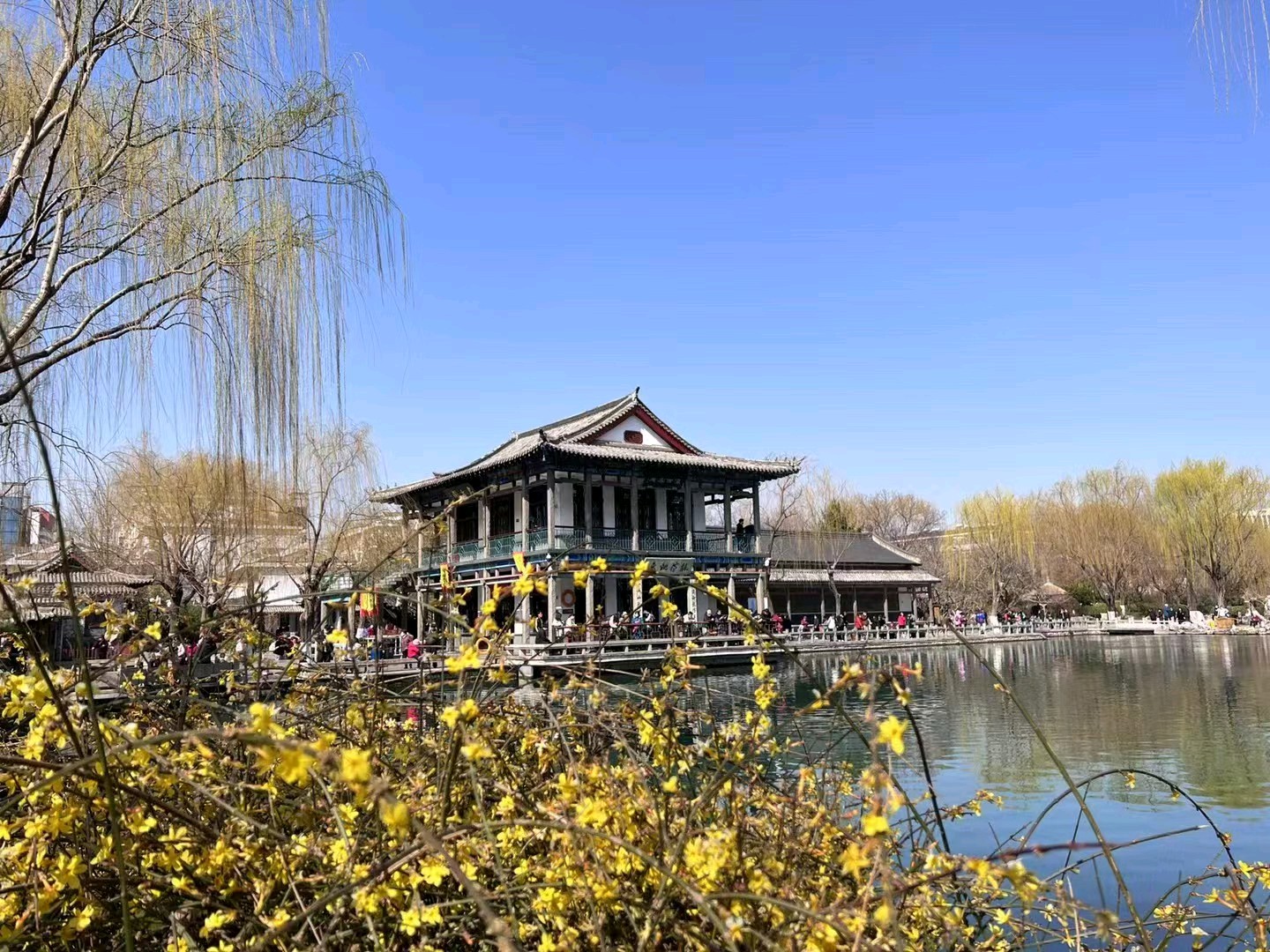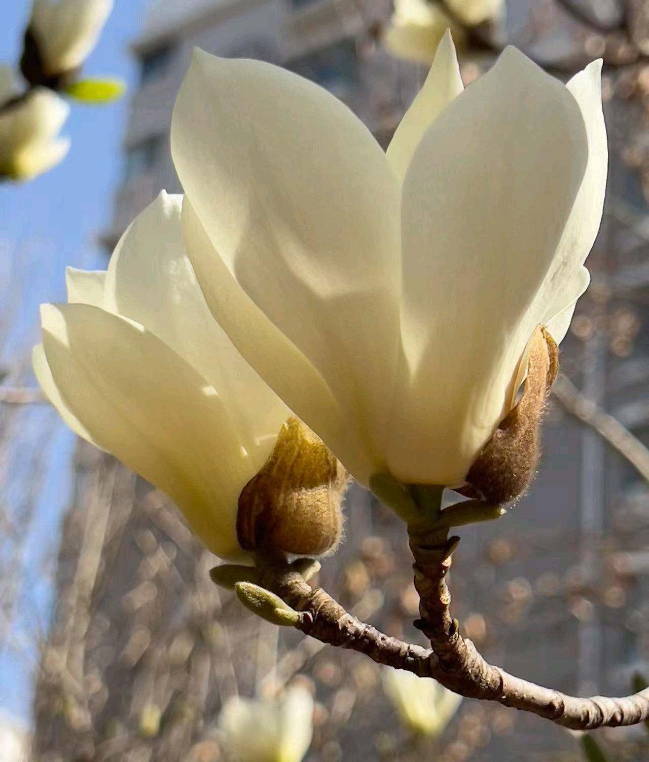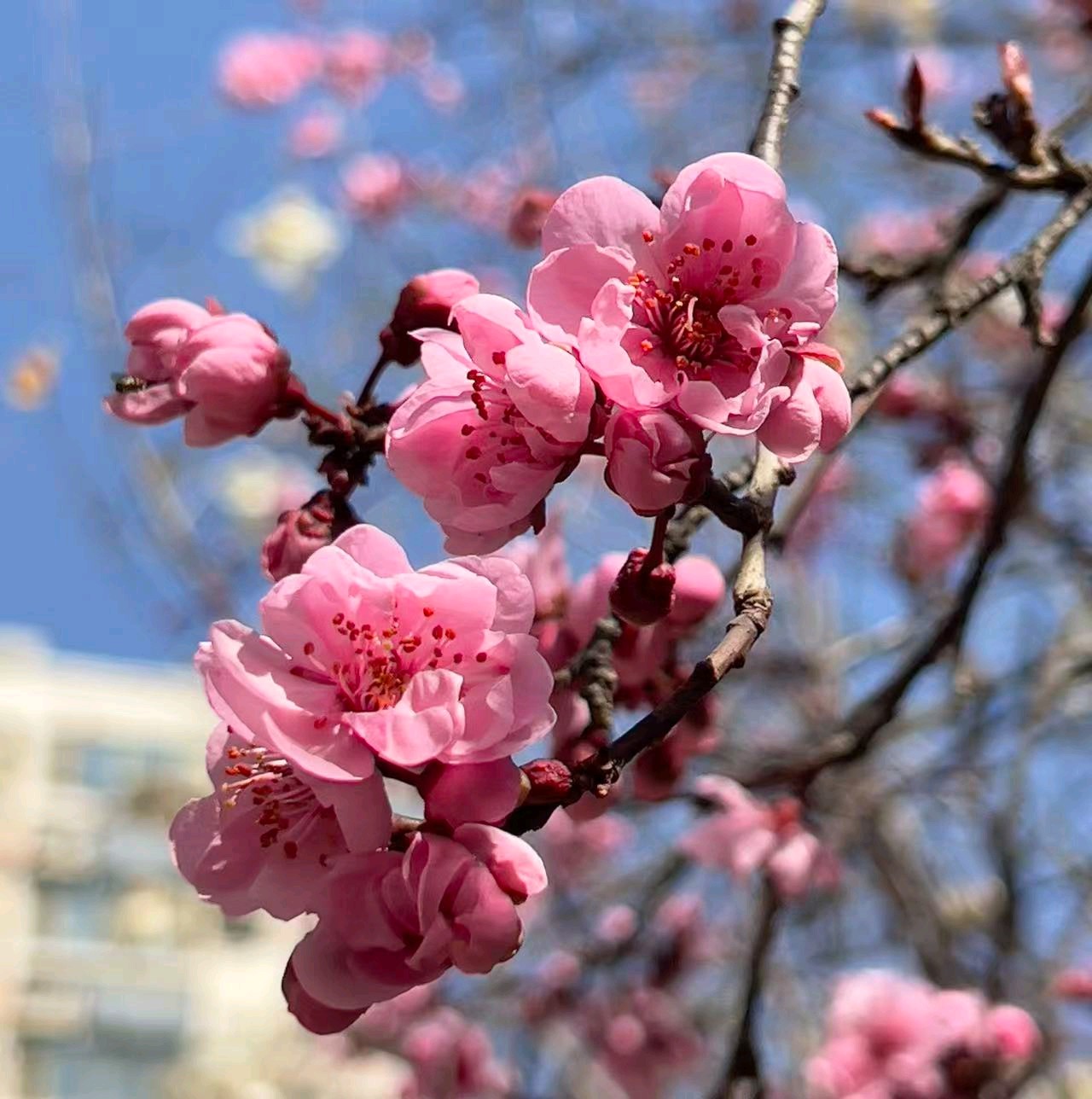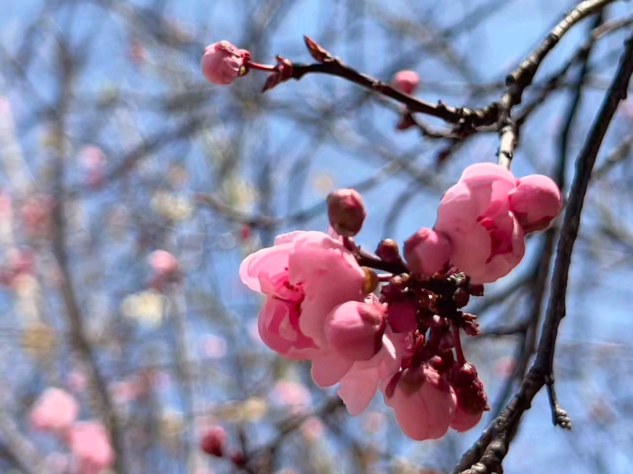 五龙潭的公园里的花渐次开放,玉兰花,紫叶李争奇斗艳