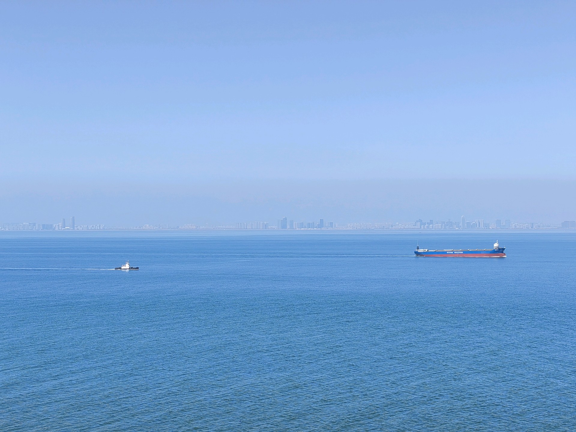 站在风景秀丽的岛上,远望高楼大厦的现代化城市,心随着海浪涌动……